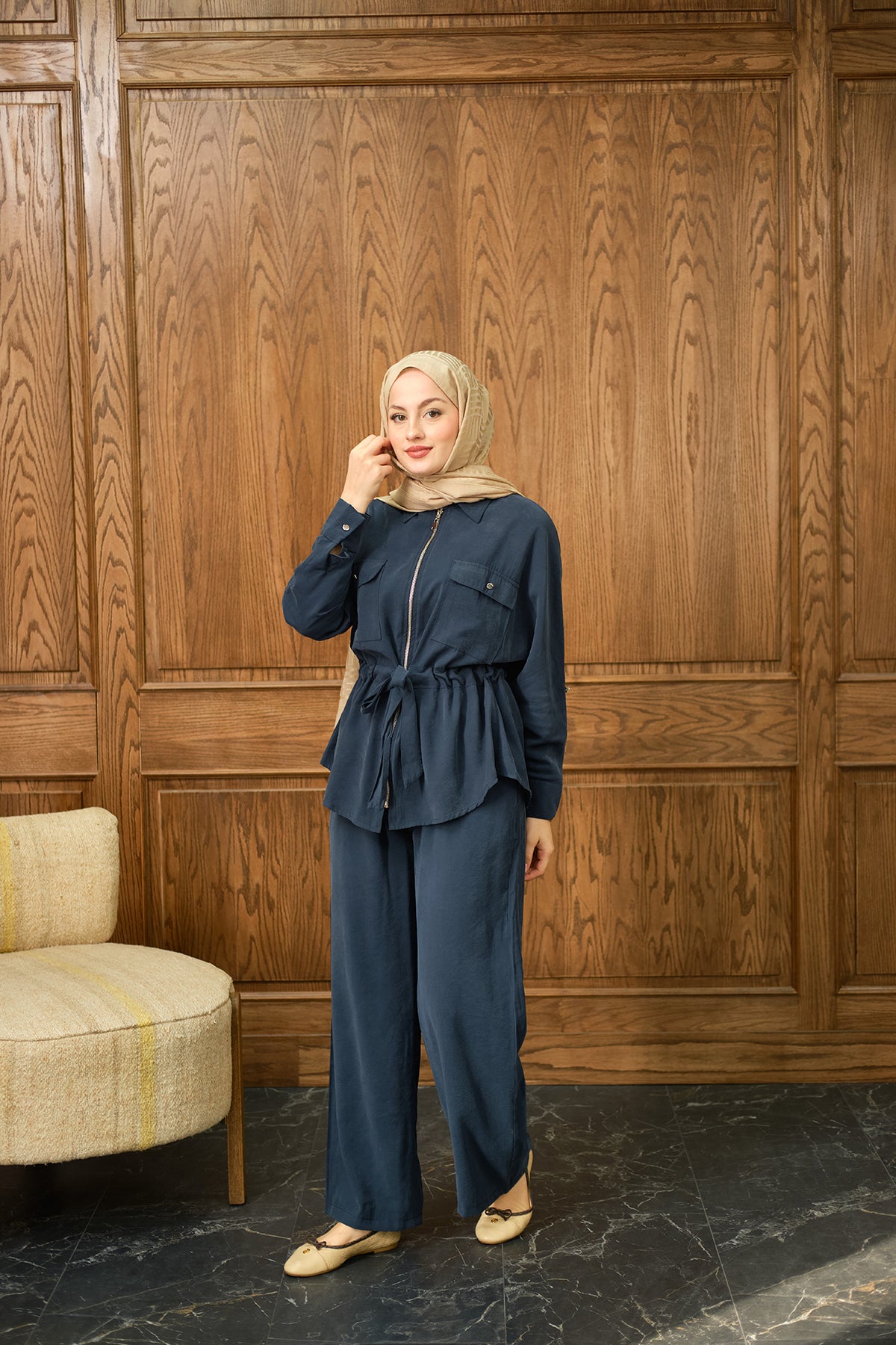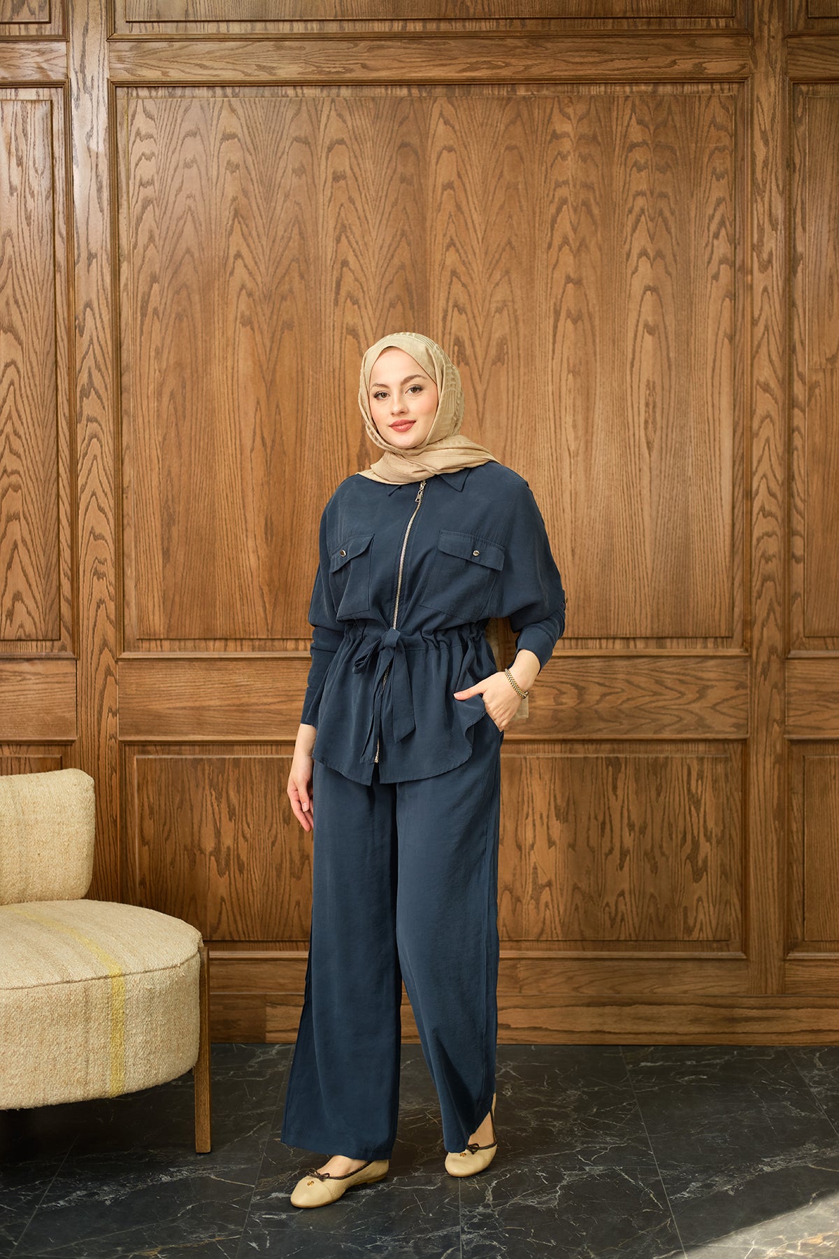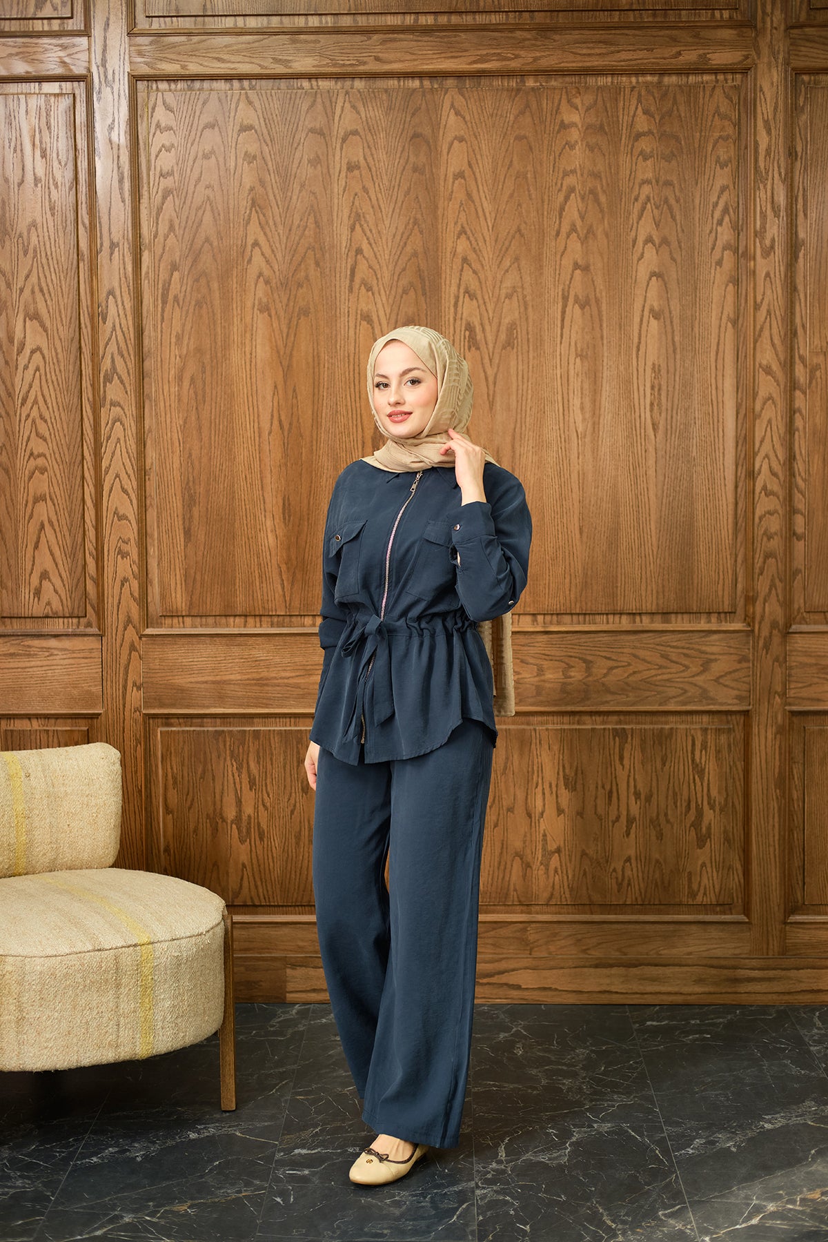 Zippered Skirted Set - Navy