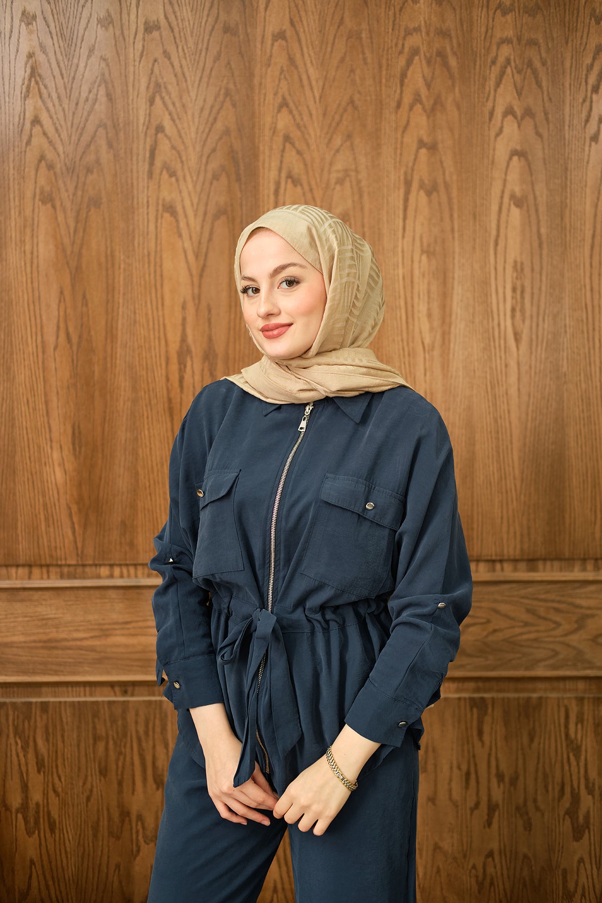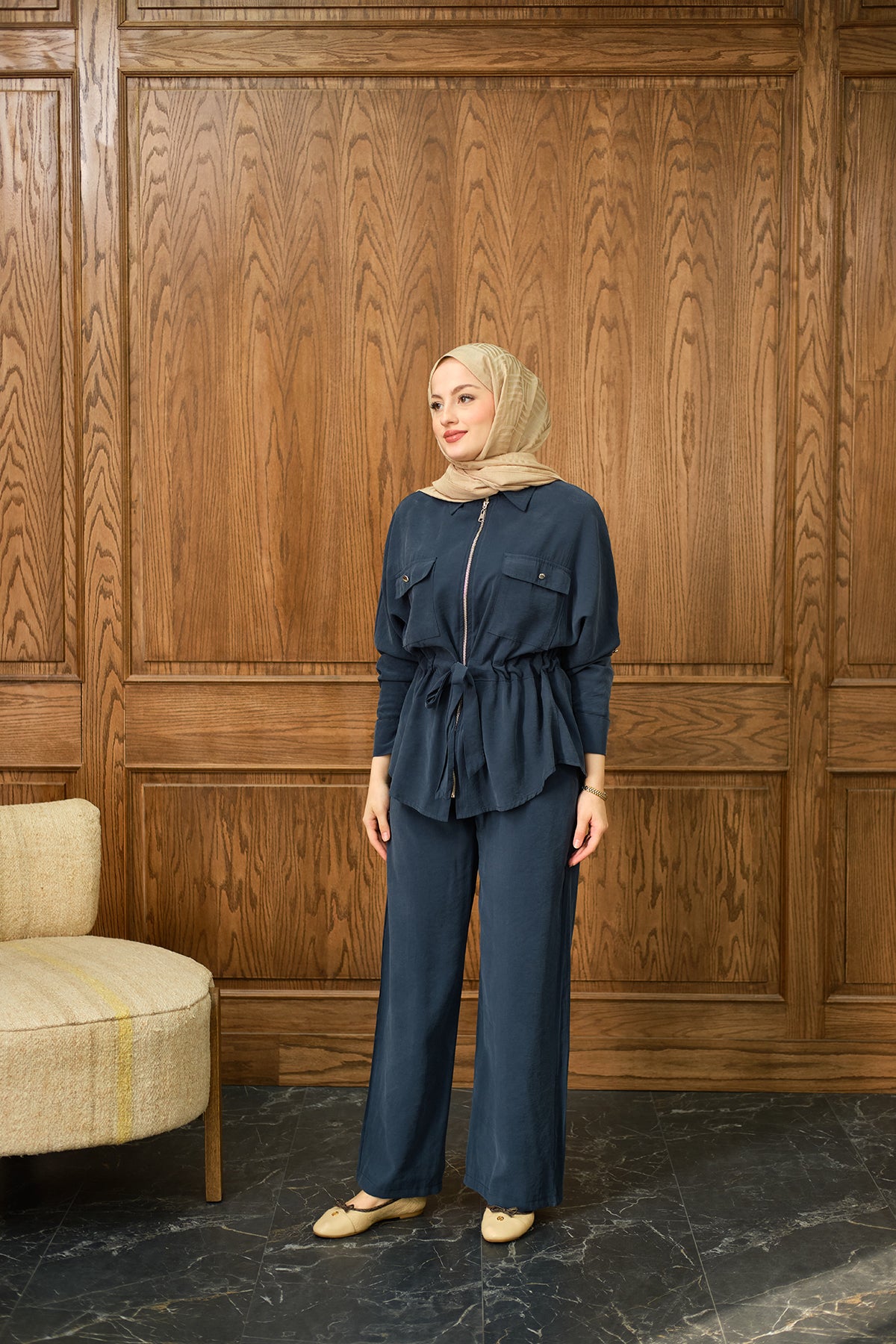 Zippered Two-Piece Suit - Navy Blue