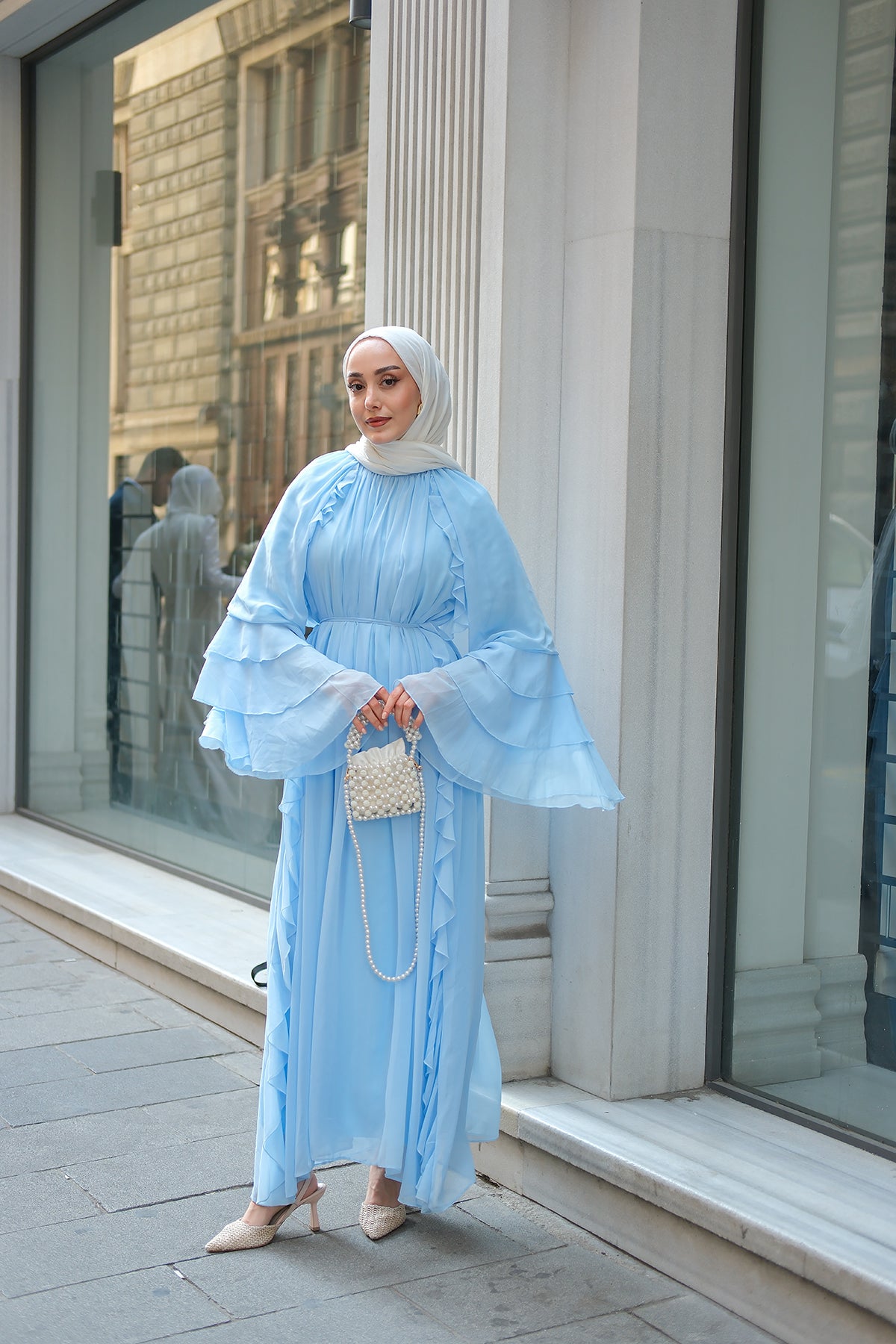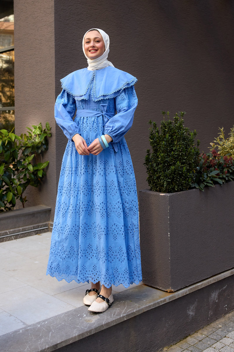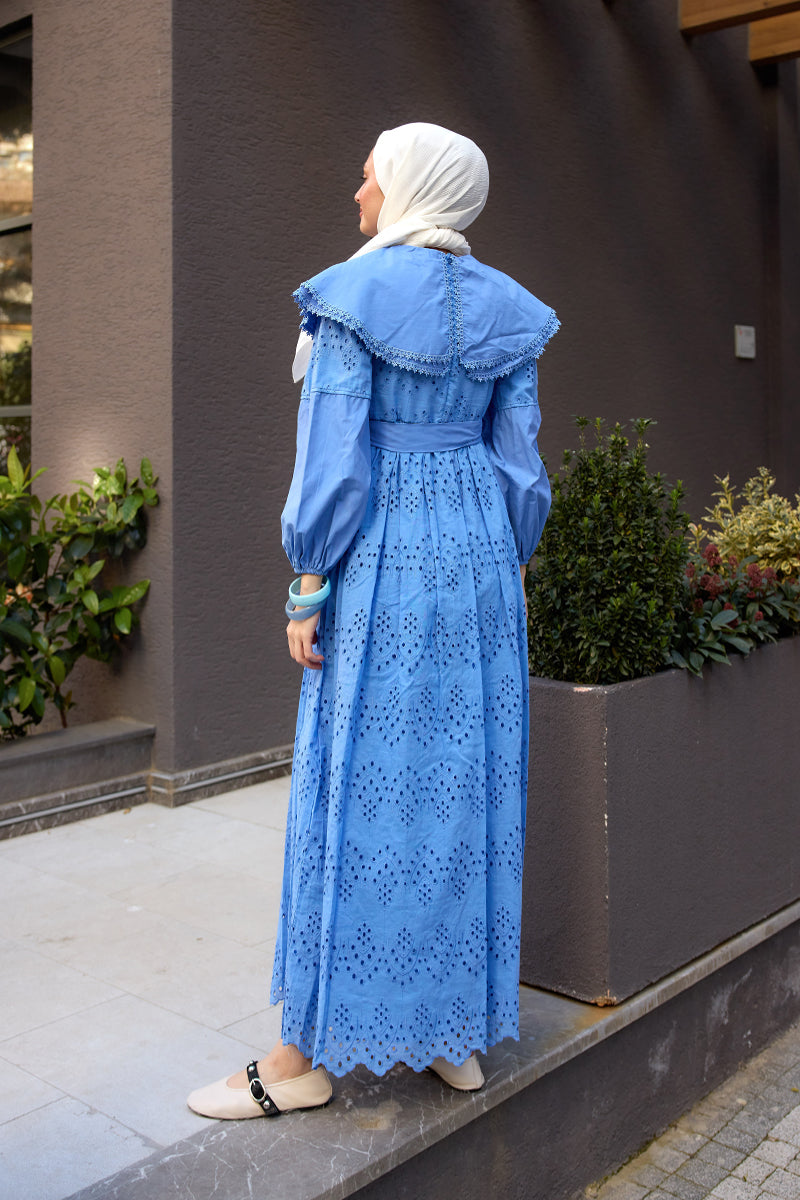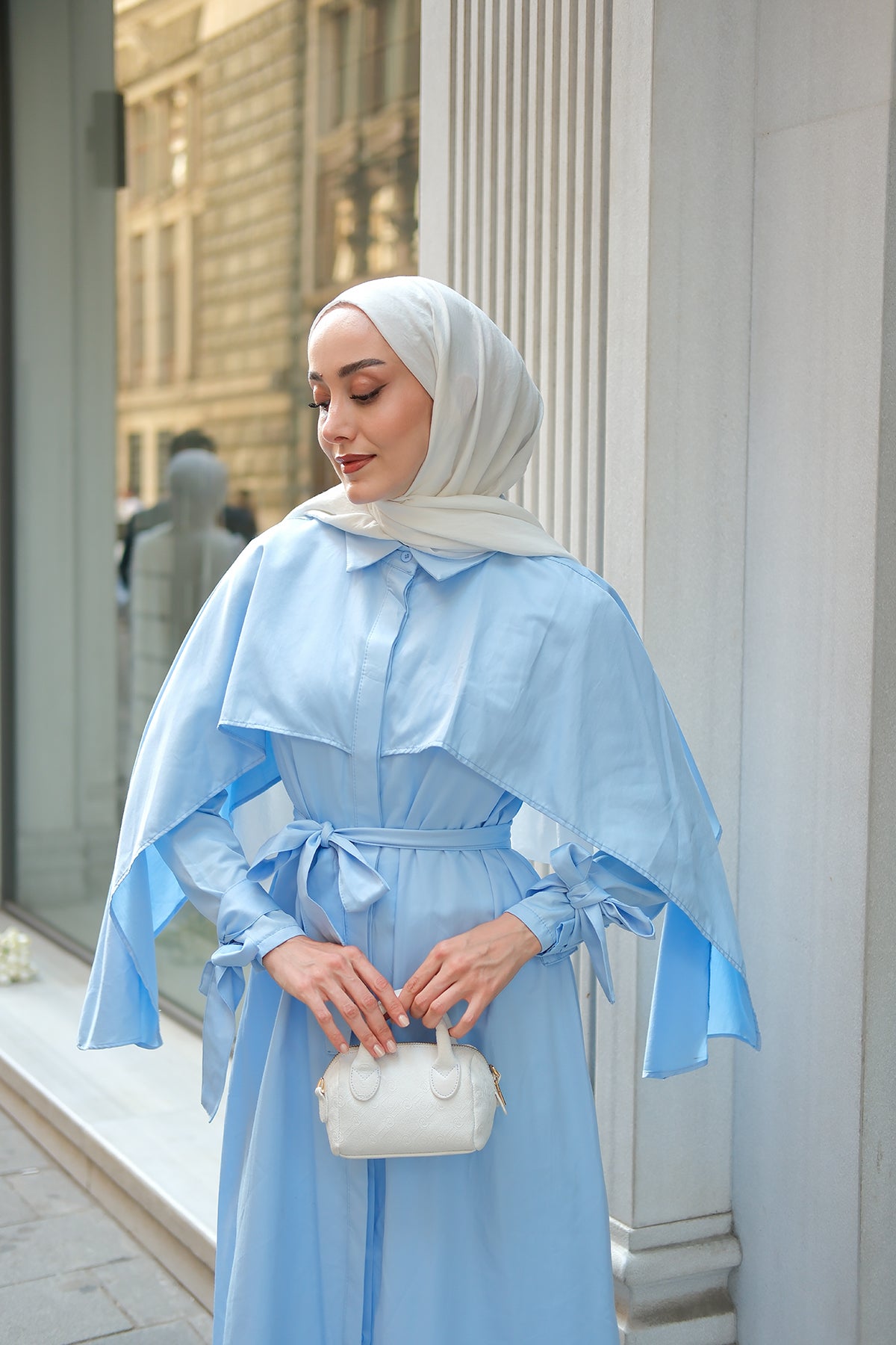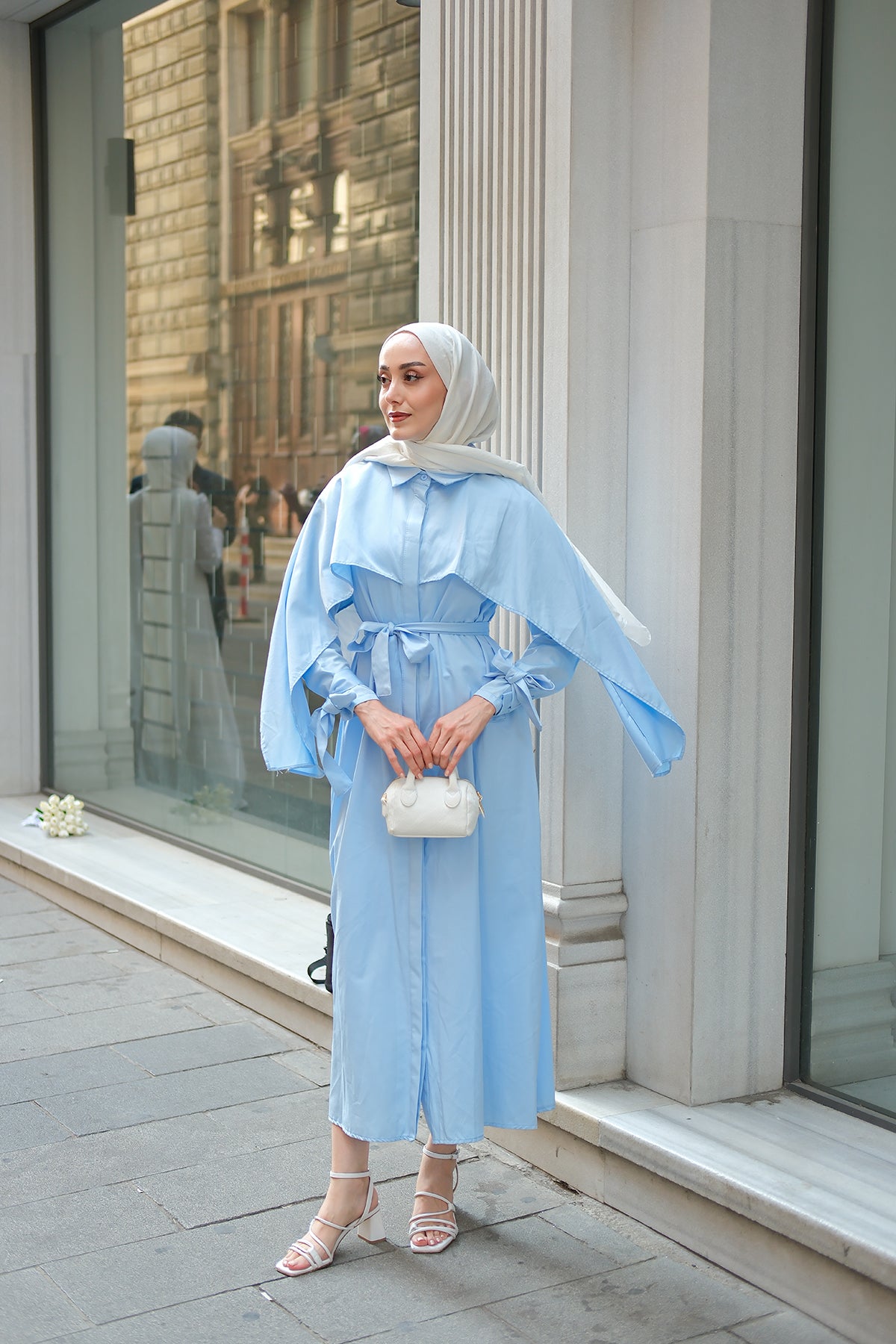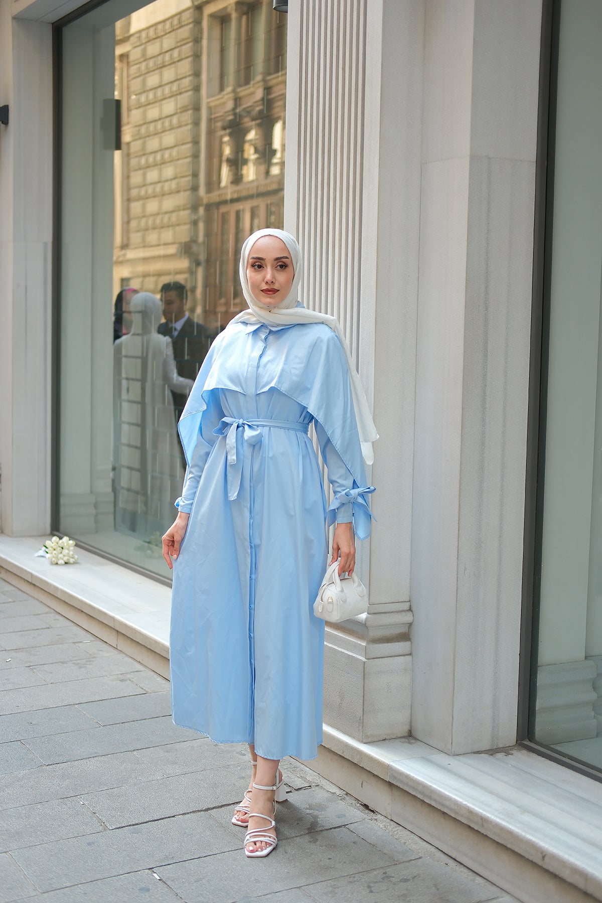 Baby Blue Shirt with Front Ribbon Detail and Oval Cut