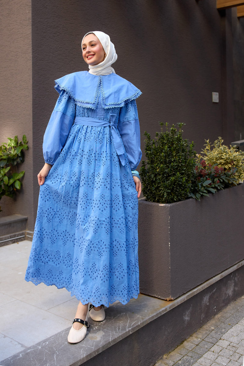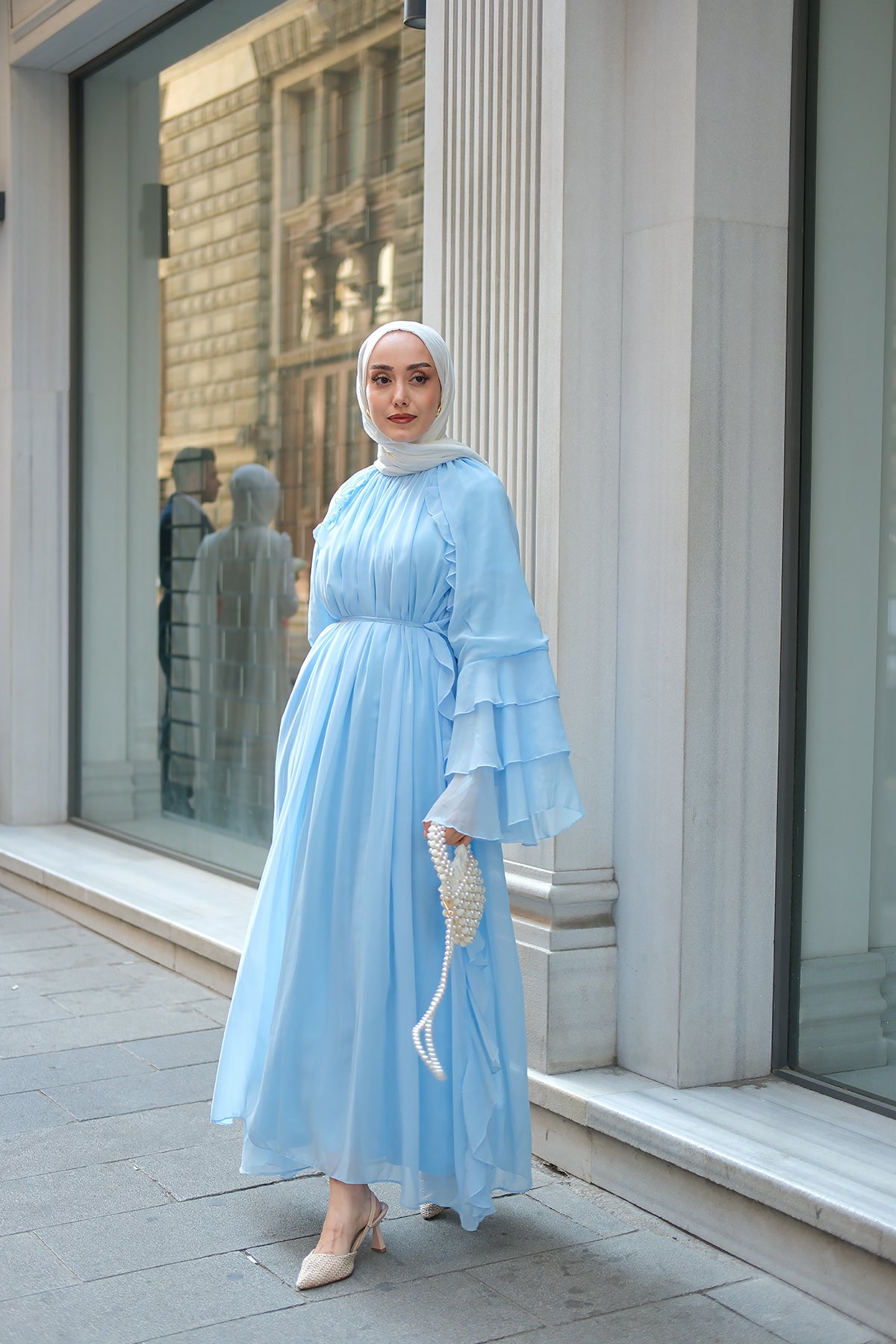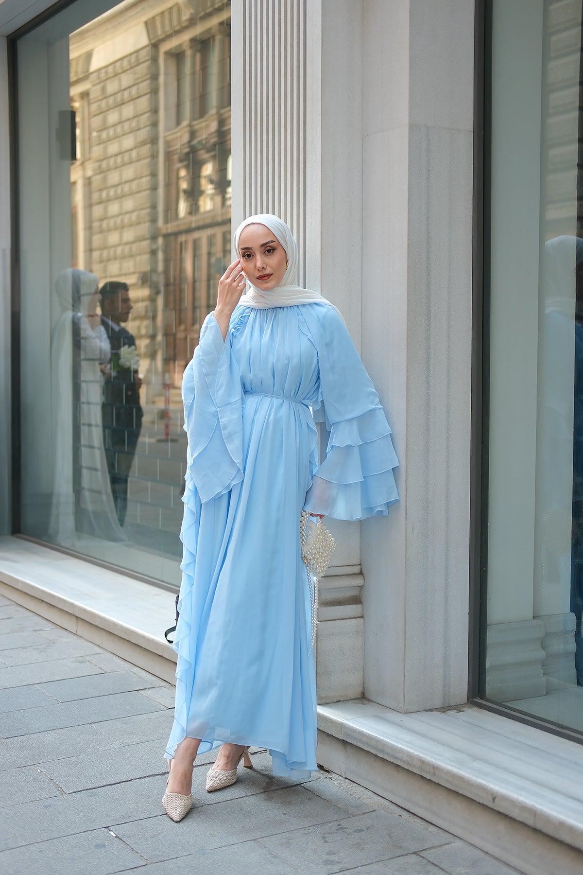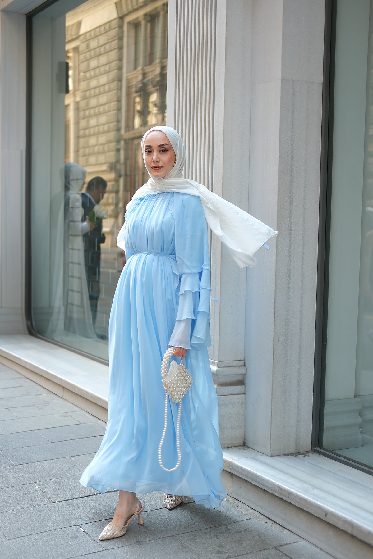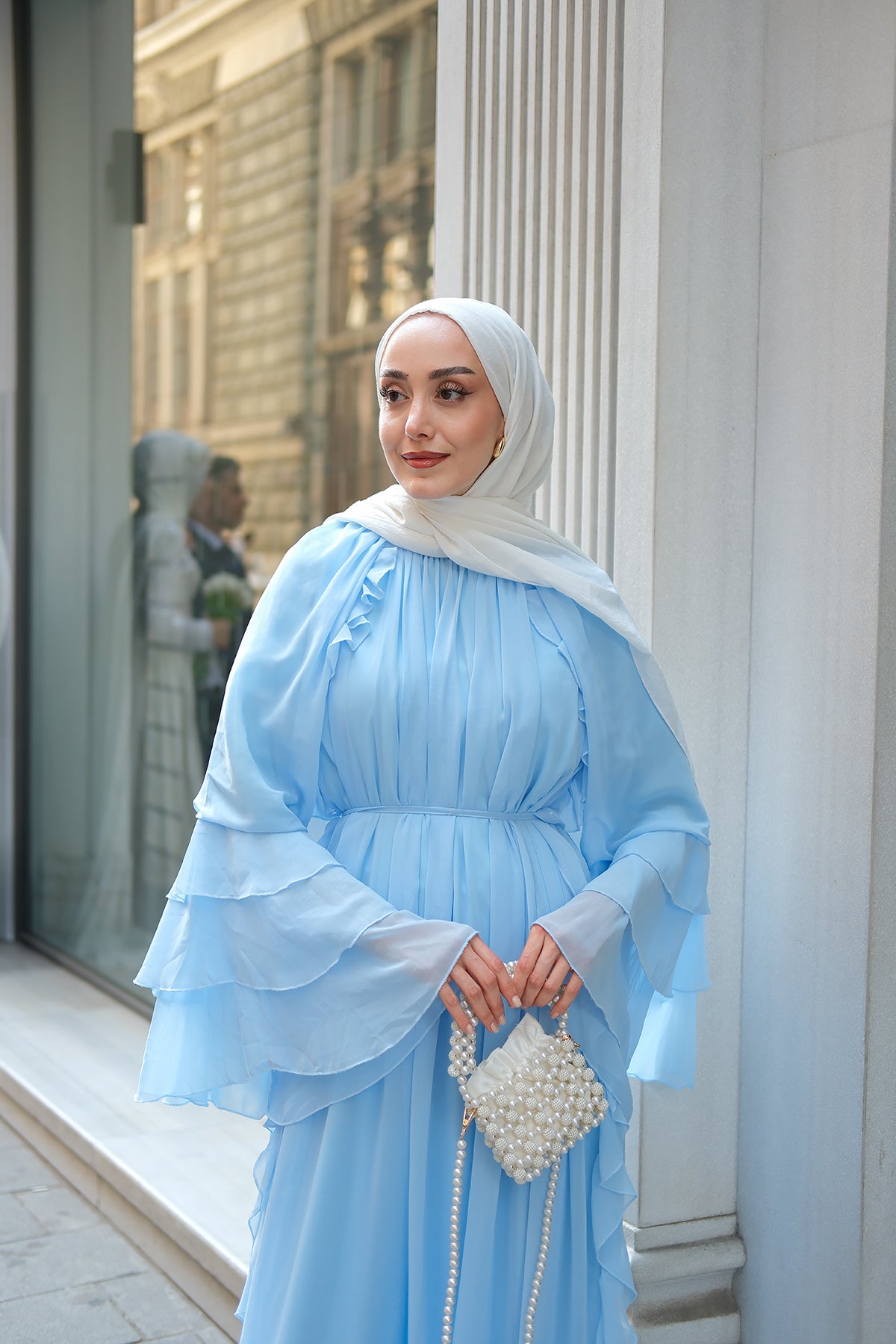 Baby Blue Shirt with Front Ribbon Detail and Oval Cut
