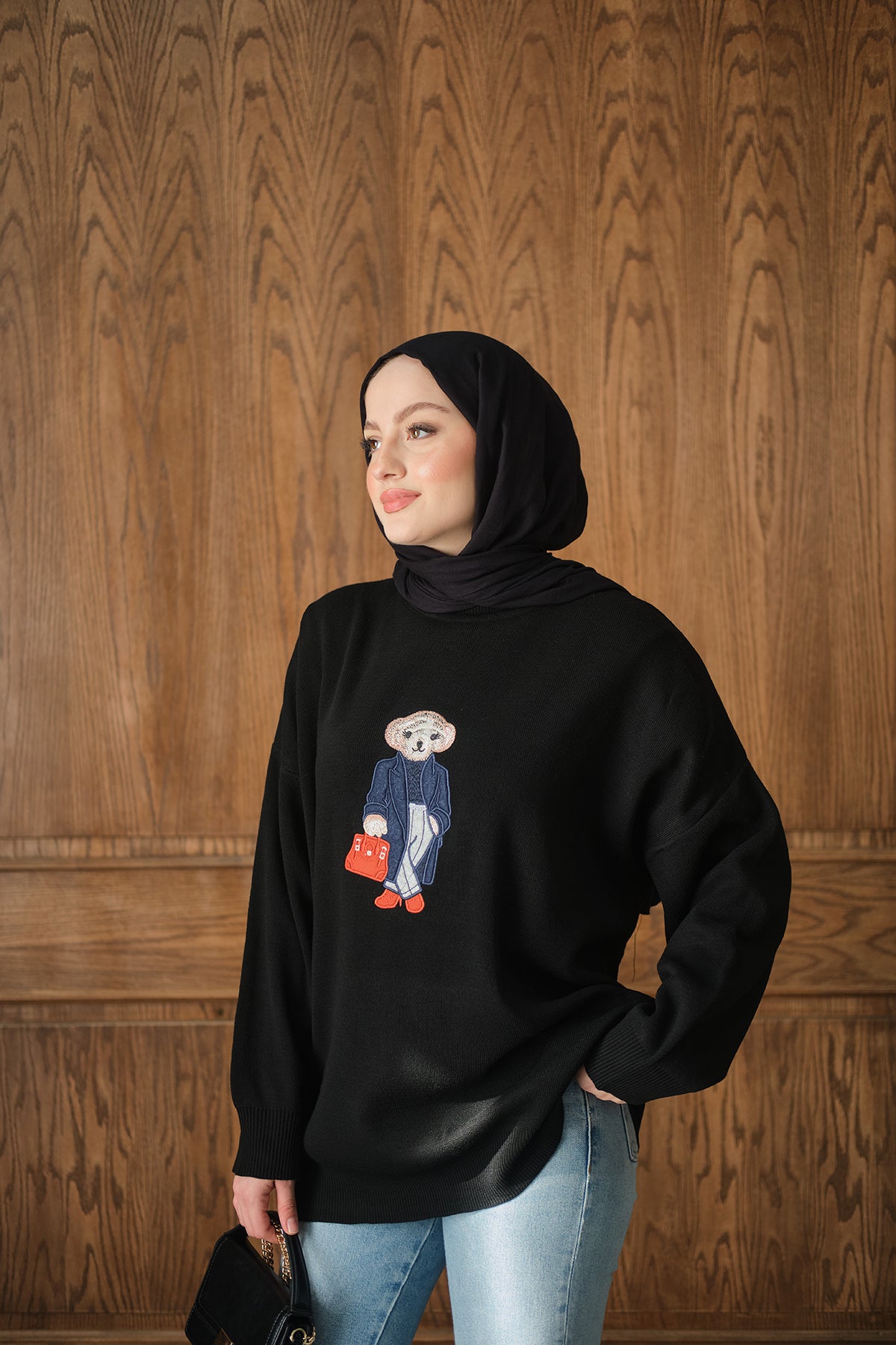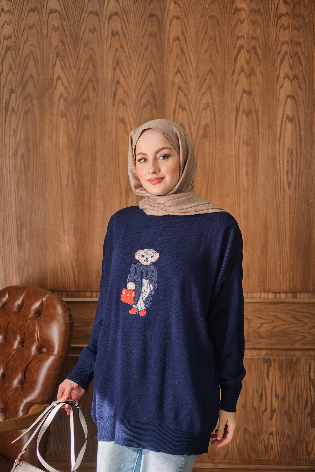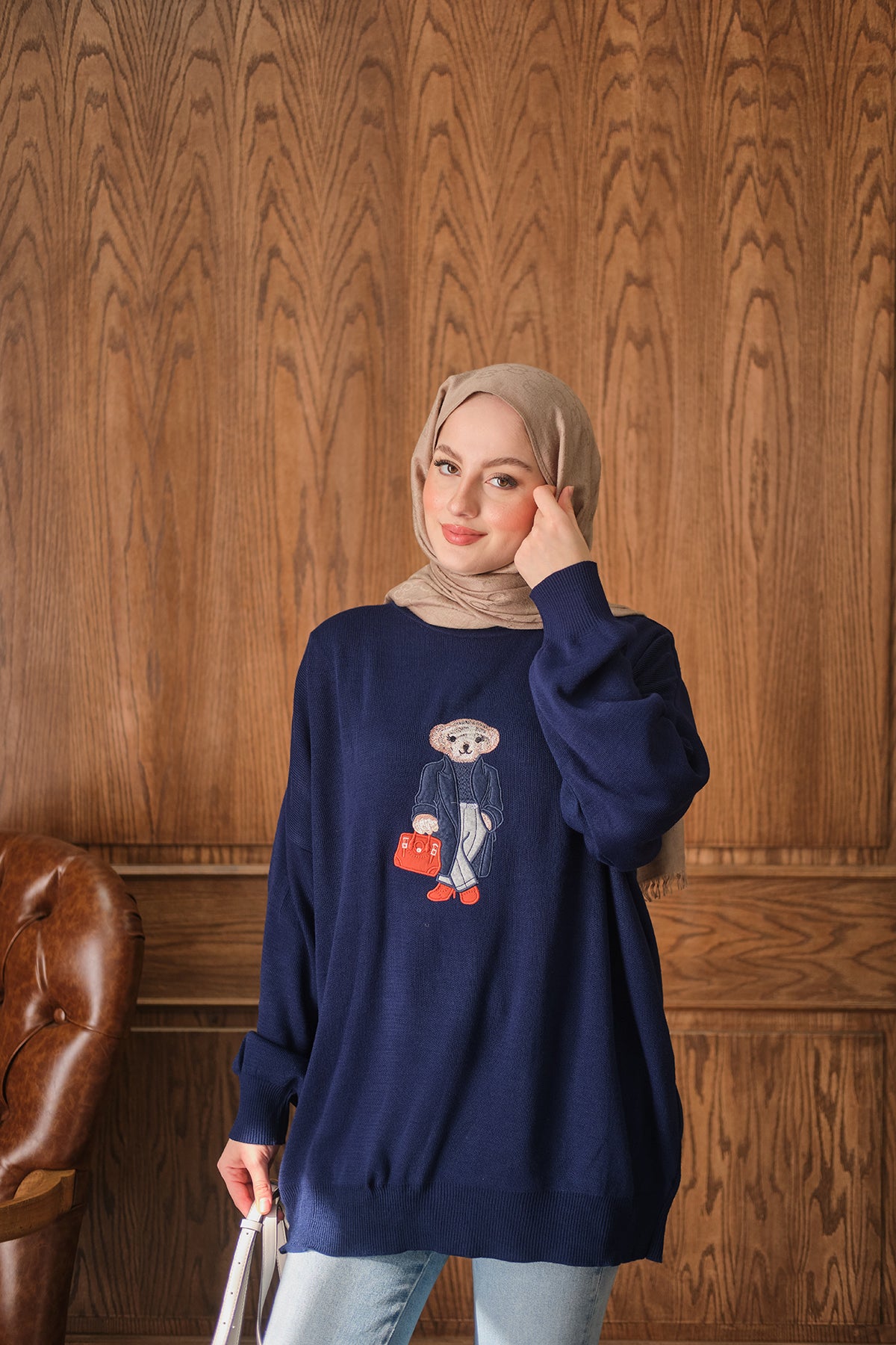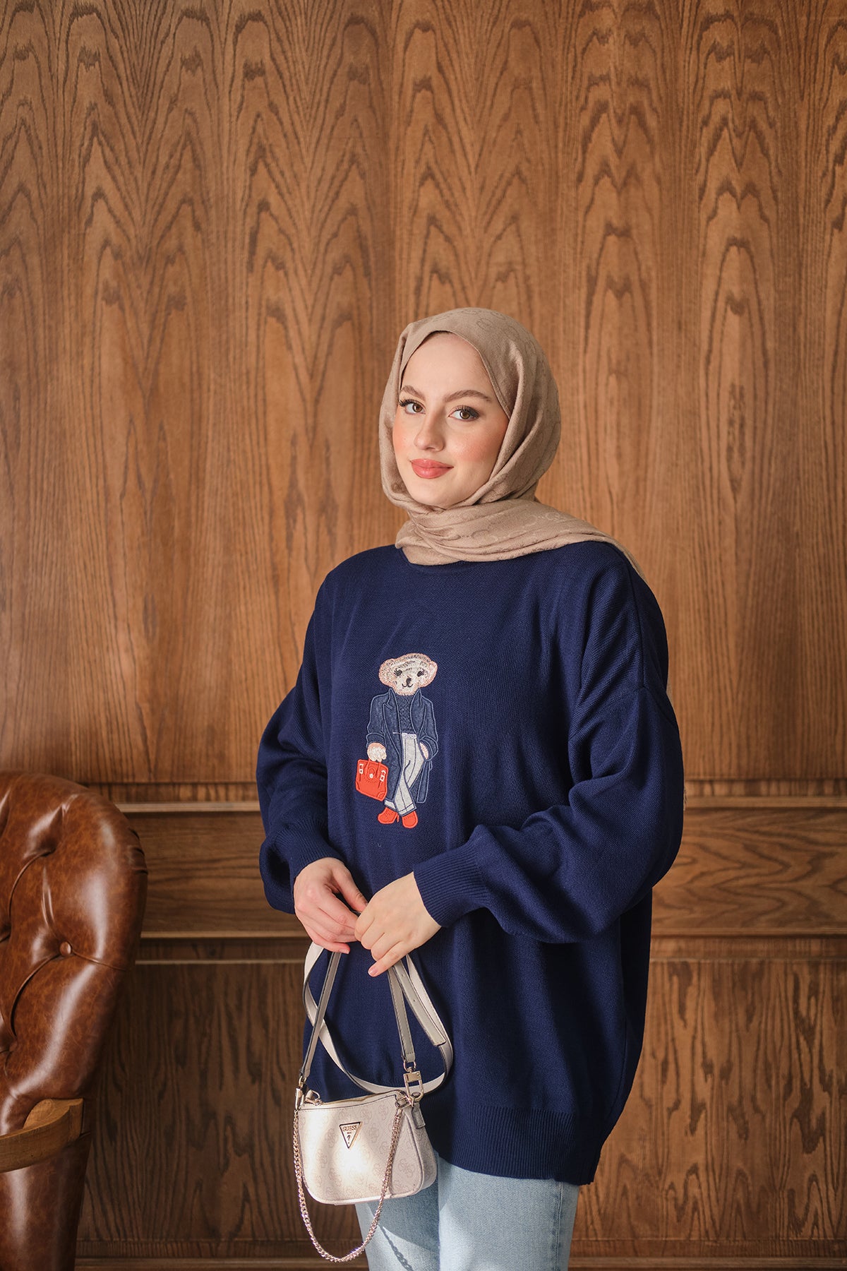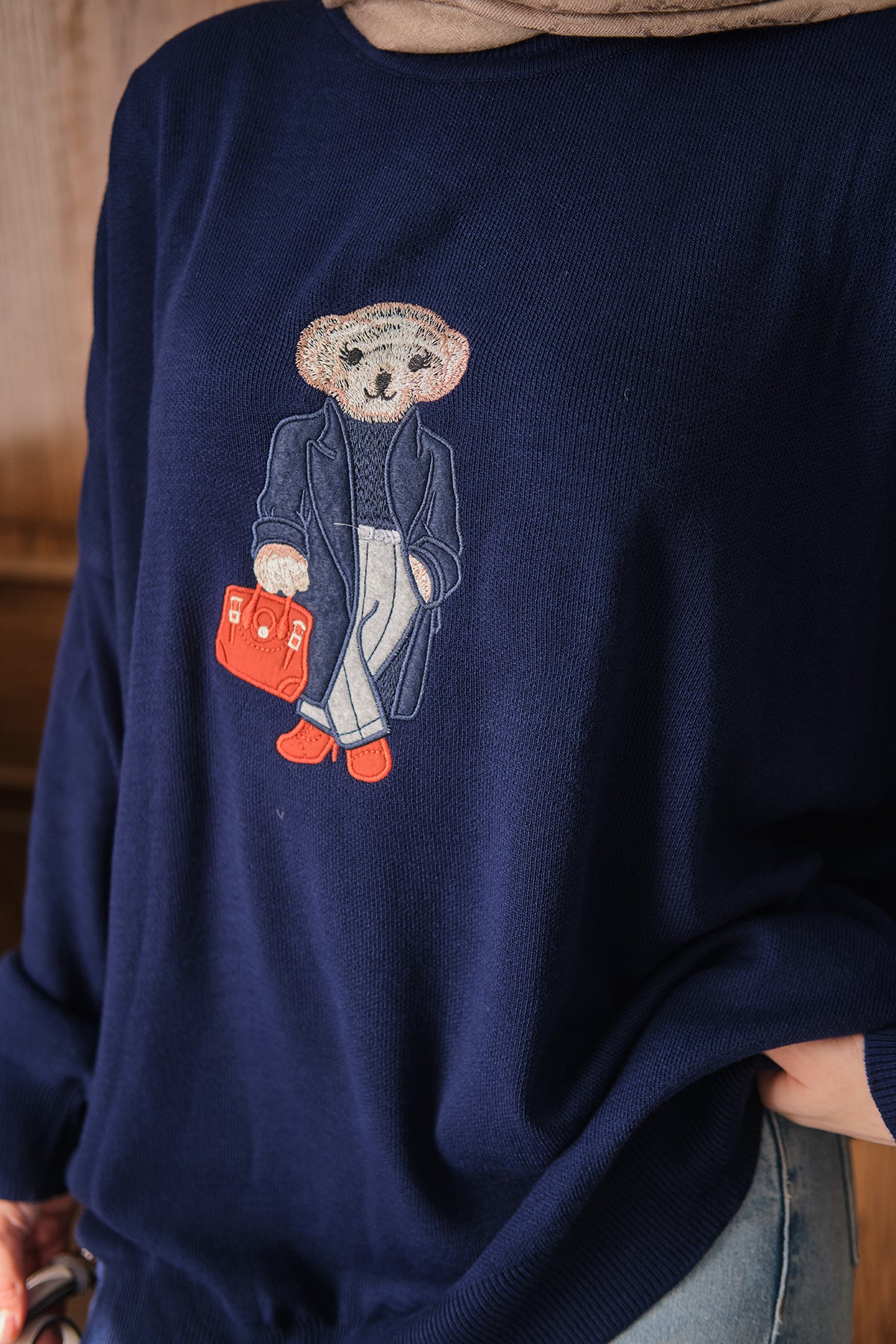 Ayıcık Nakışlı Triko Tunik Lacivert