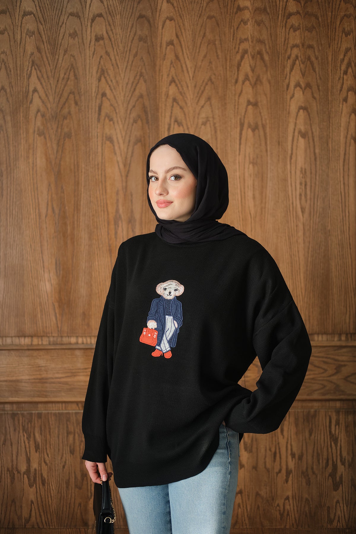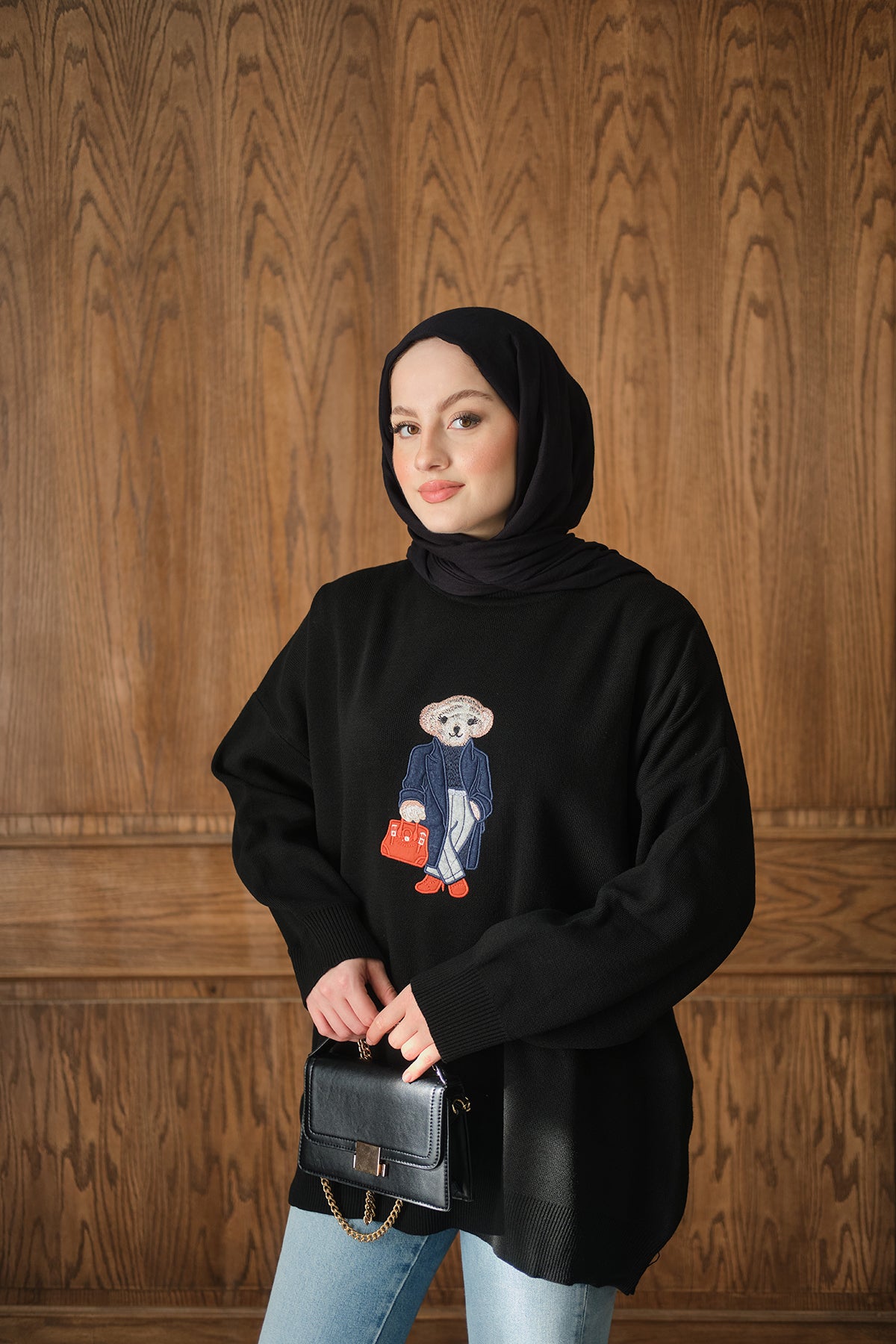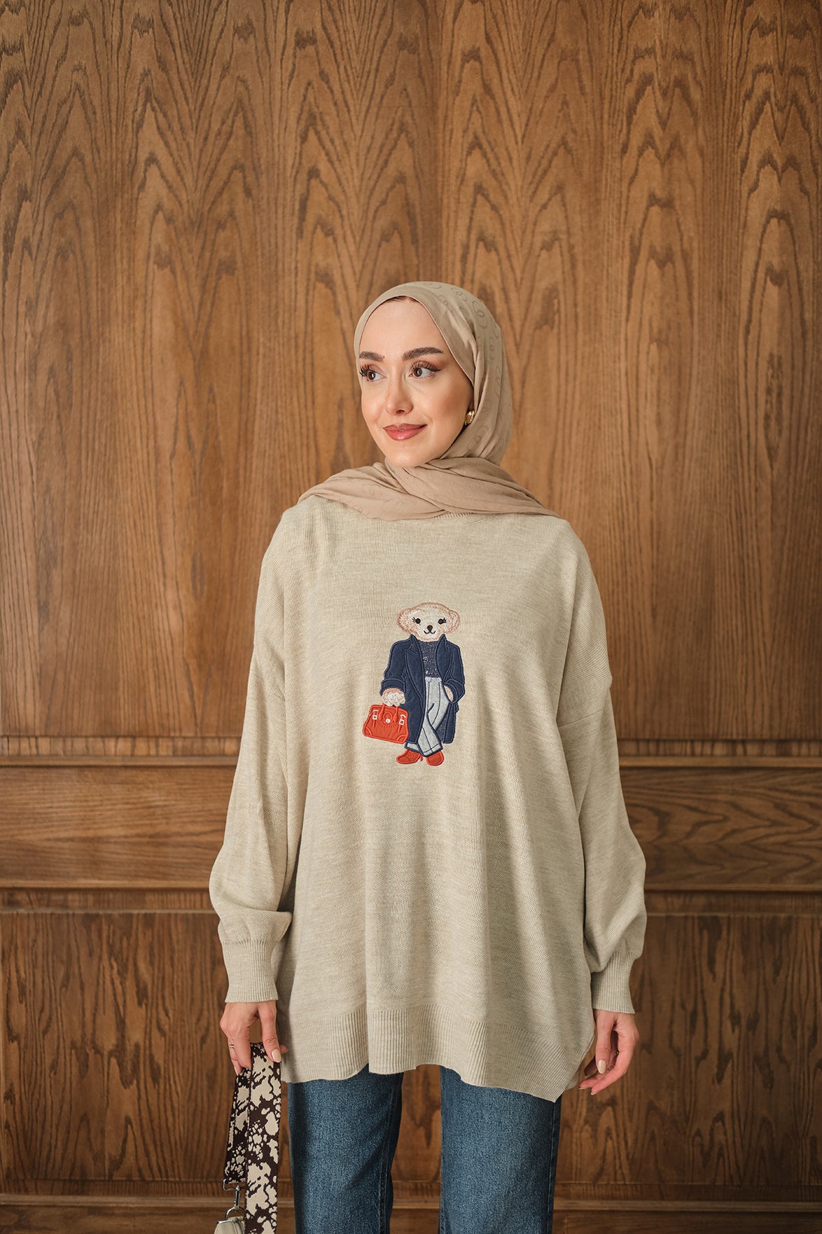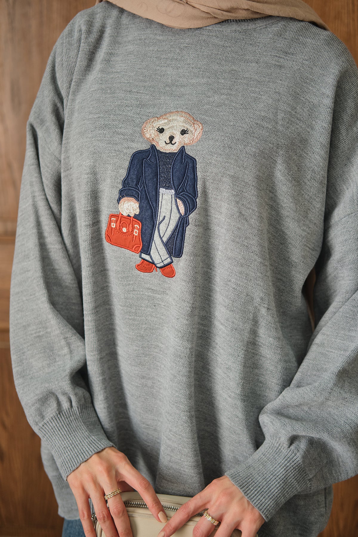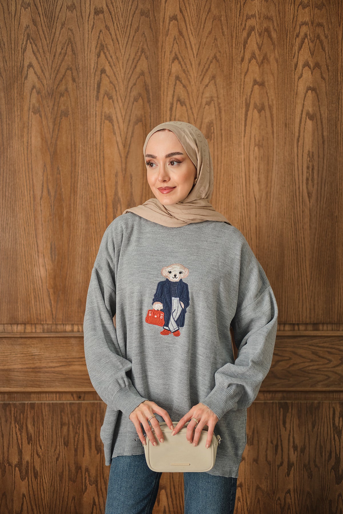 Ayıcık Nakışlı Triko Tunik Lacivert