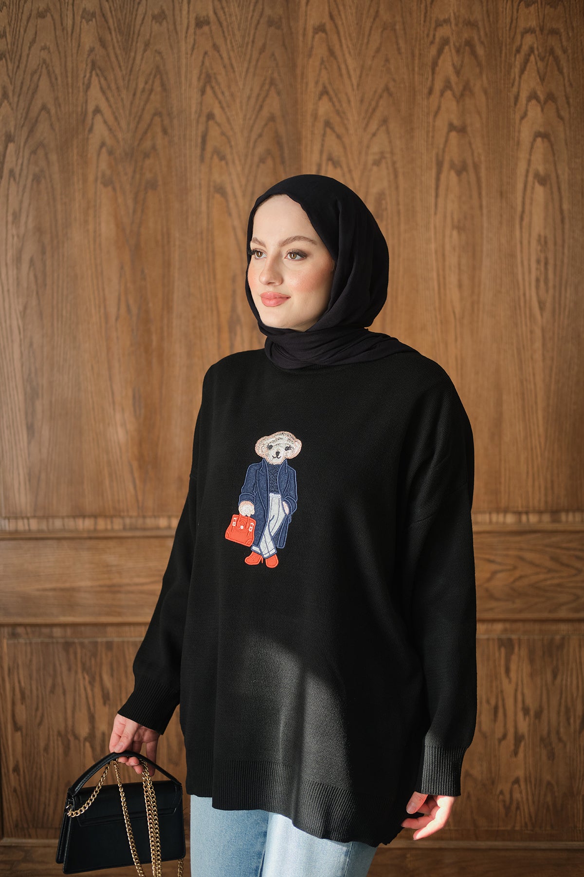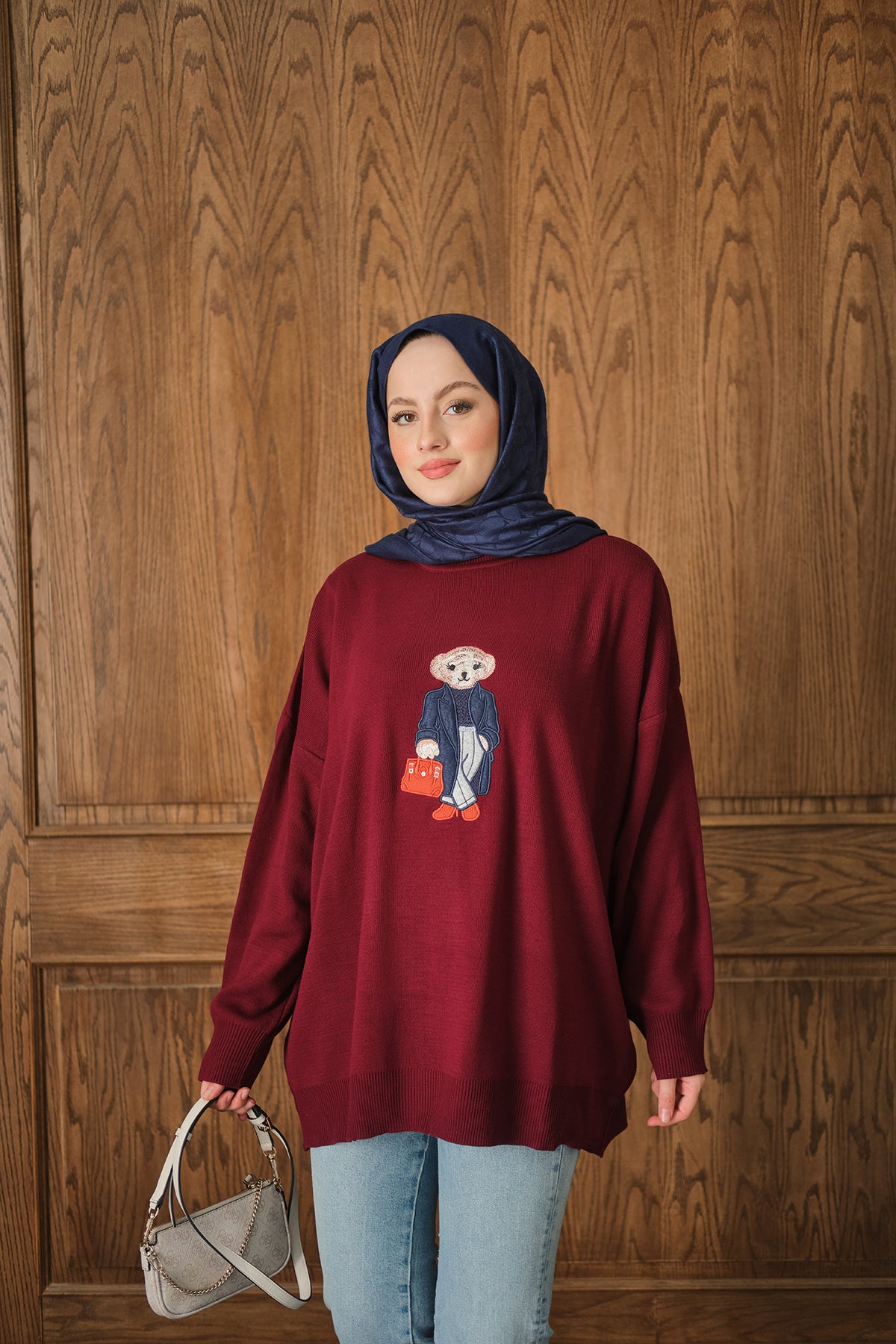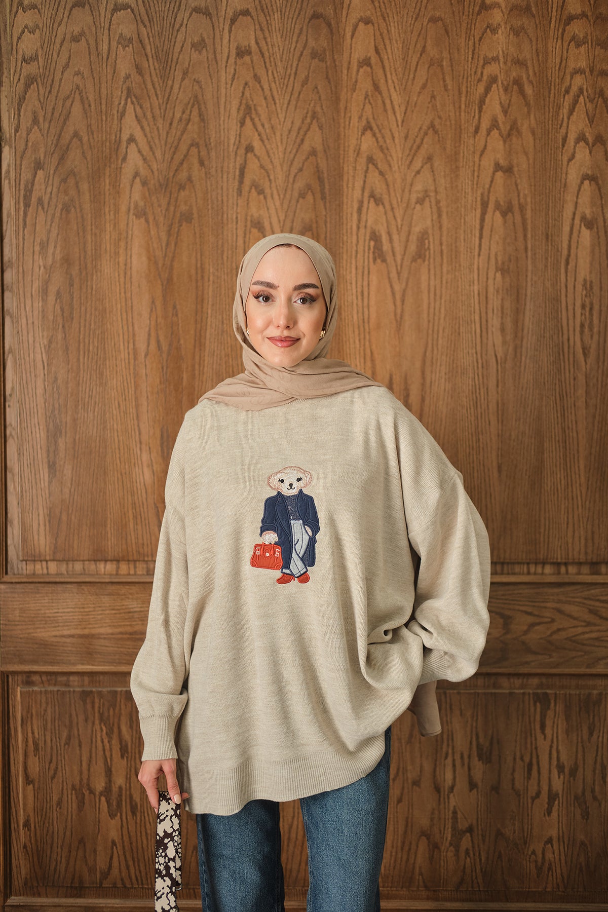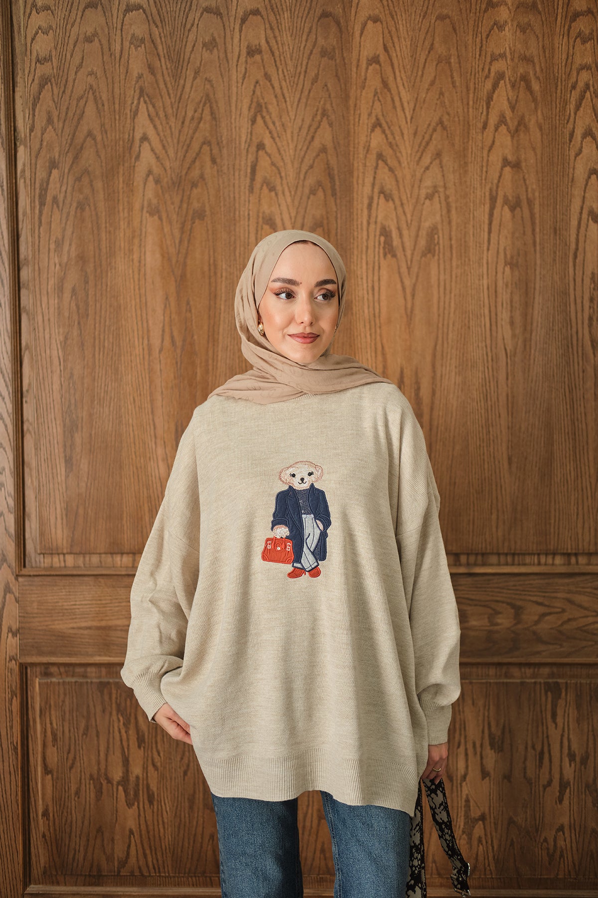 Ayıcık Nakışlı Triko Tunik Lacivert