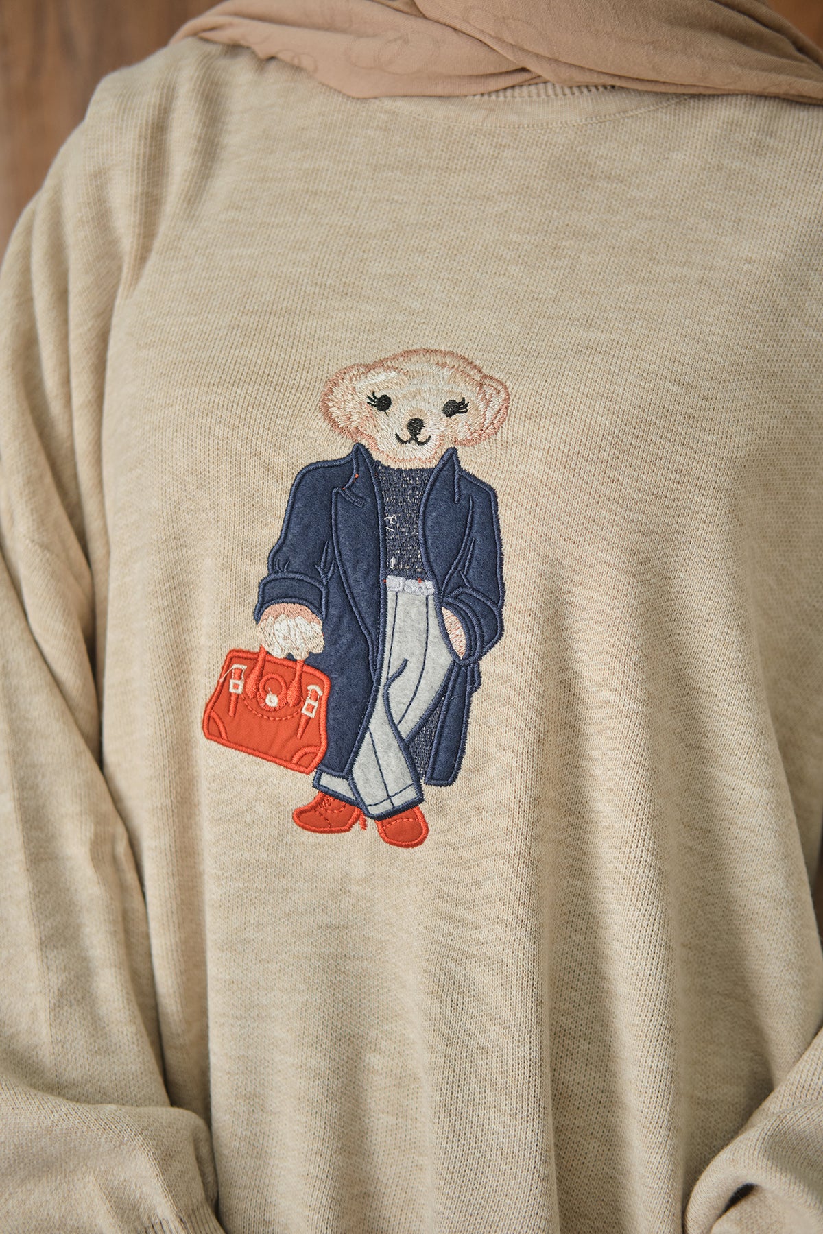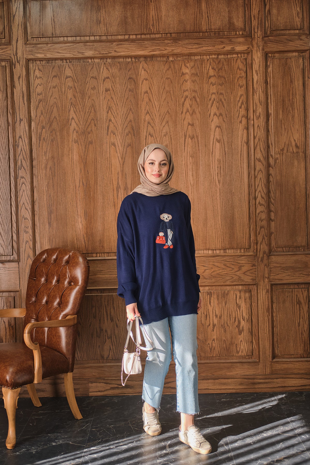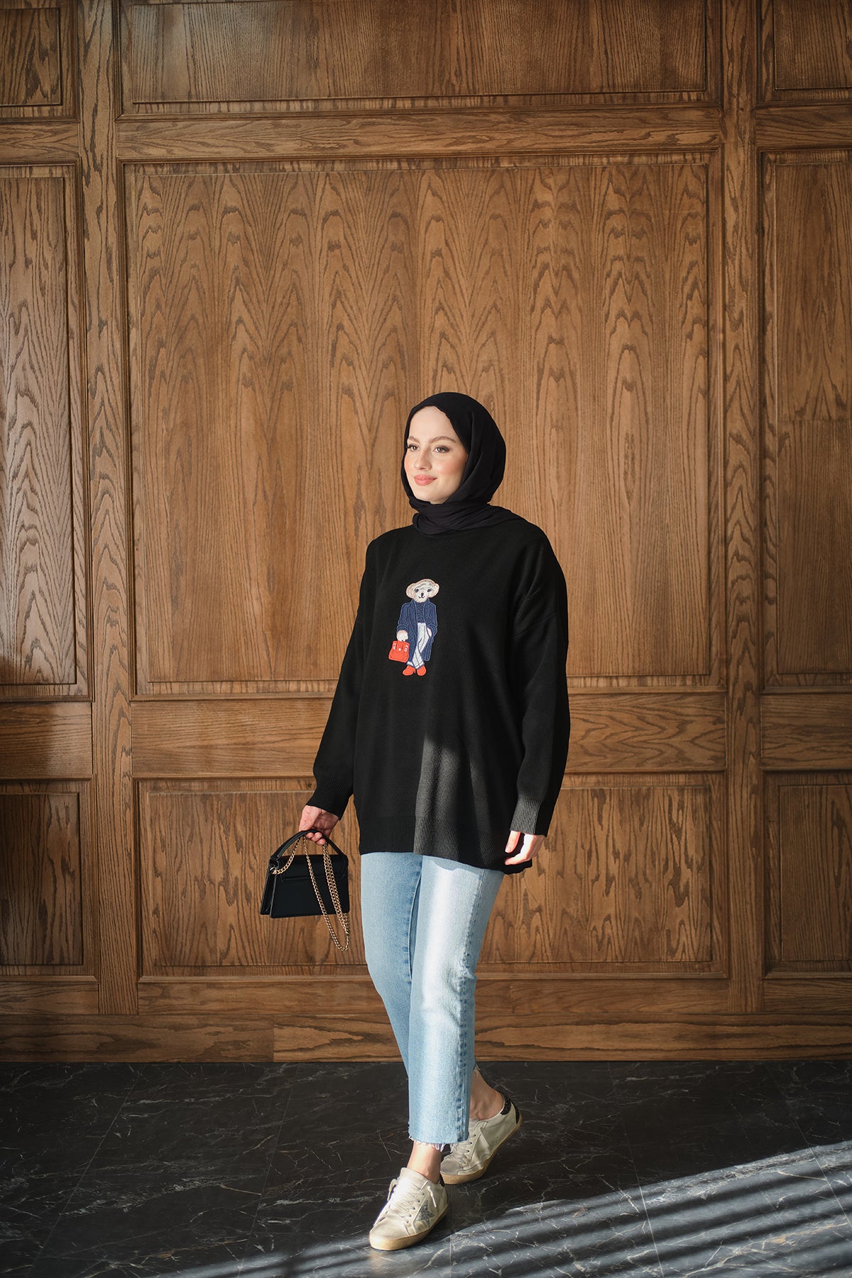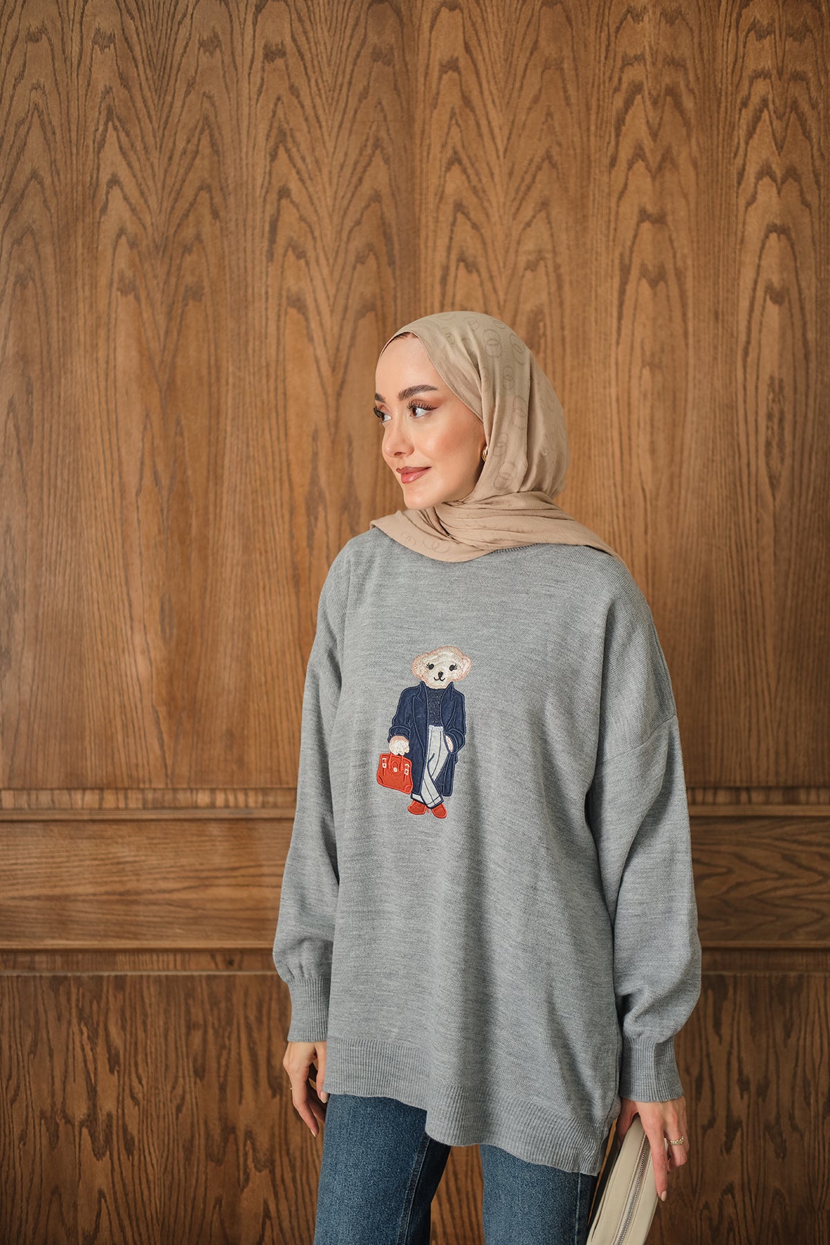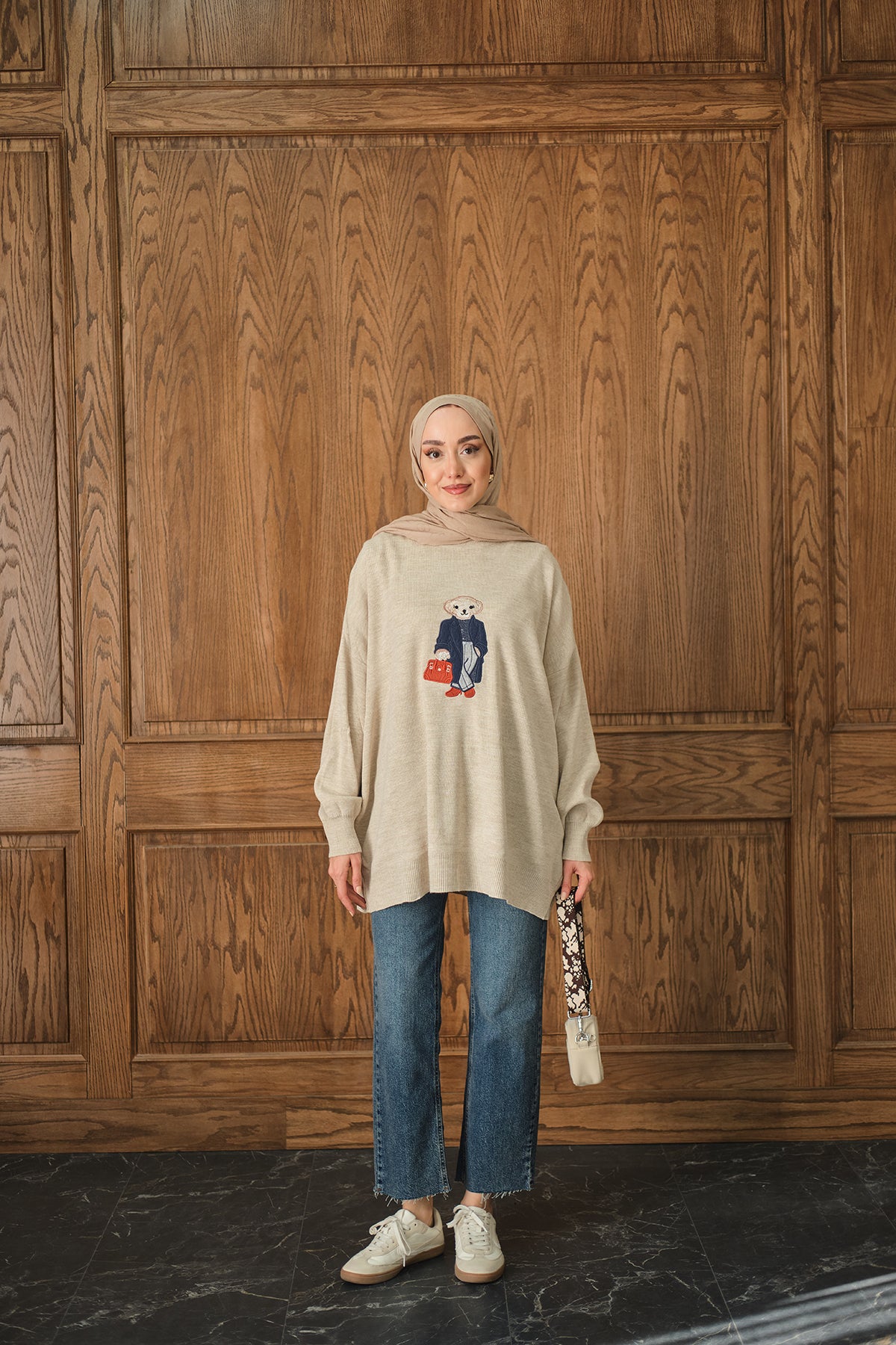 Ayıcık Nakışlı Triko Tunik Lacivert