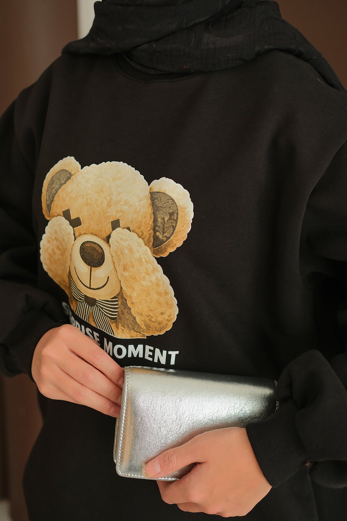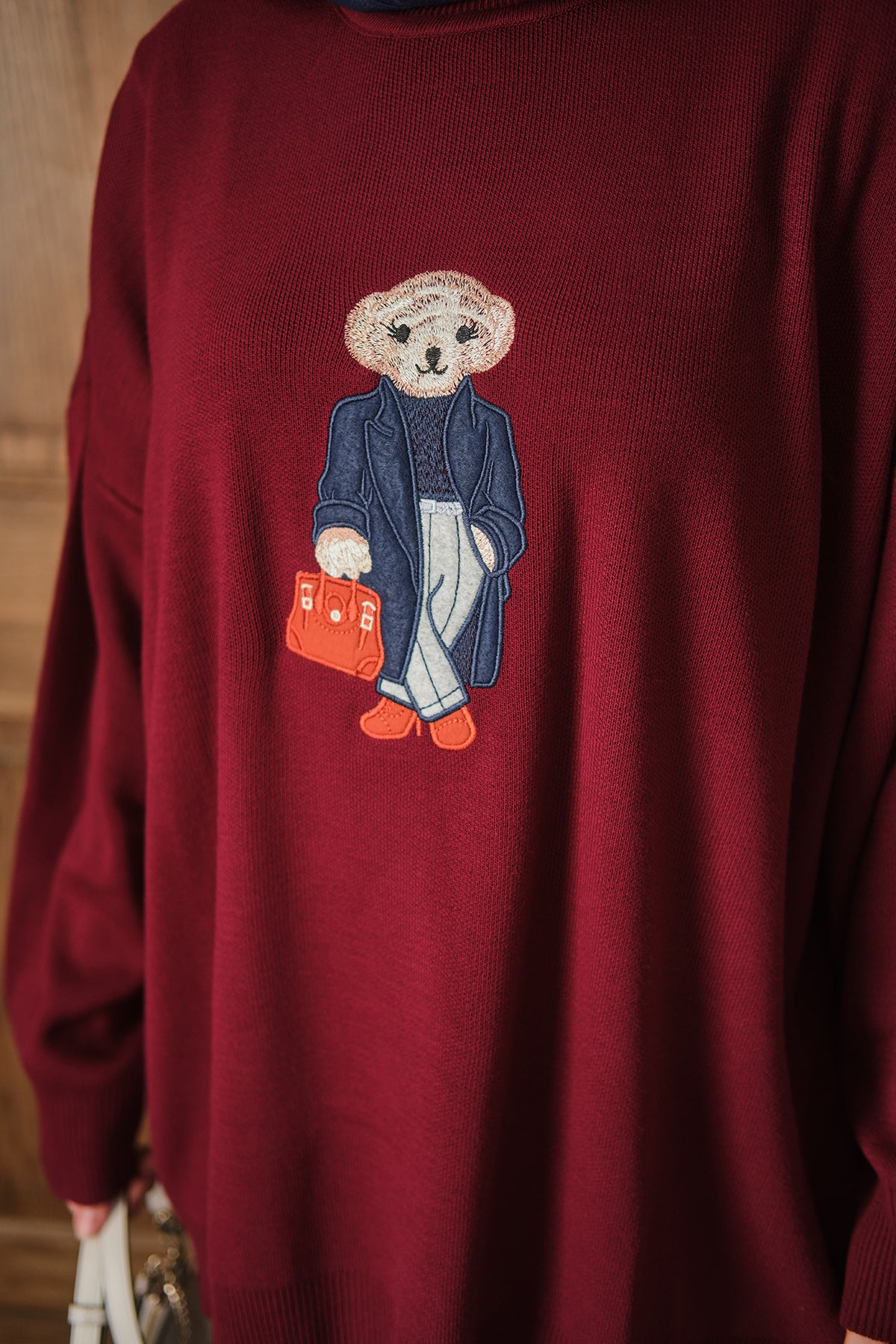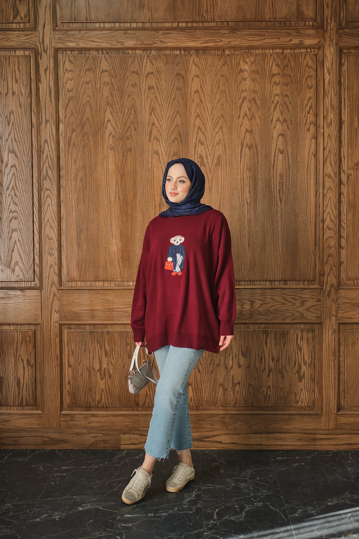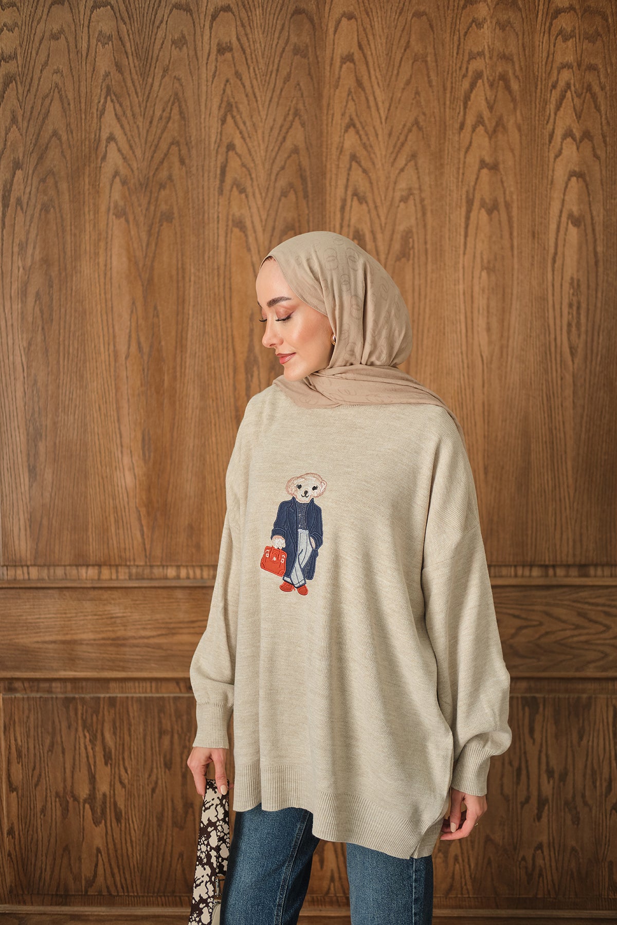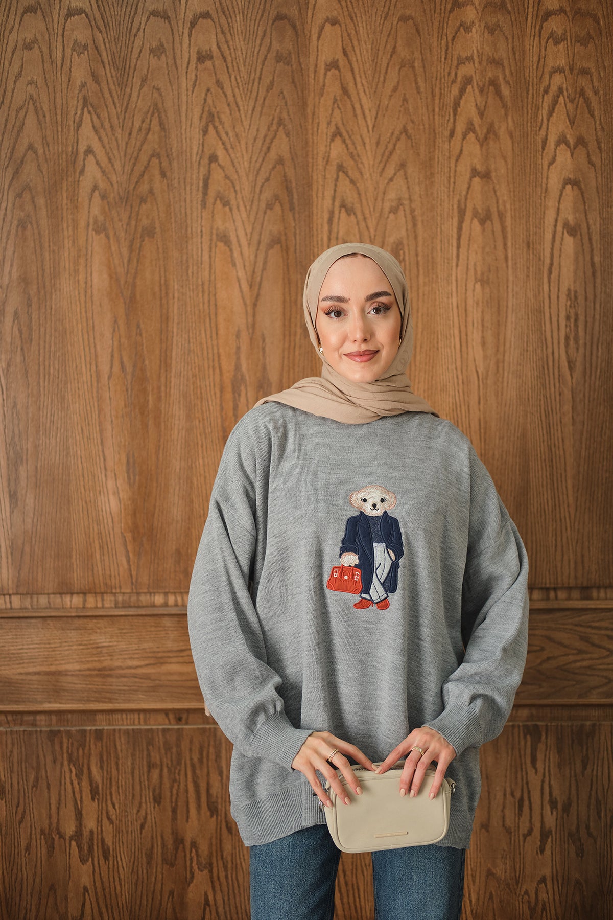 Ayıcık Nakışlı Triko Tunik Lacivert