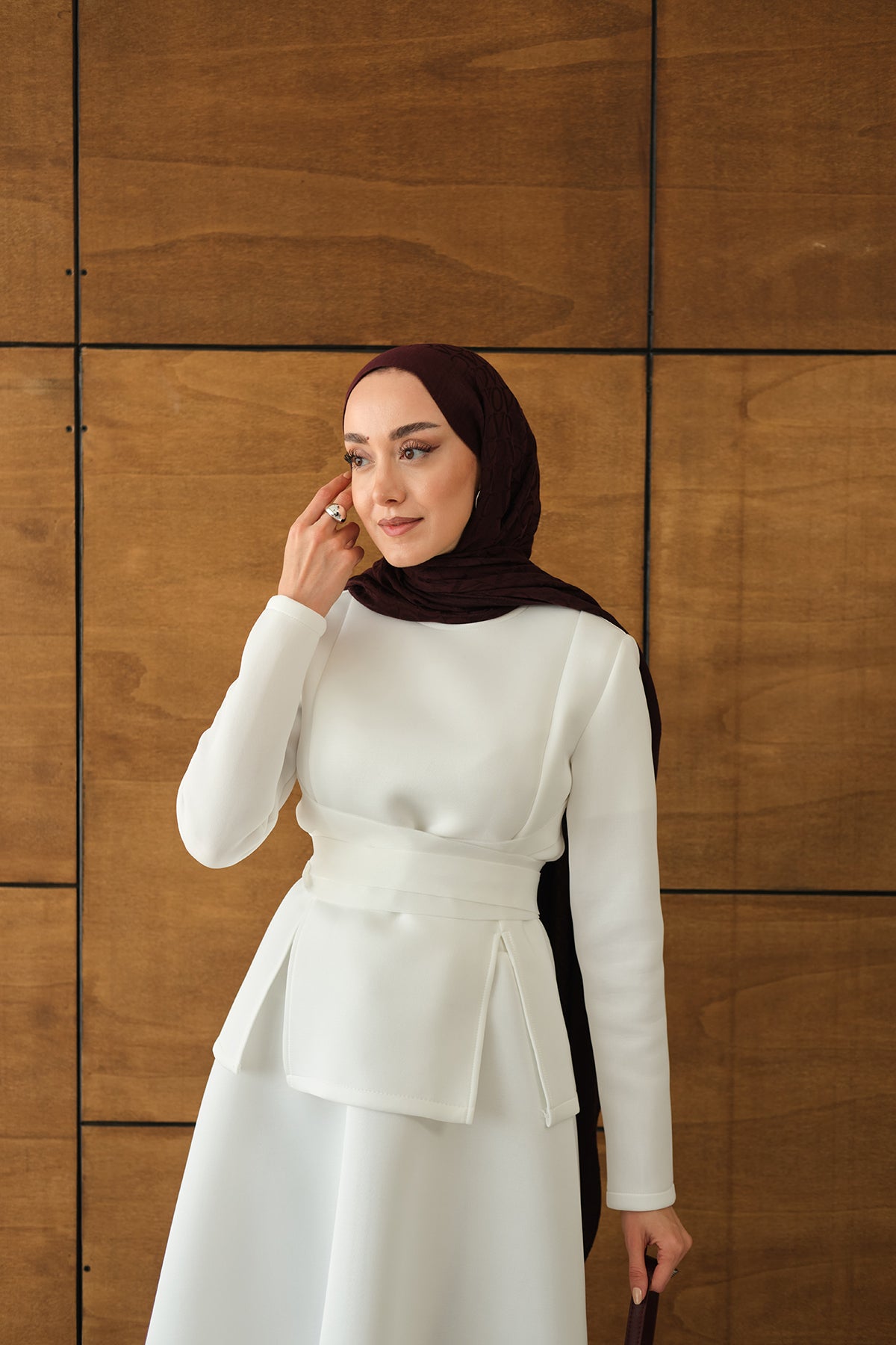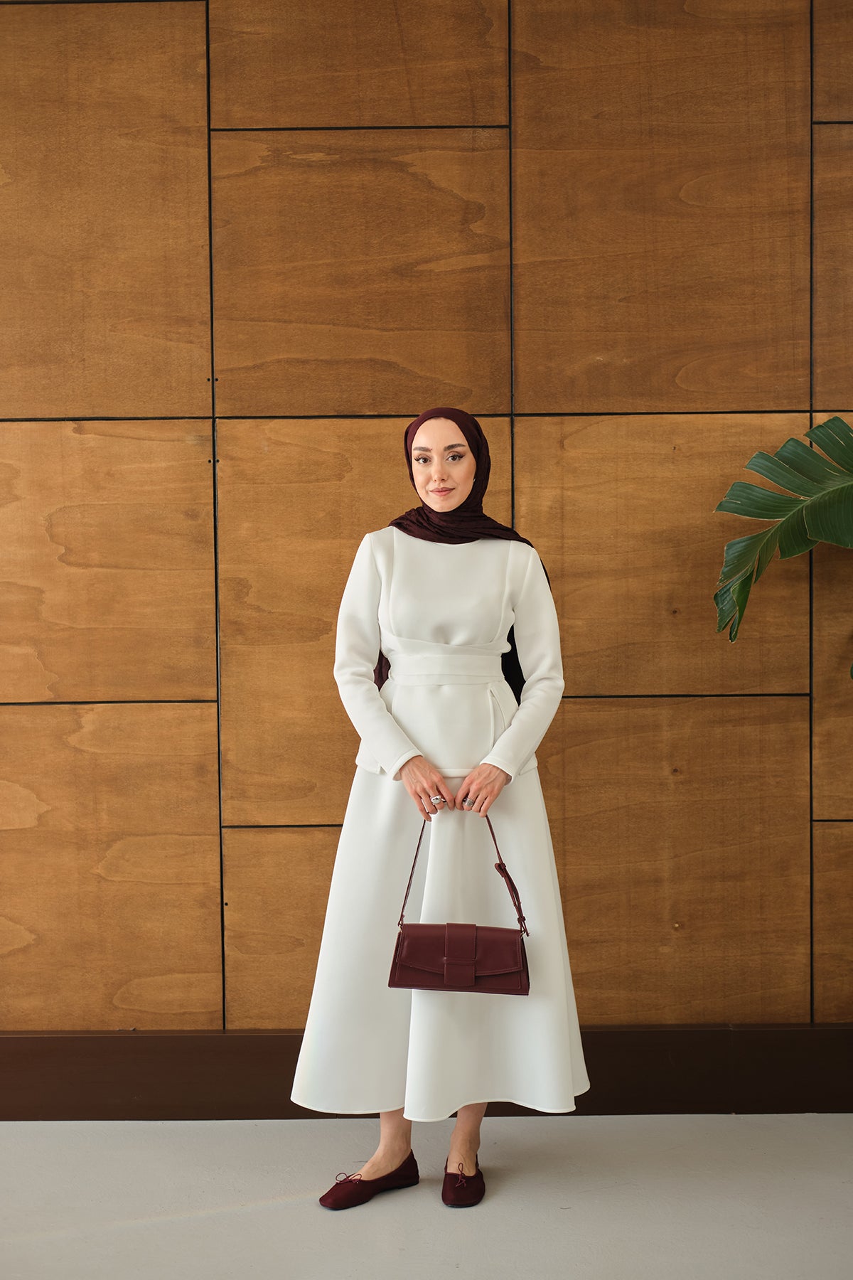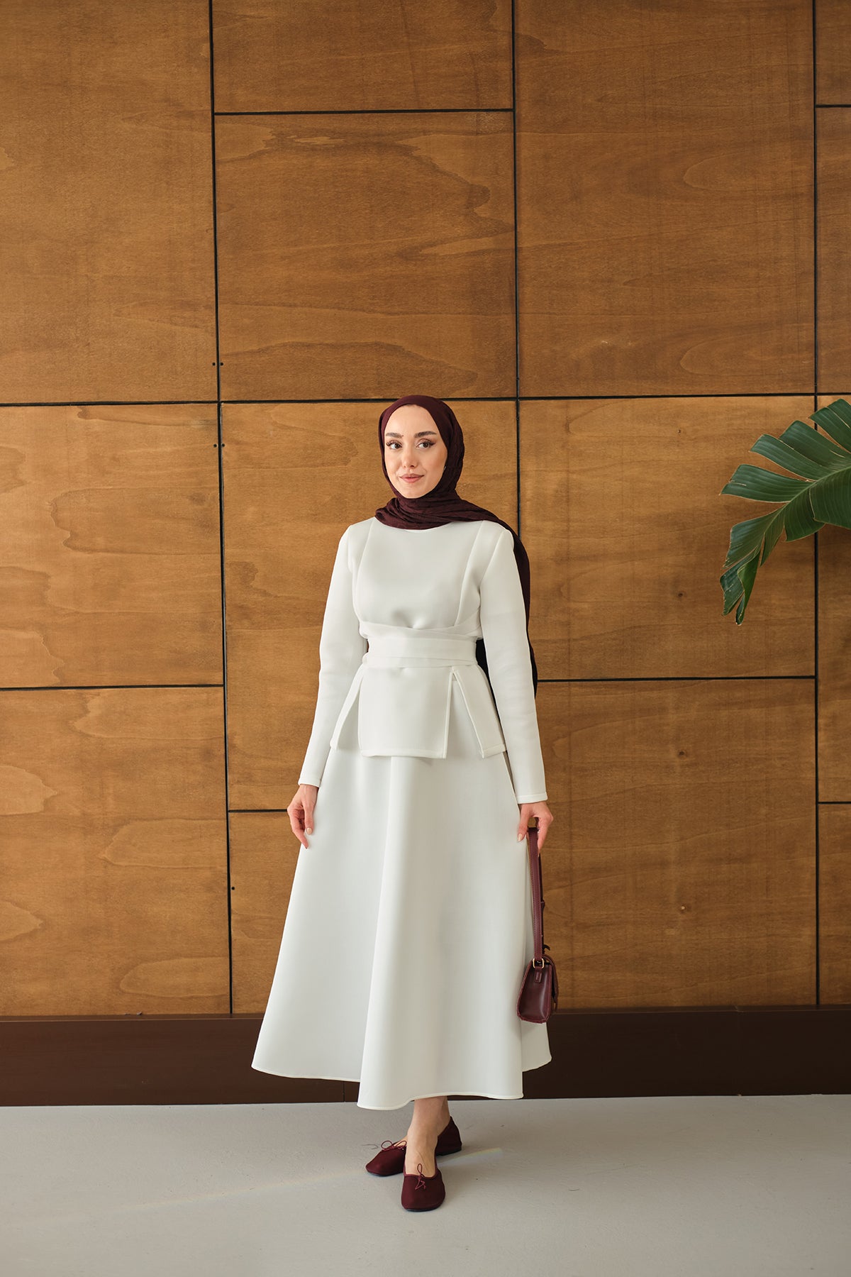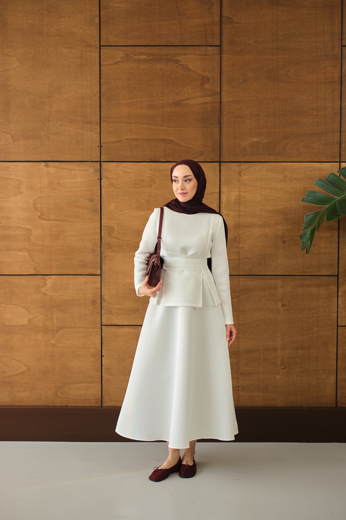 Bel Bağlamalı Etekli Takım Beyaz