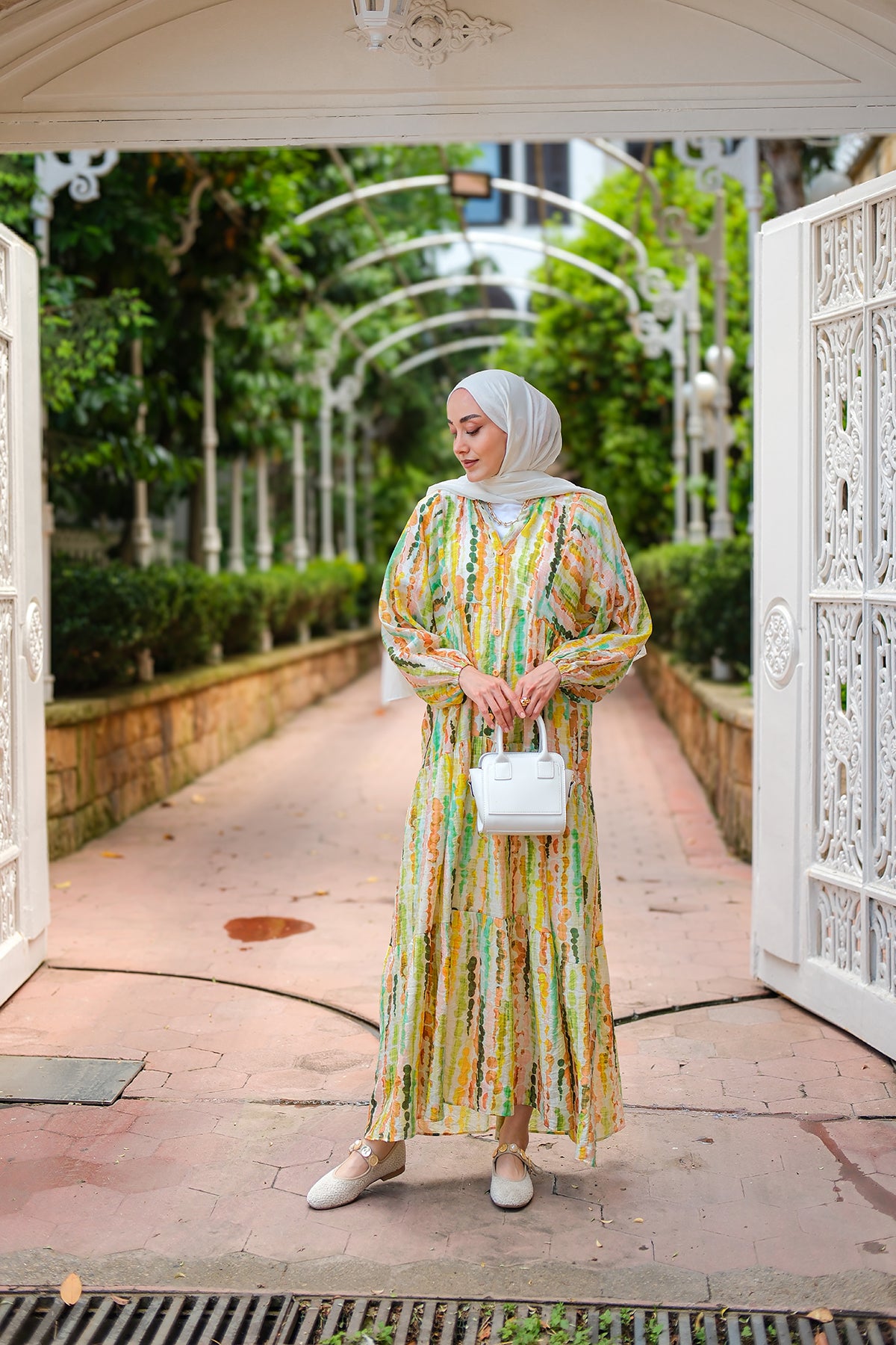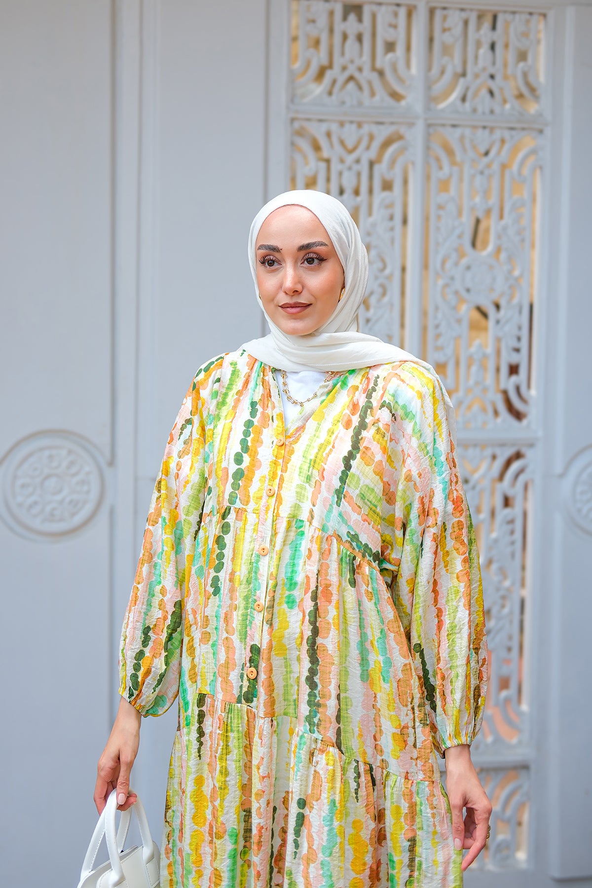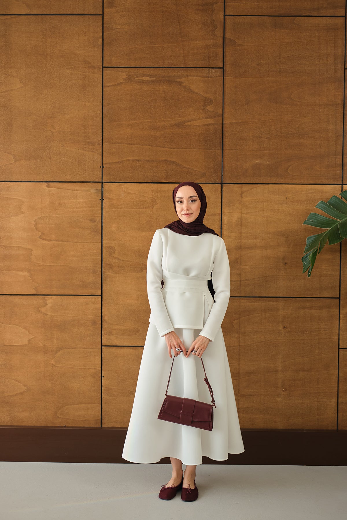 Bel Bağlamalı Etekli Takım Beyaz