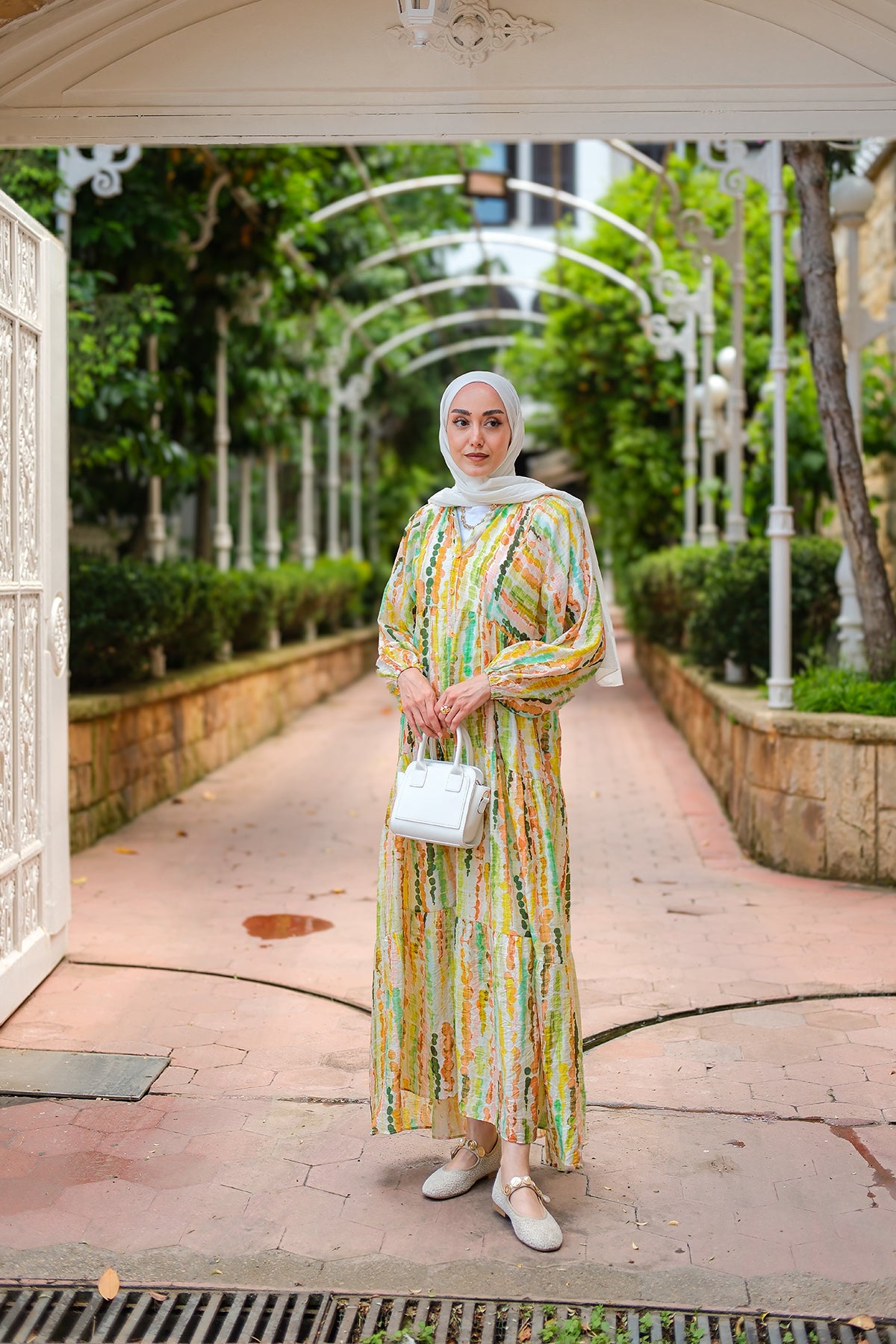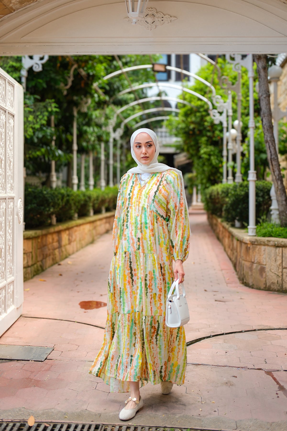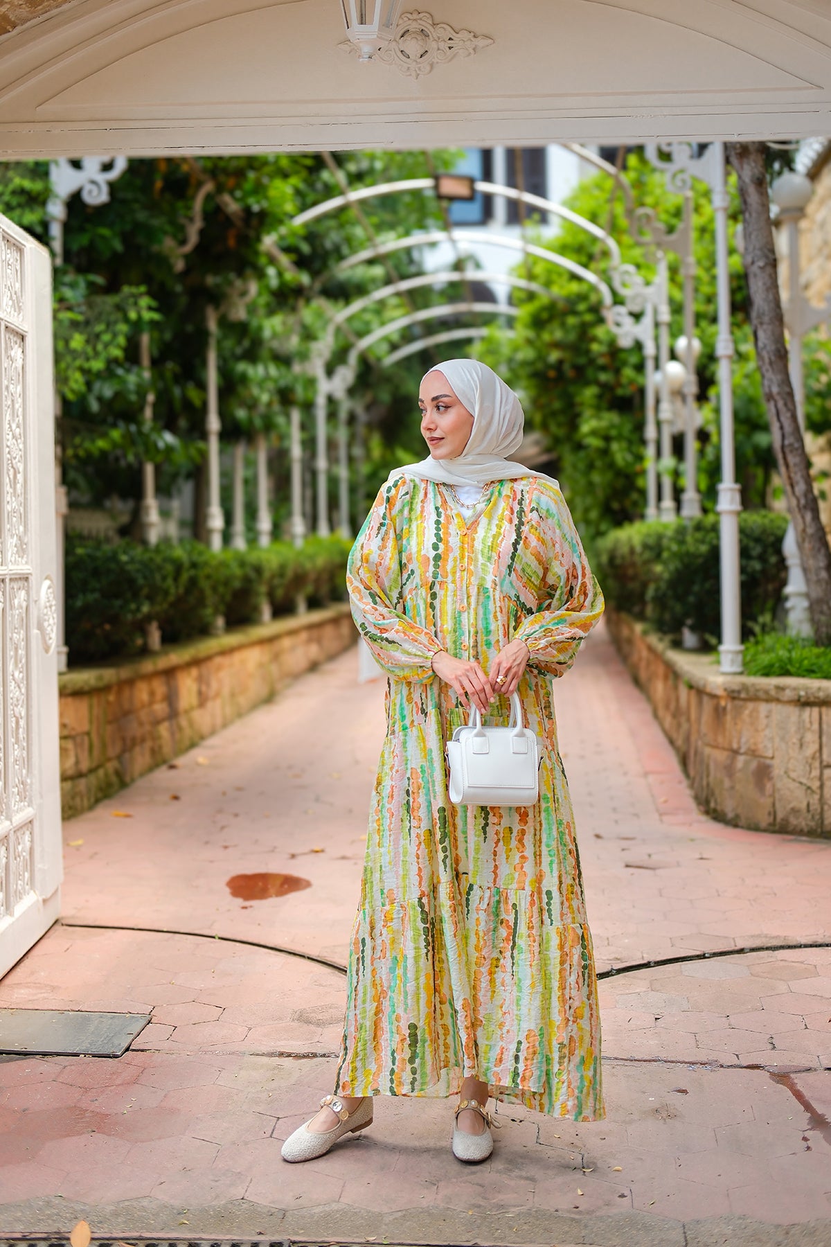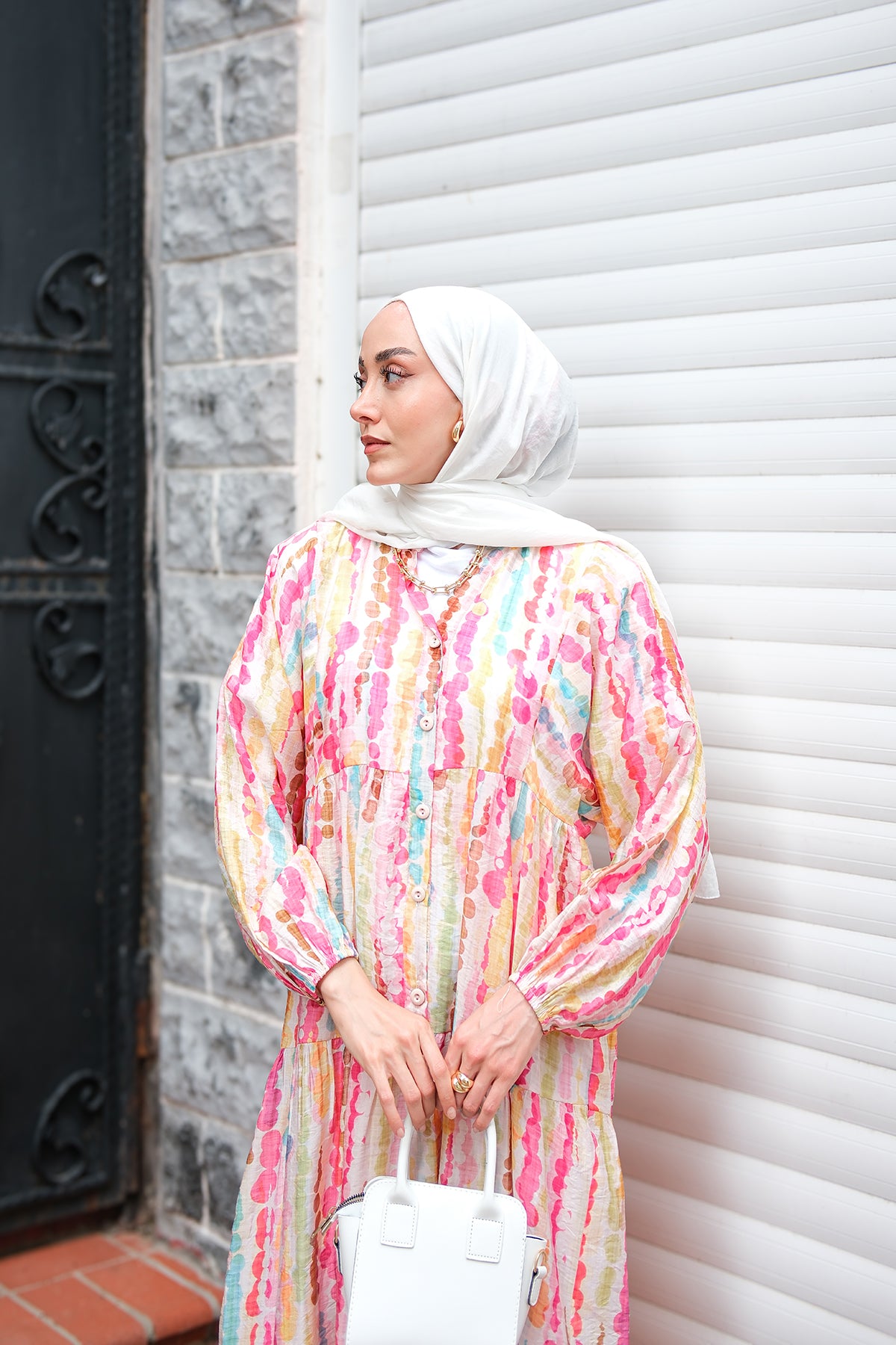 Bel Bağlamalı Etekli Takım Beyaz