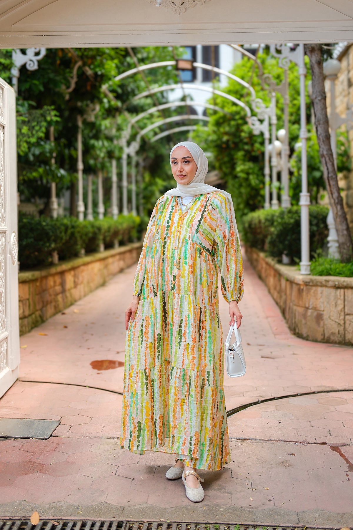 Beaded Pattern Dress Green