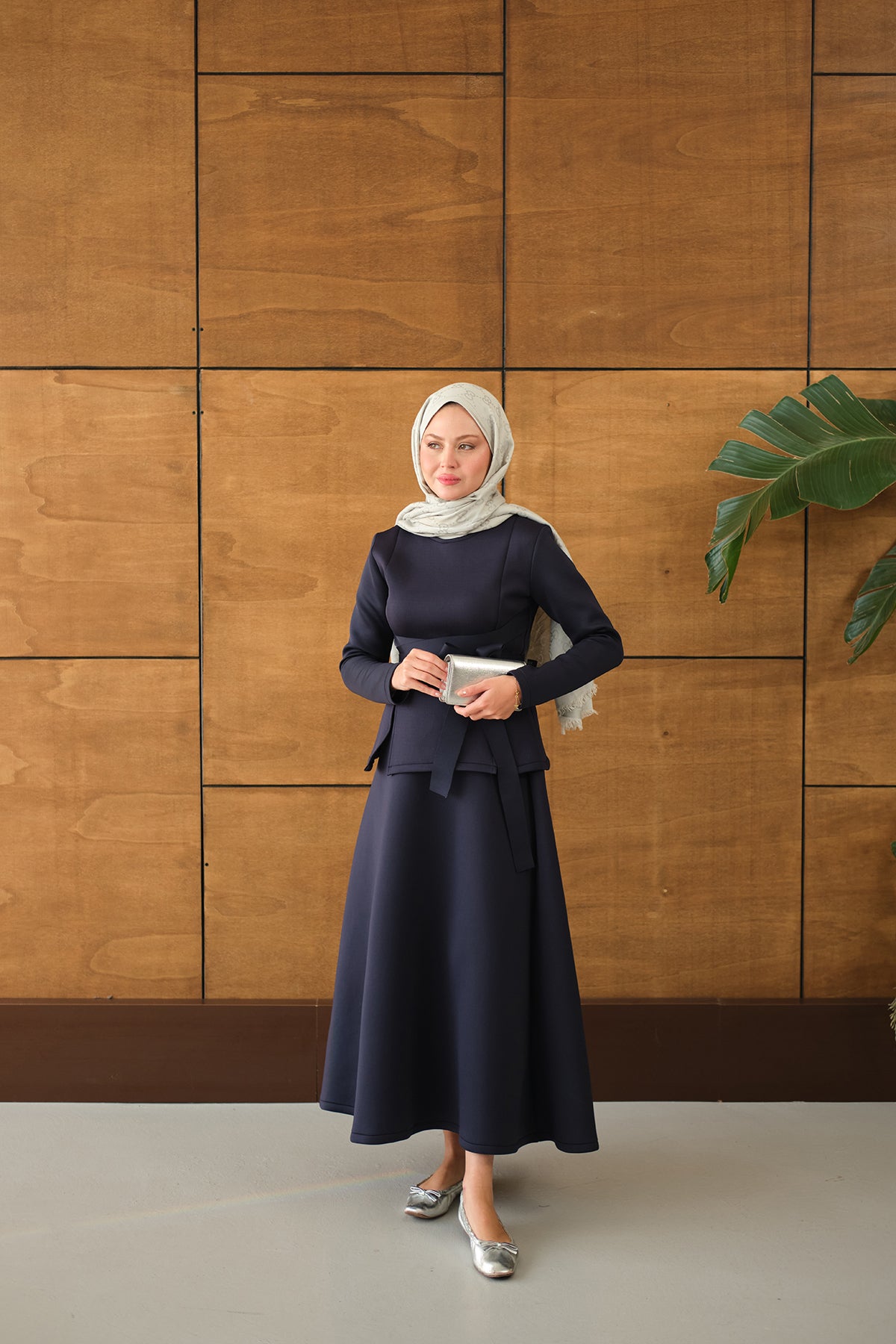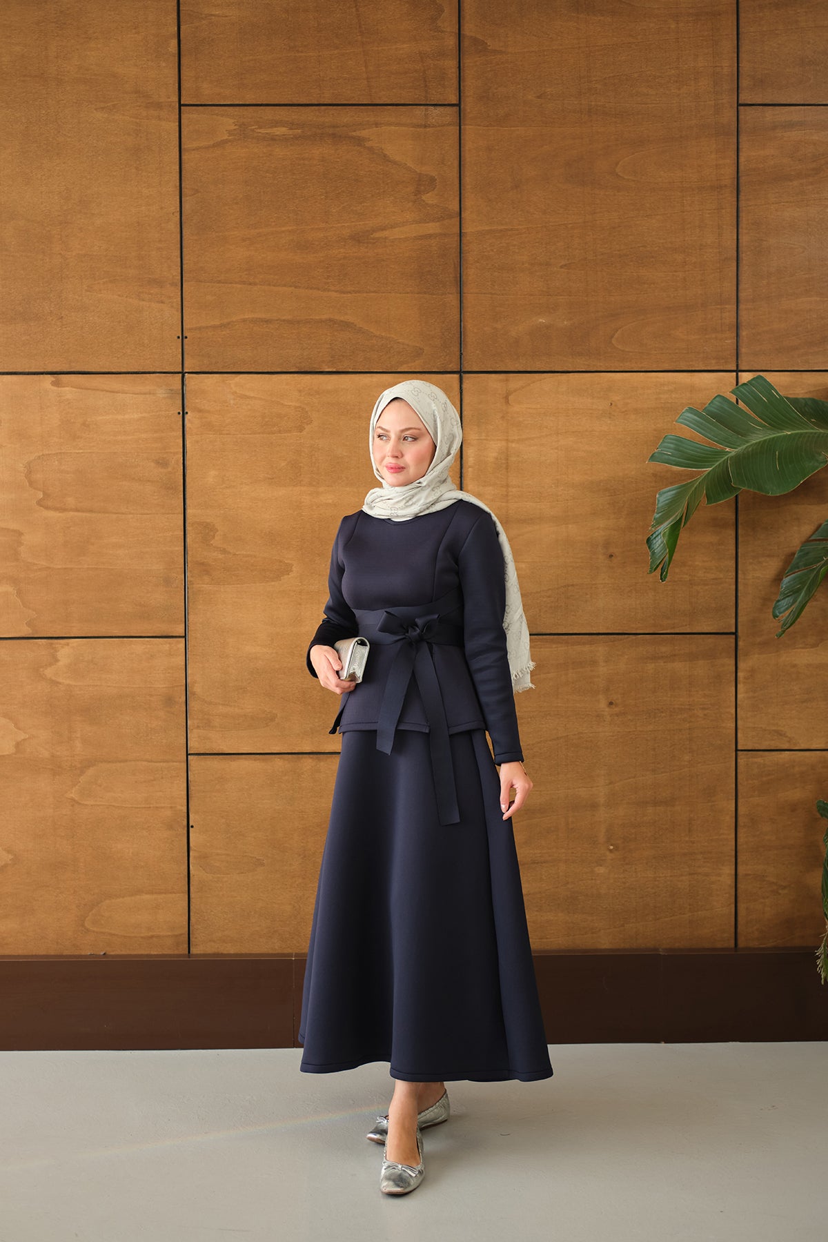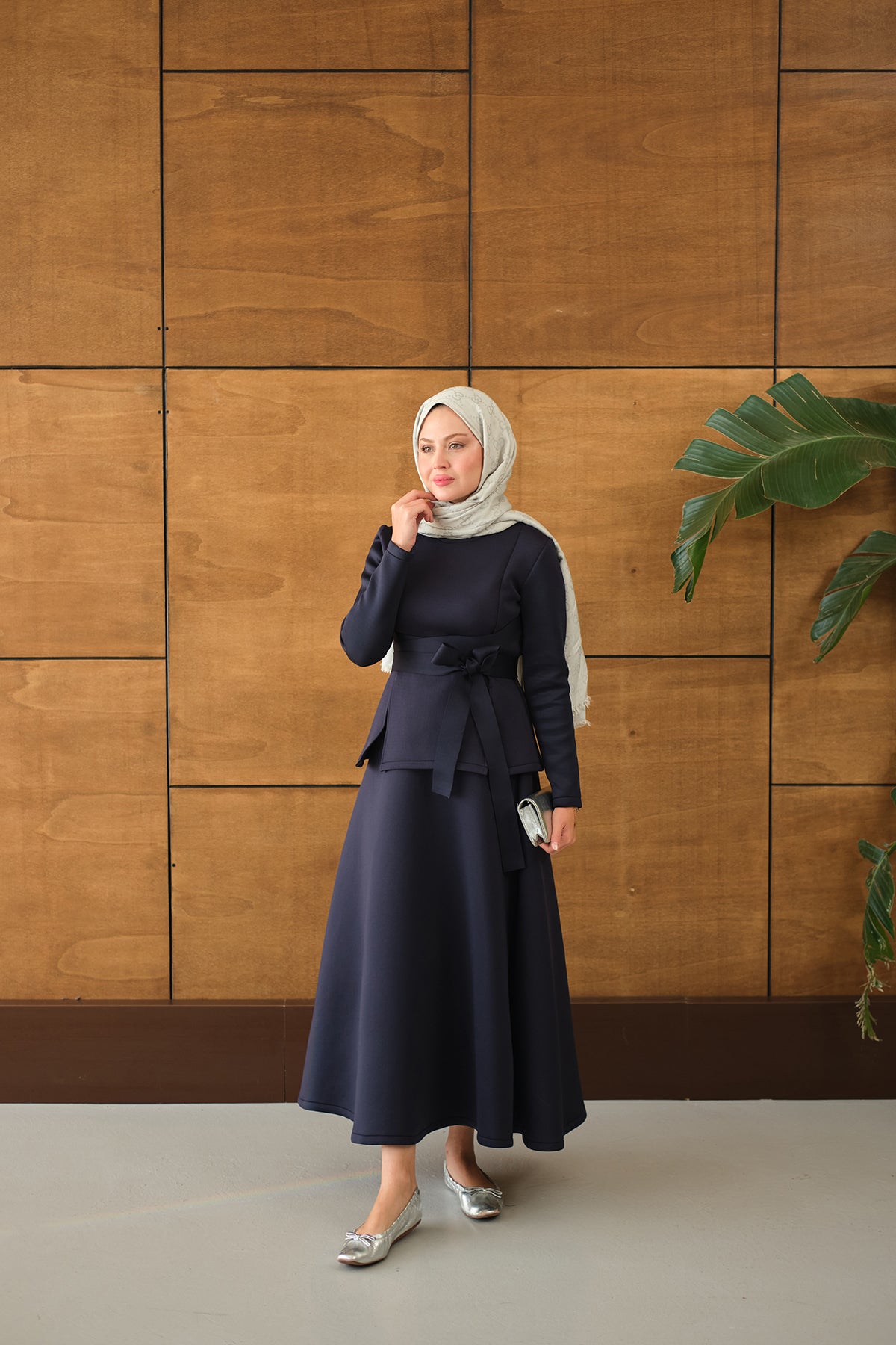 Bel Bağlamalı Etekli Takım Lacivert