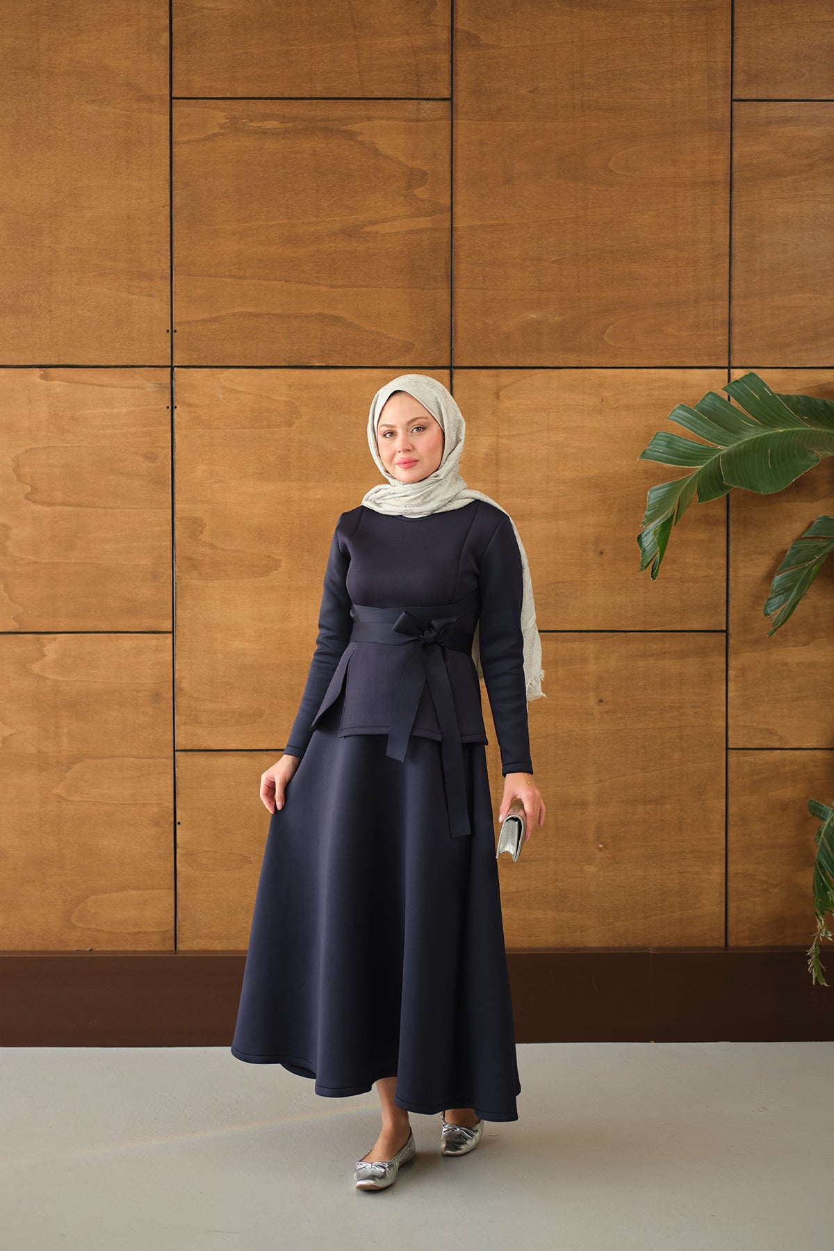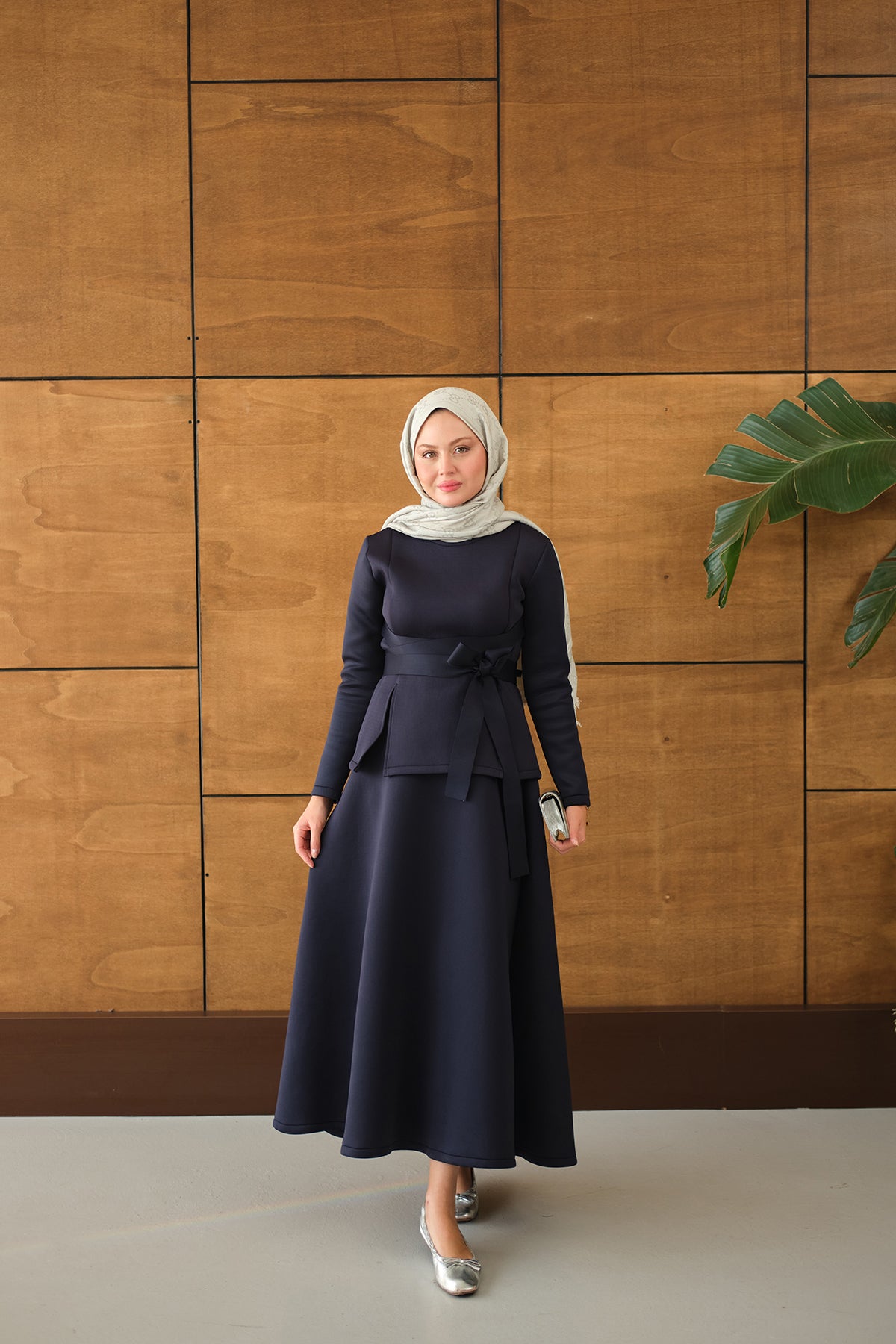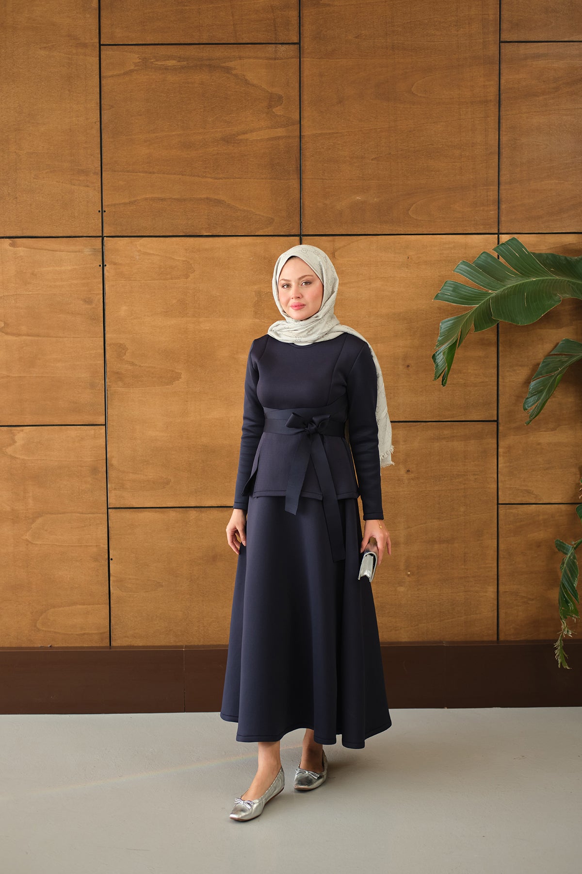 Bel Bağlamalı Etekli Takım Lacivert