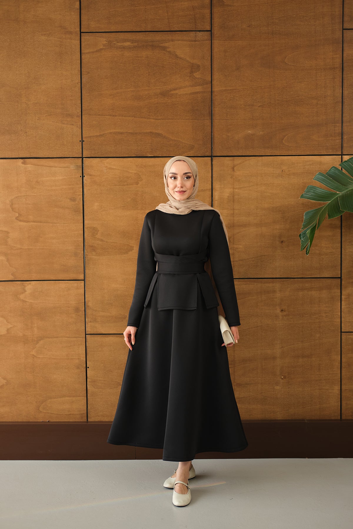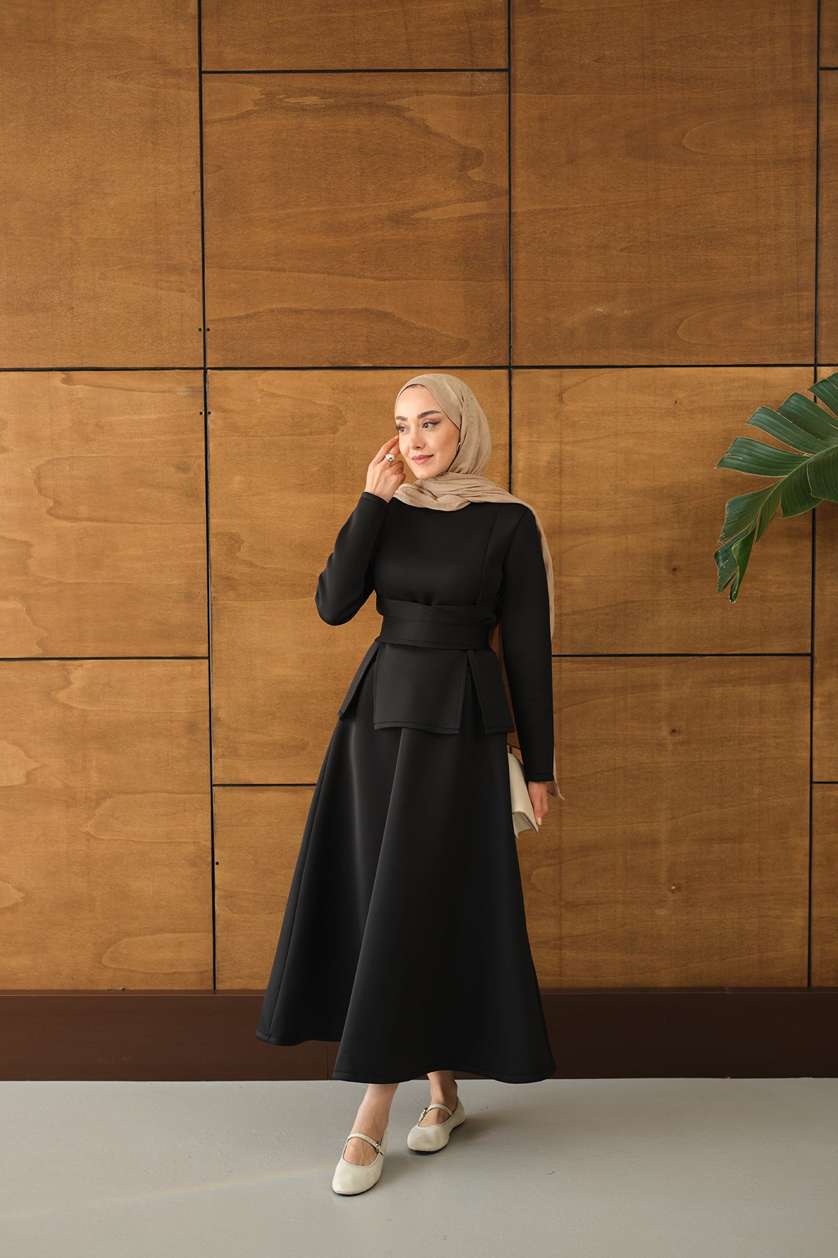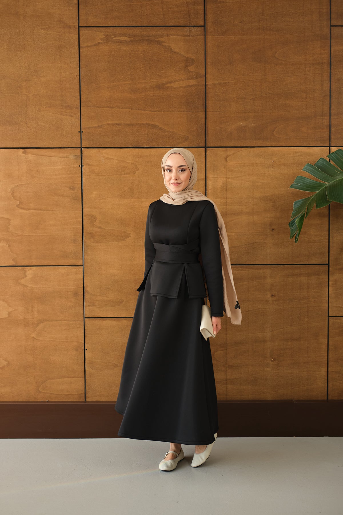 Bel Bağlamalı Etekli Takım Siyah