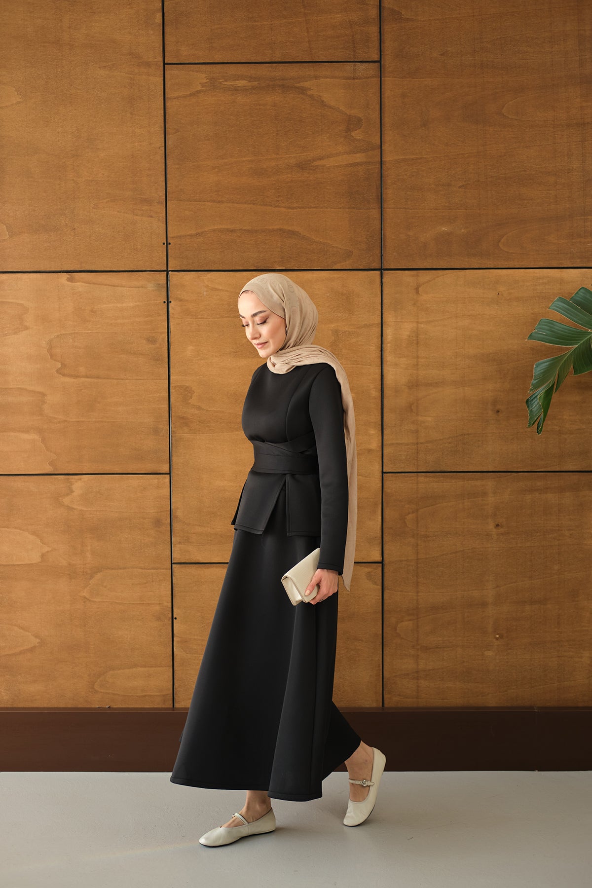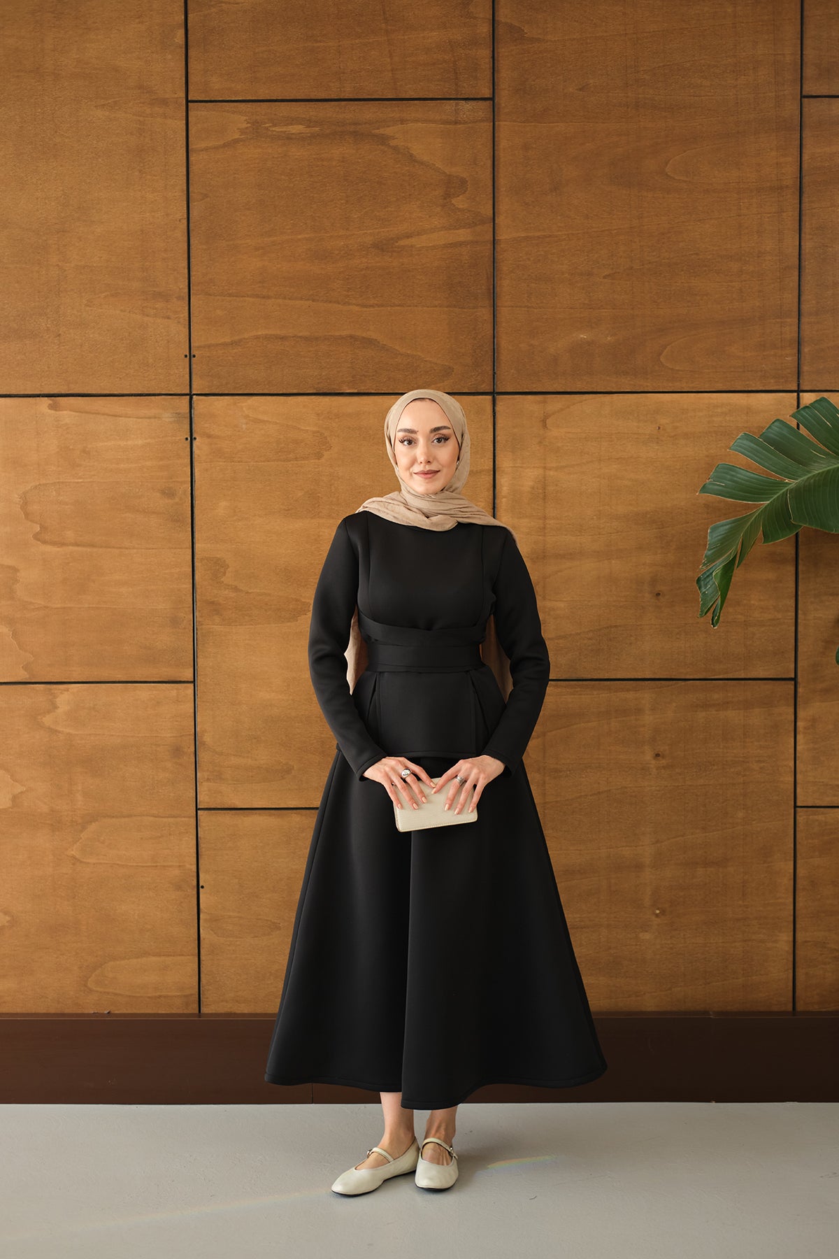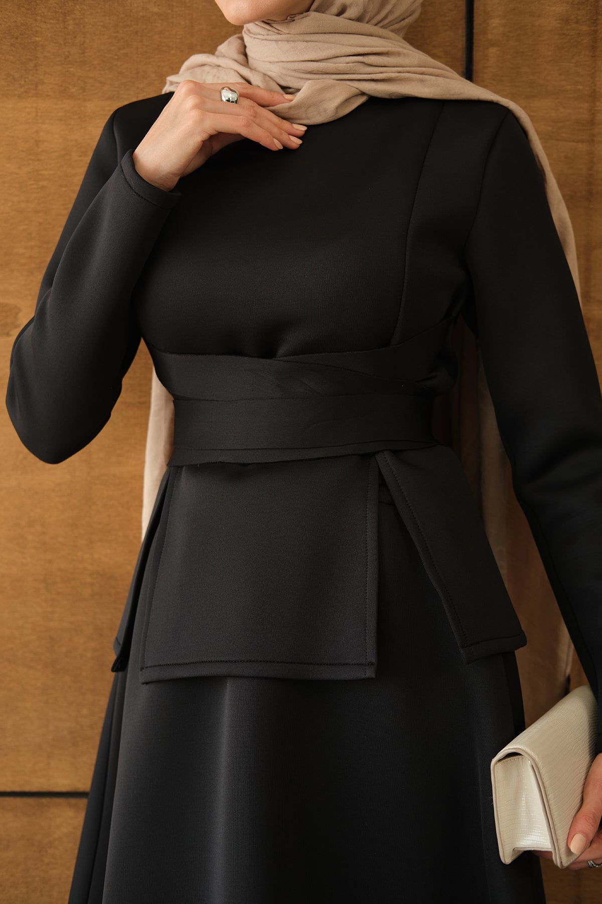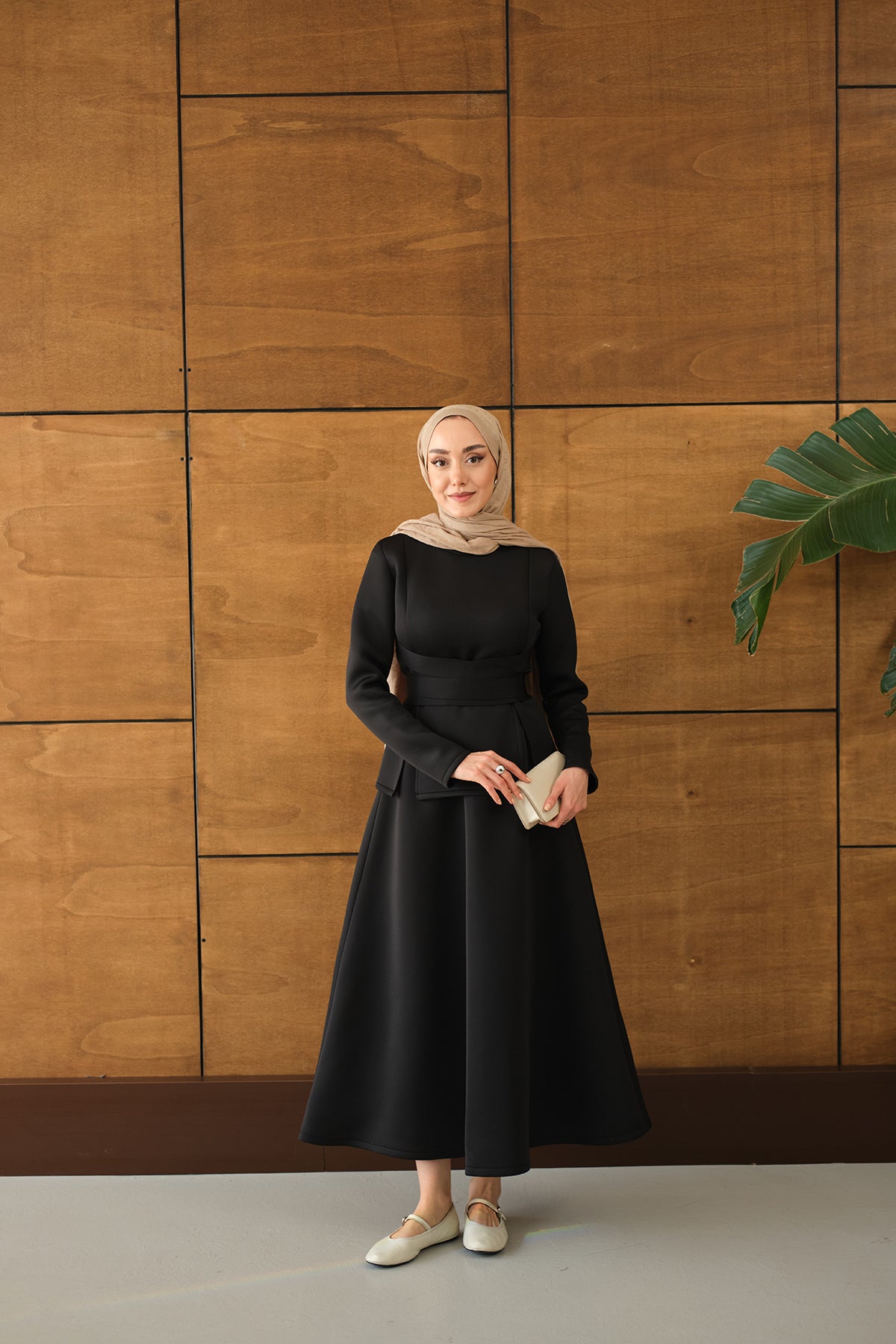 Bel Bağlamalı Etekli Takım Siyah