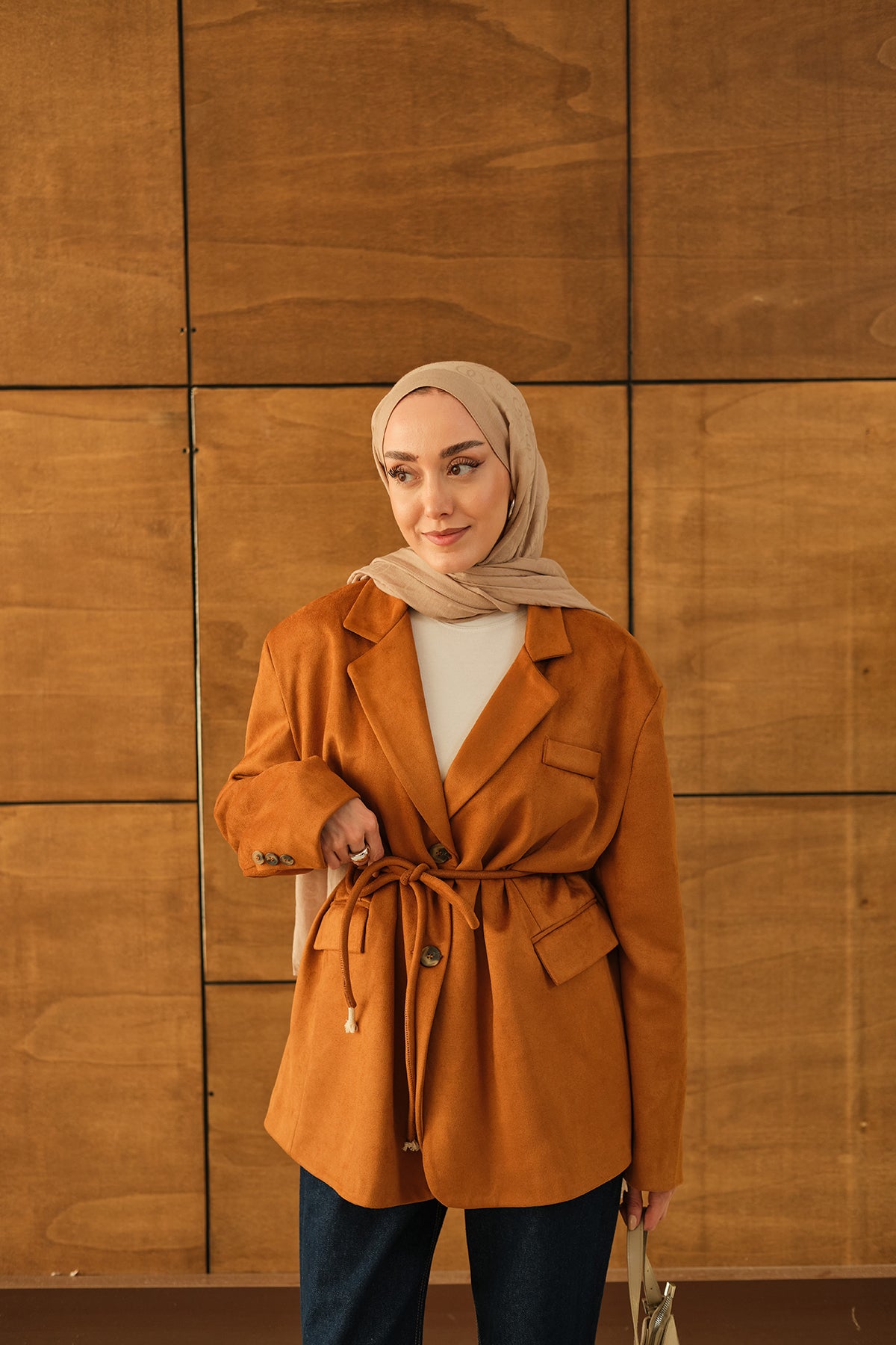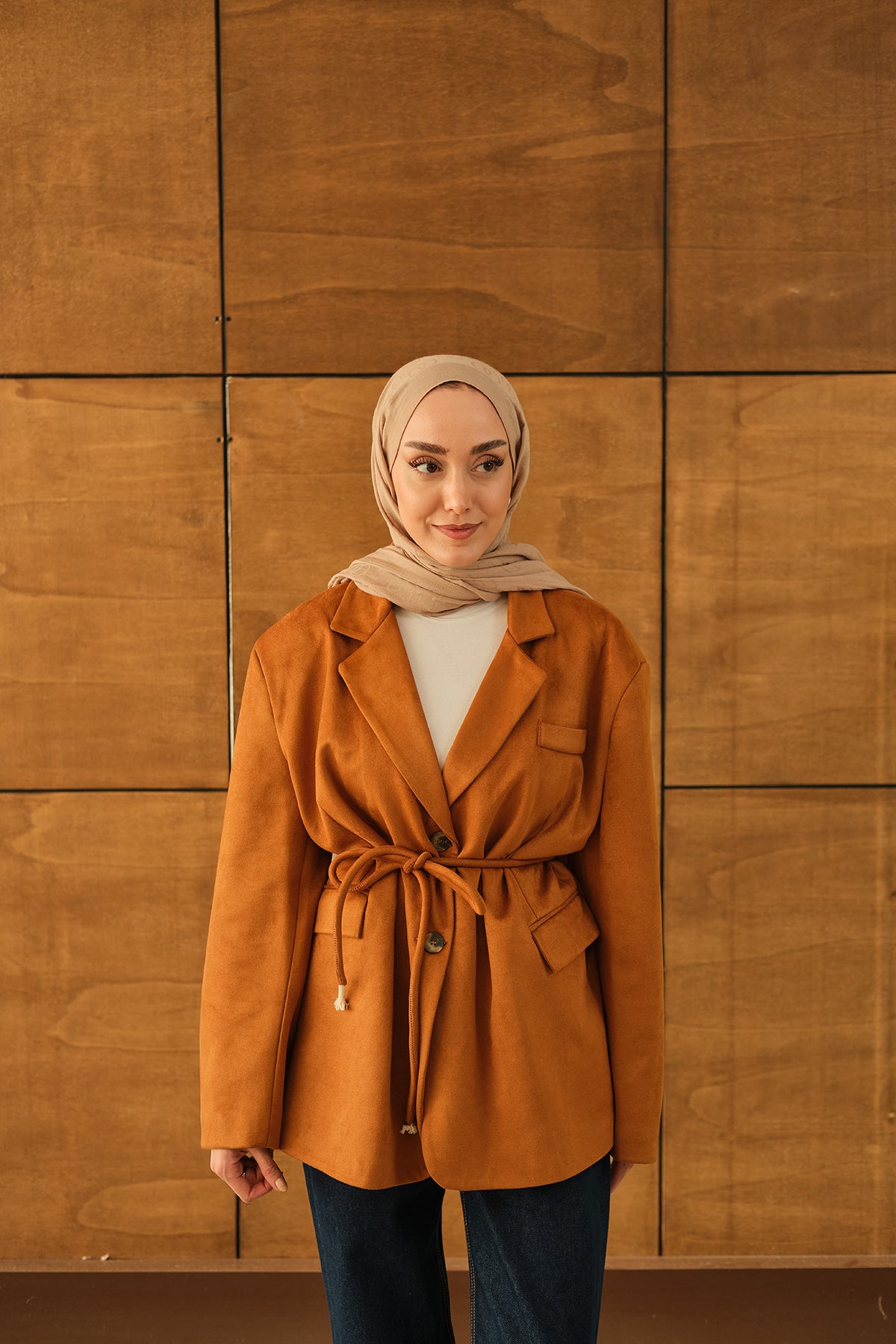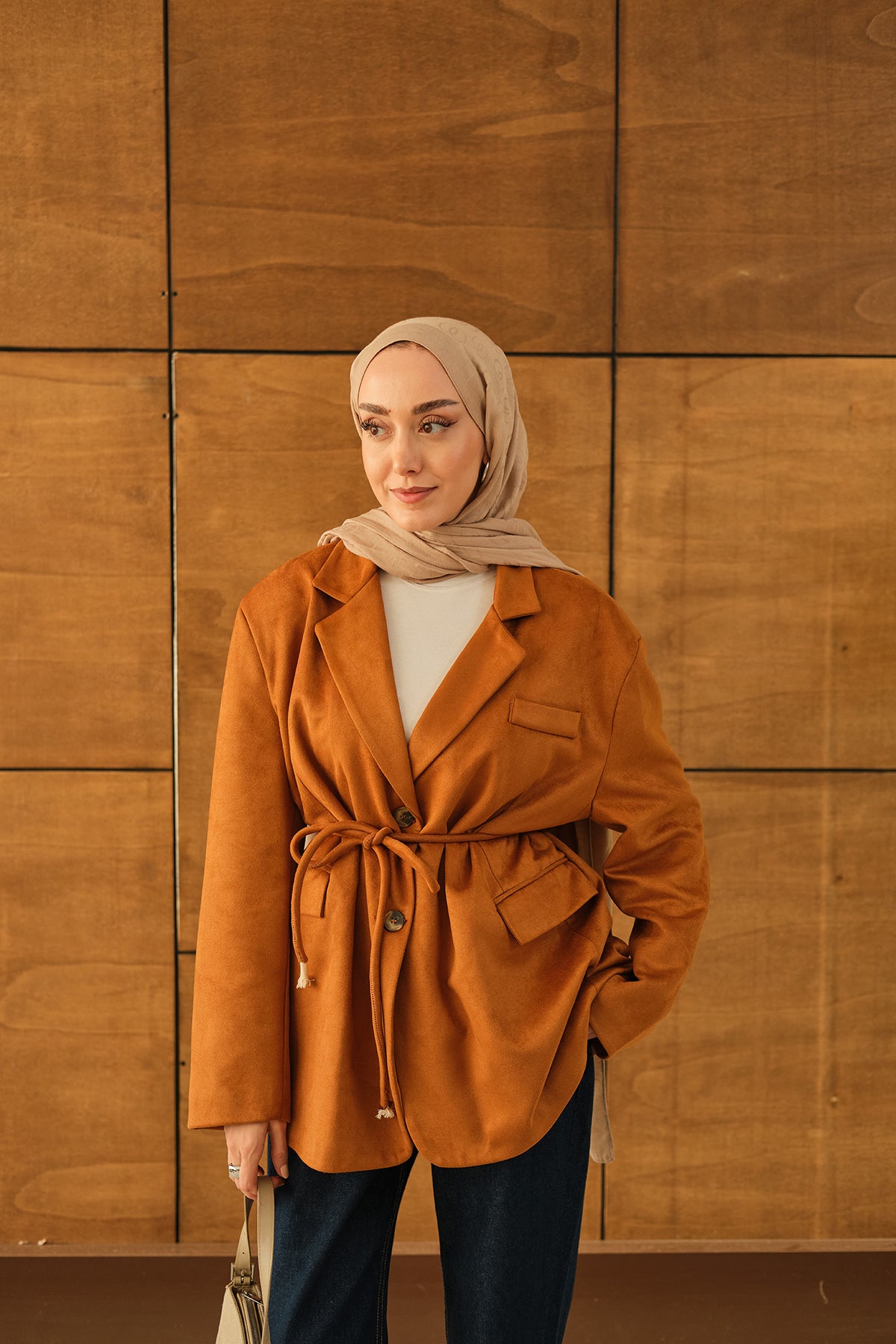 Bel Bağlamalı Blazer Süet Ceket Taba