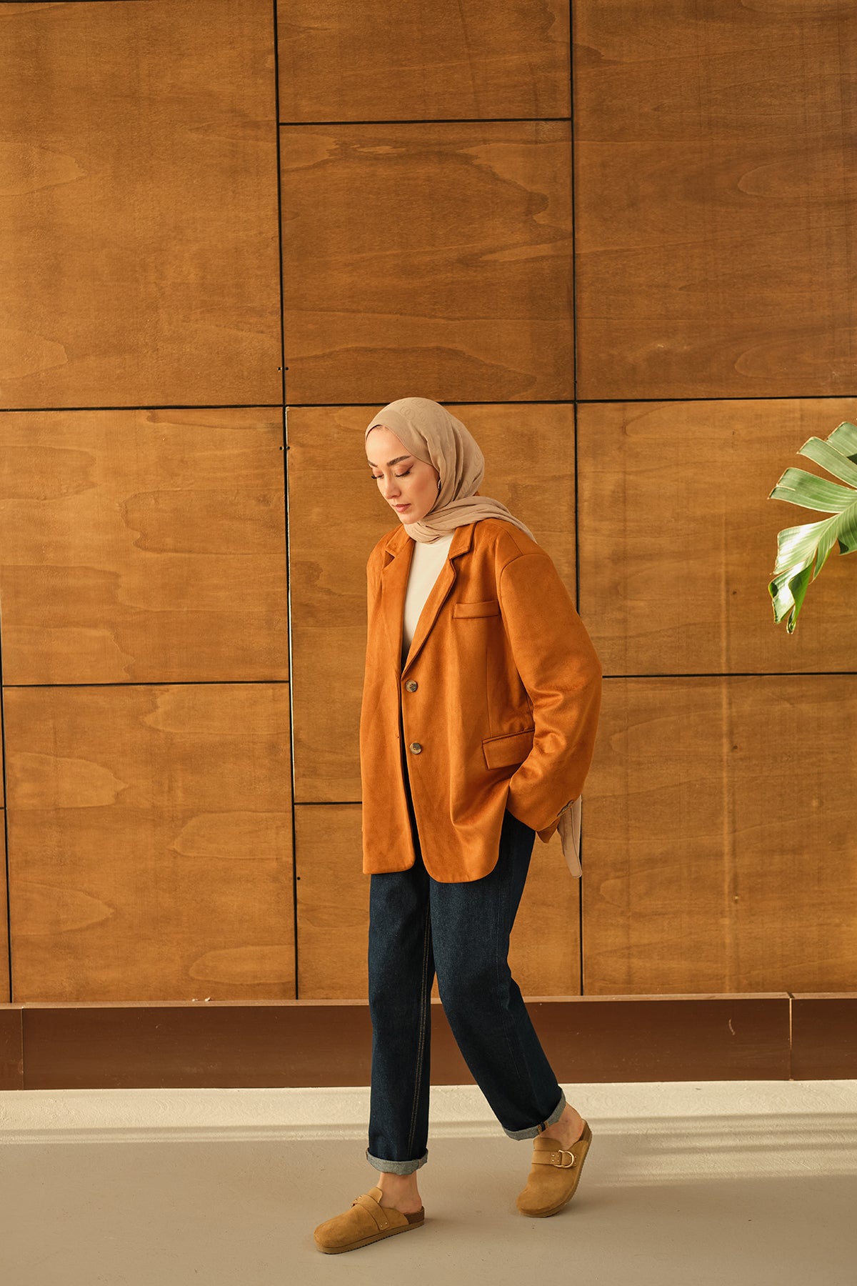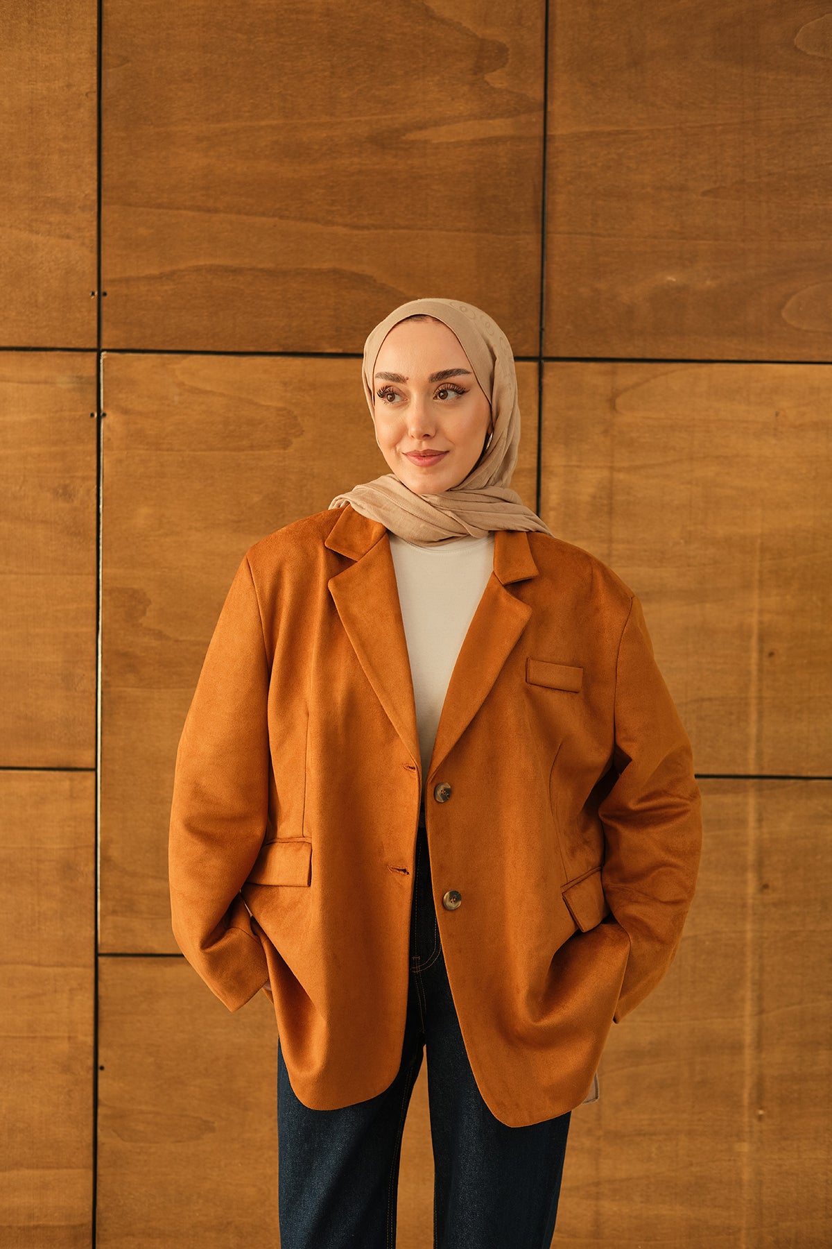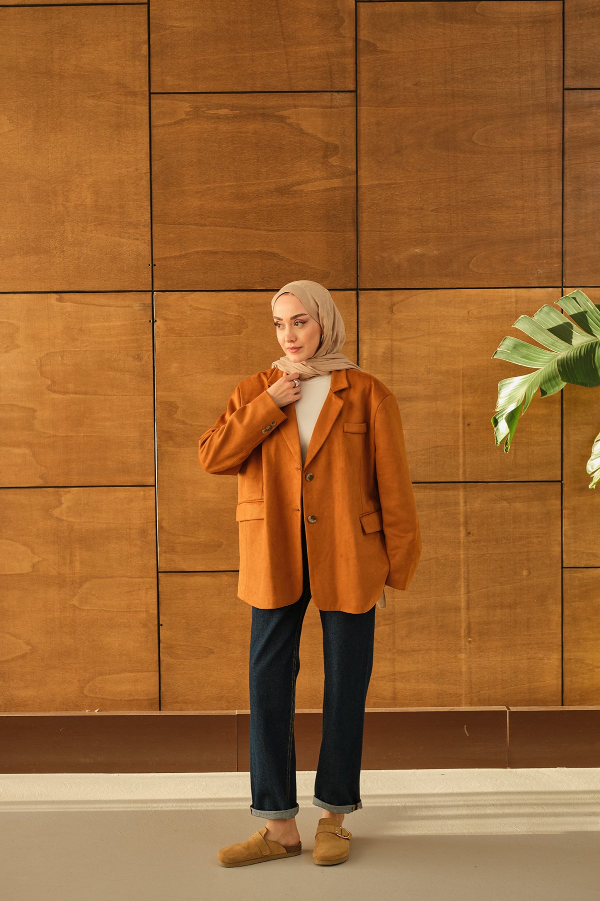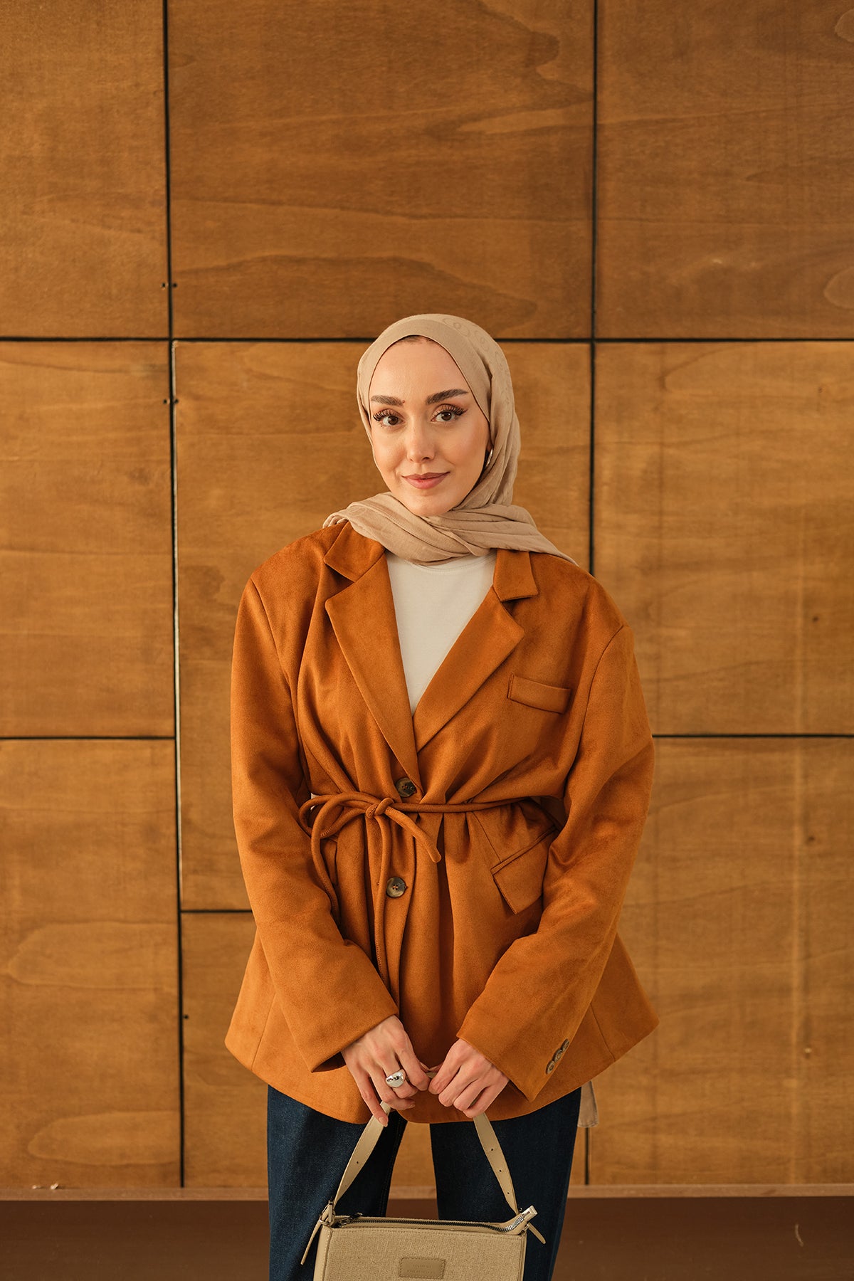 Bel Bağlamalı Blazer Süet Ceket Taba