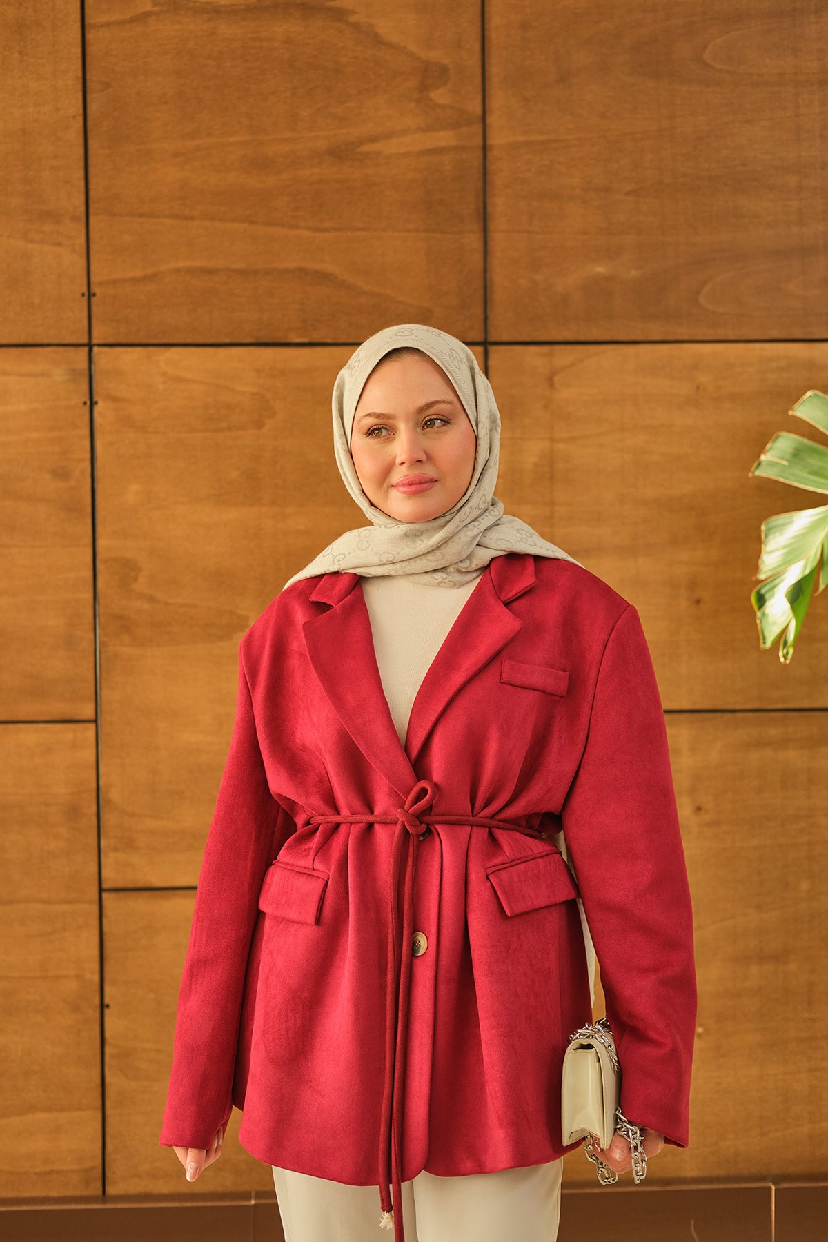 Bel Bağlamalı Blazer Süet Ceket Bordo