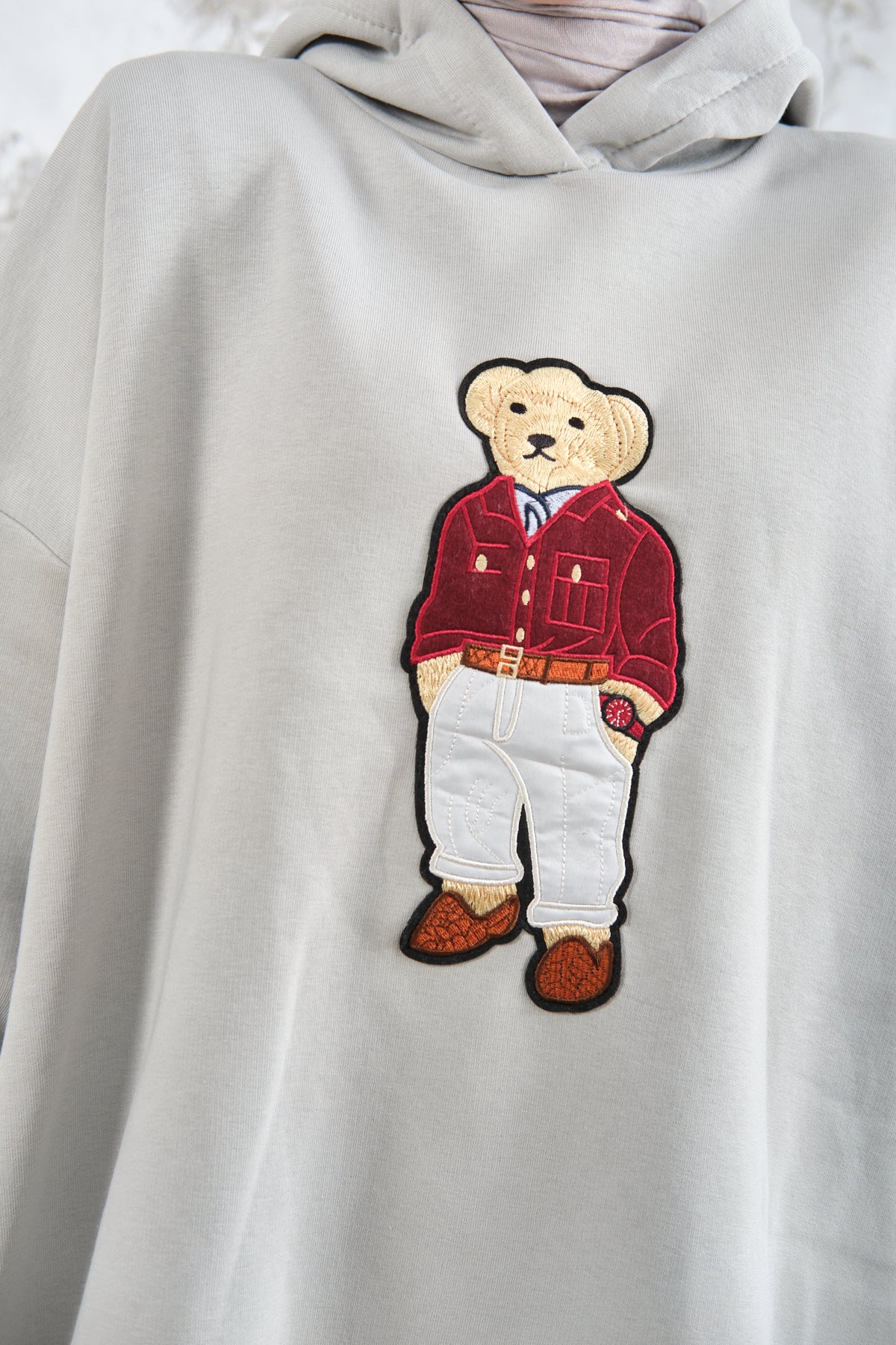Bear-Embroidered Sweatshirt - Aqua Green