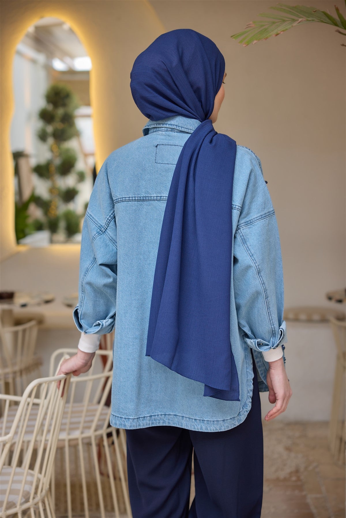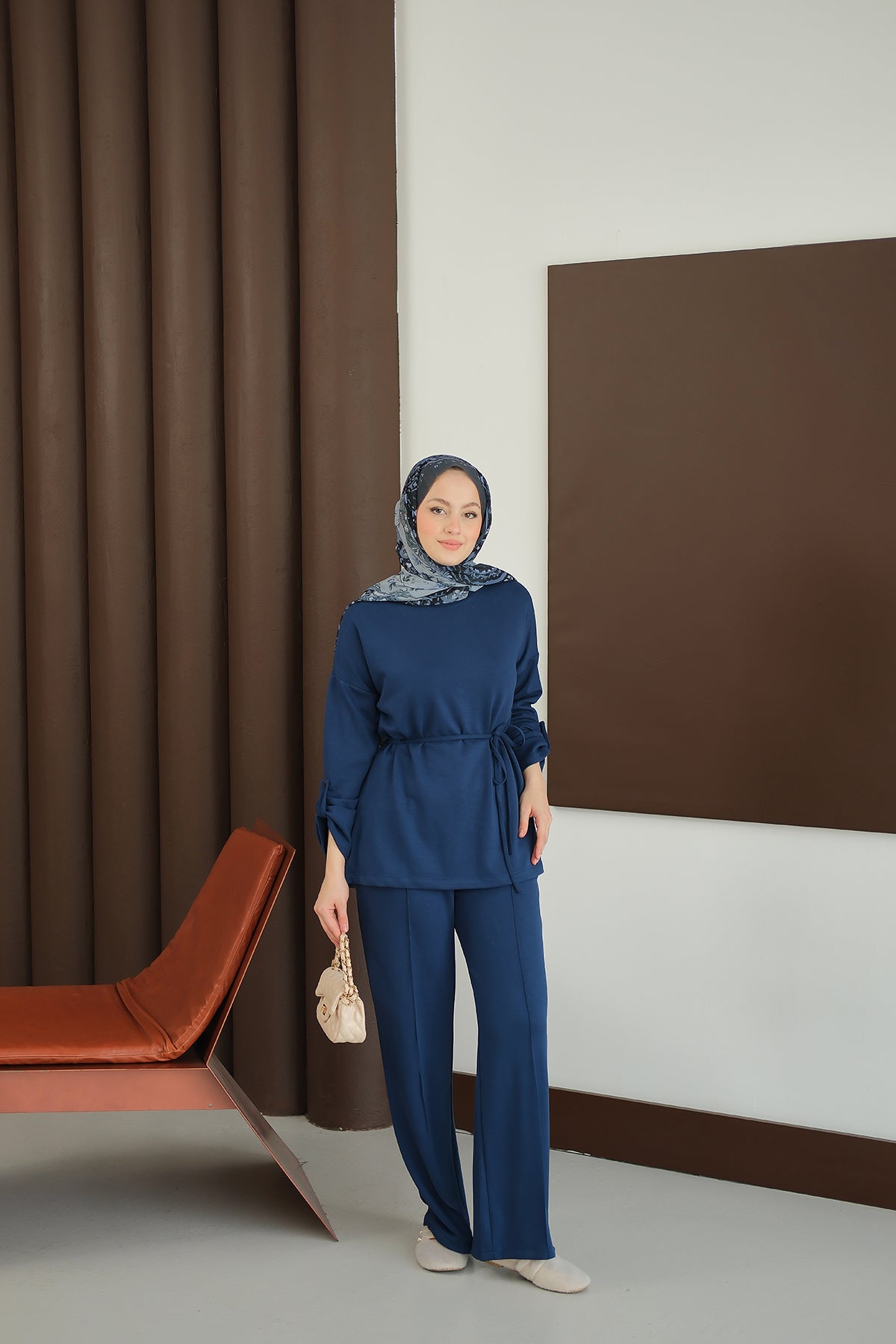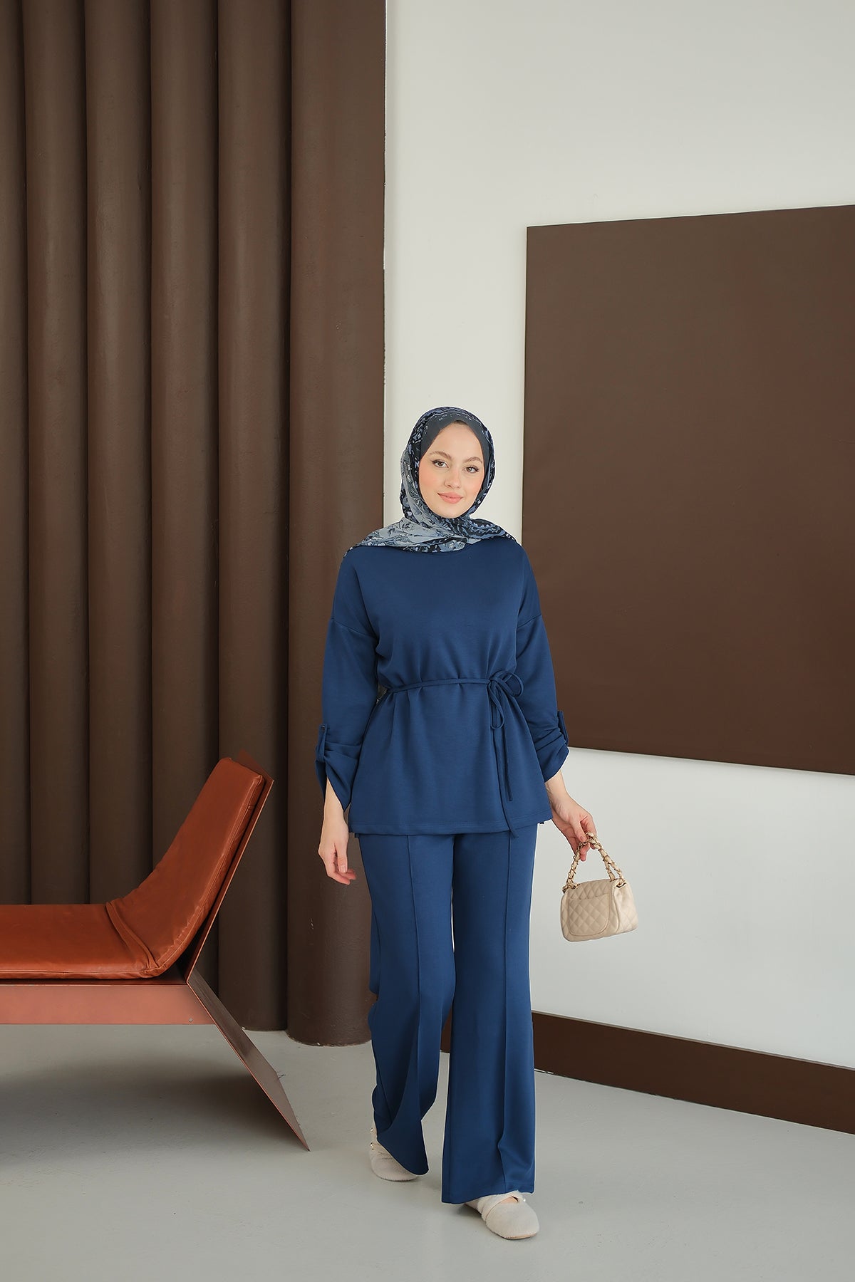 Bel Bağlamalı İkili Takım Saks Mavi