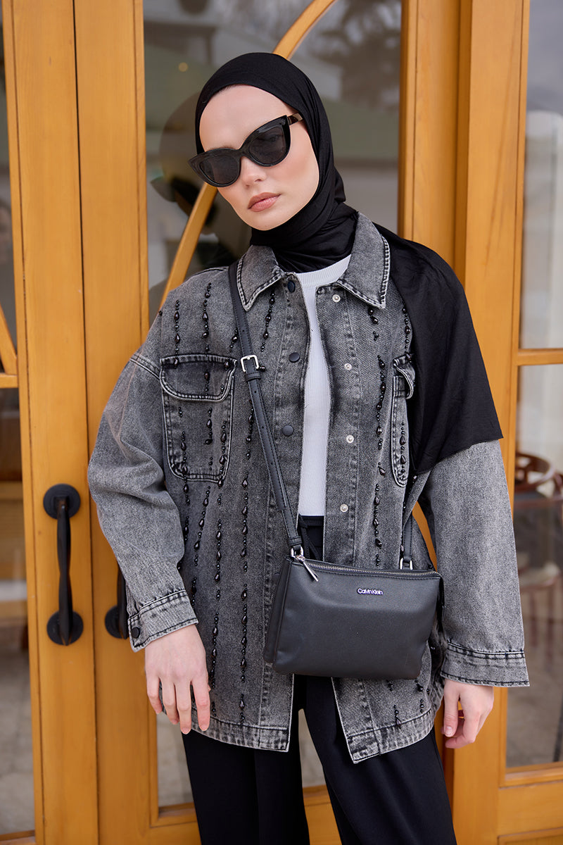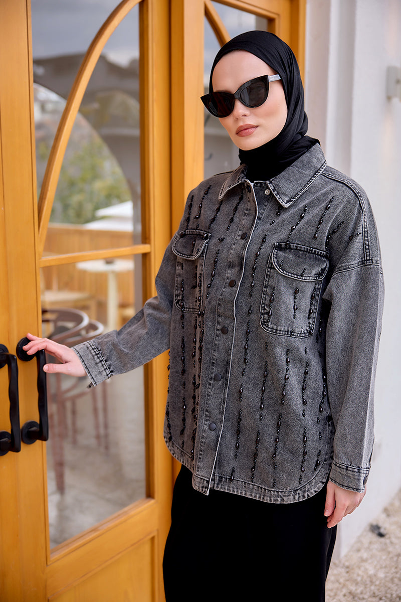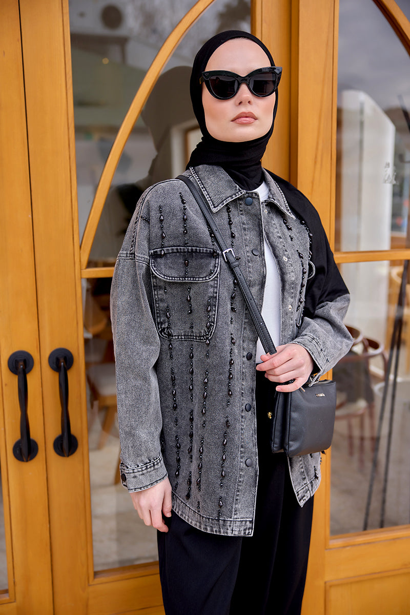 Bead Embroidered Jean Jacket Anthracite