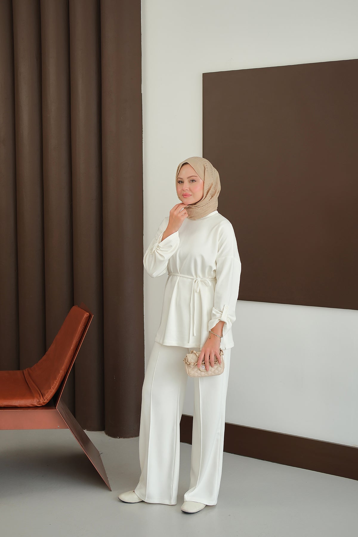 Bel Bağlamalı İkili Takım Ekru