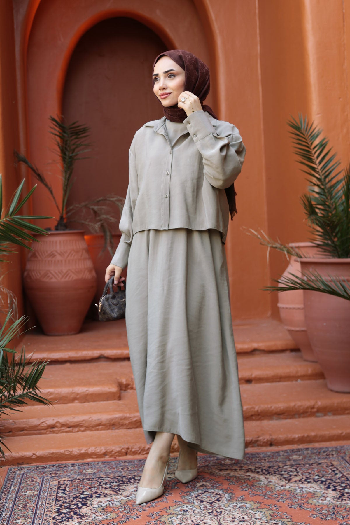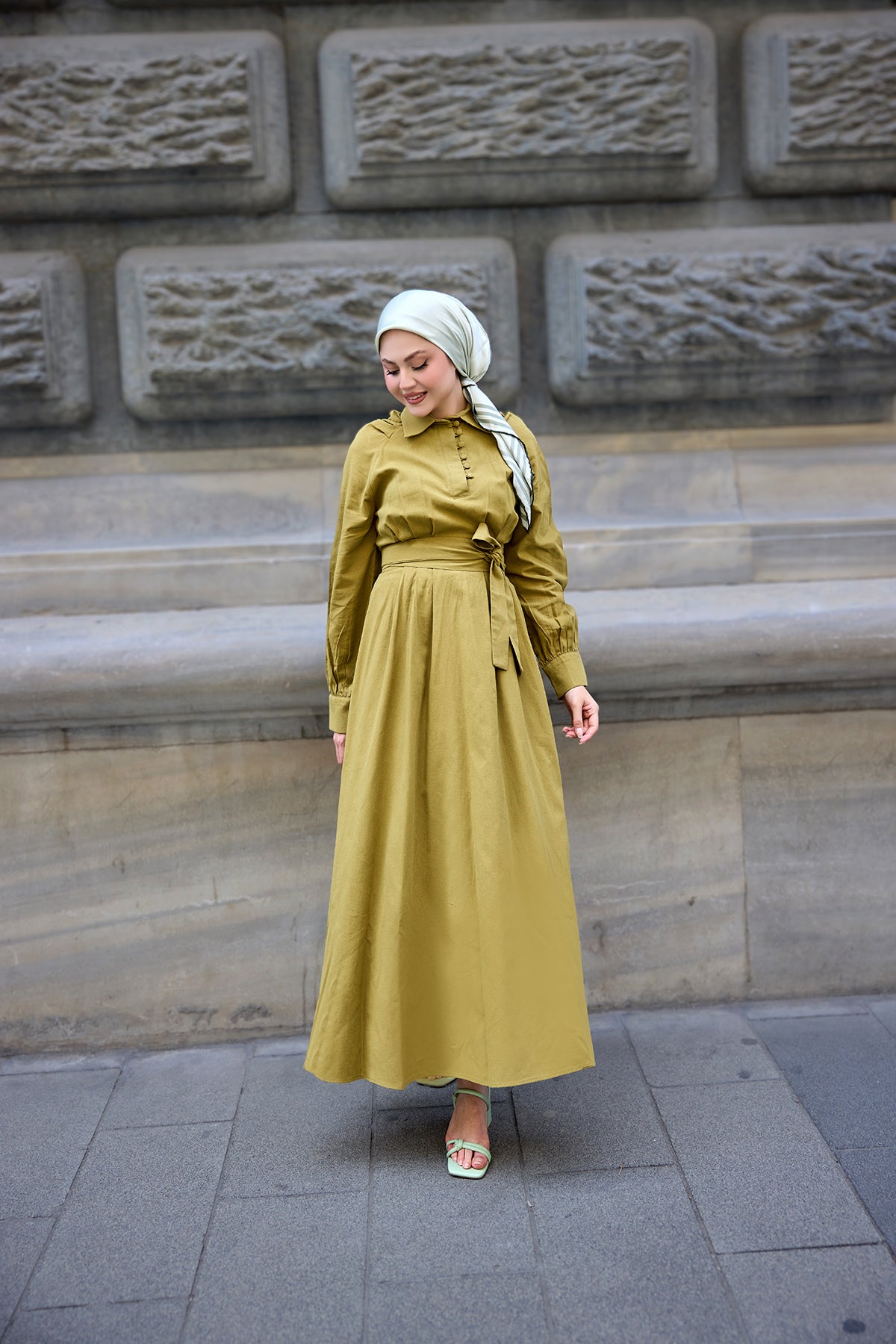 Shirted Tencel Dress Mold Green