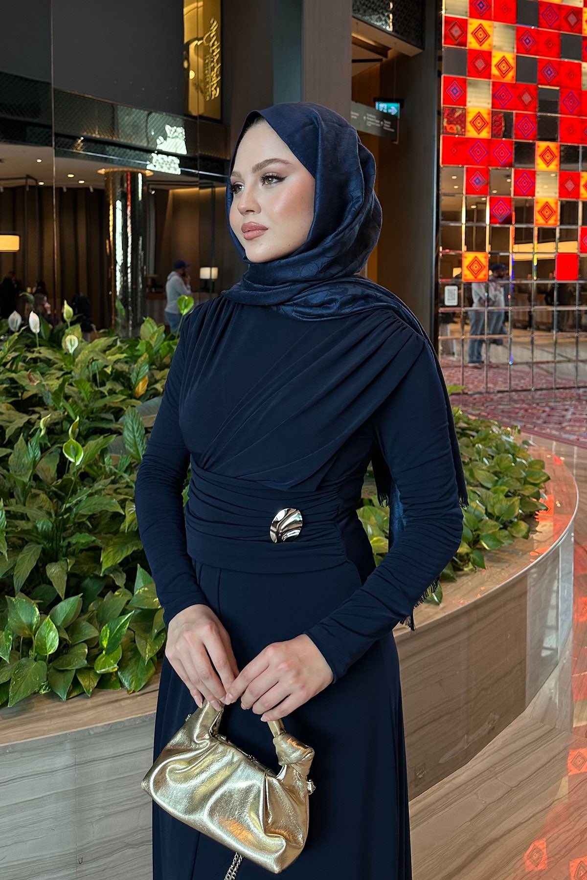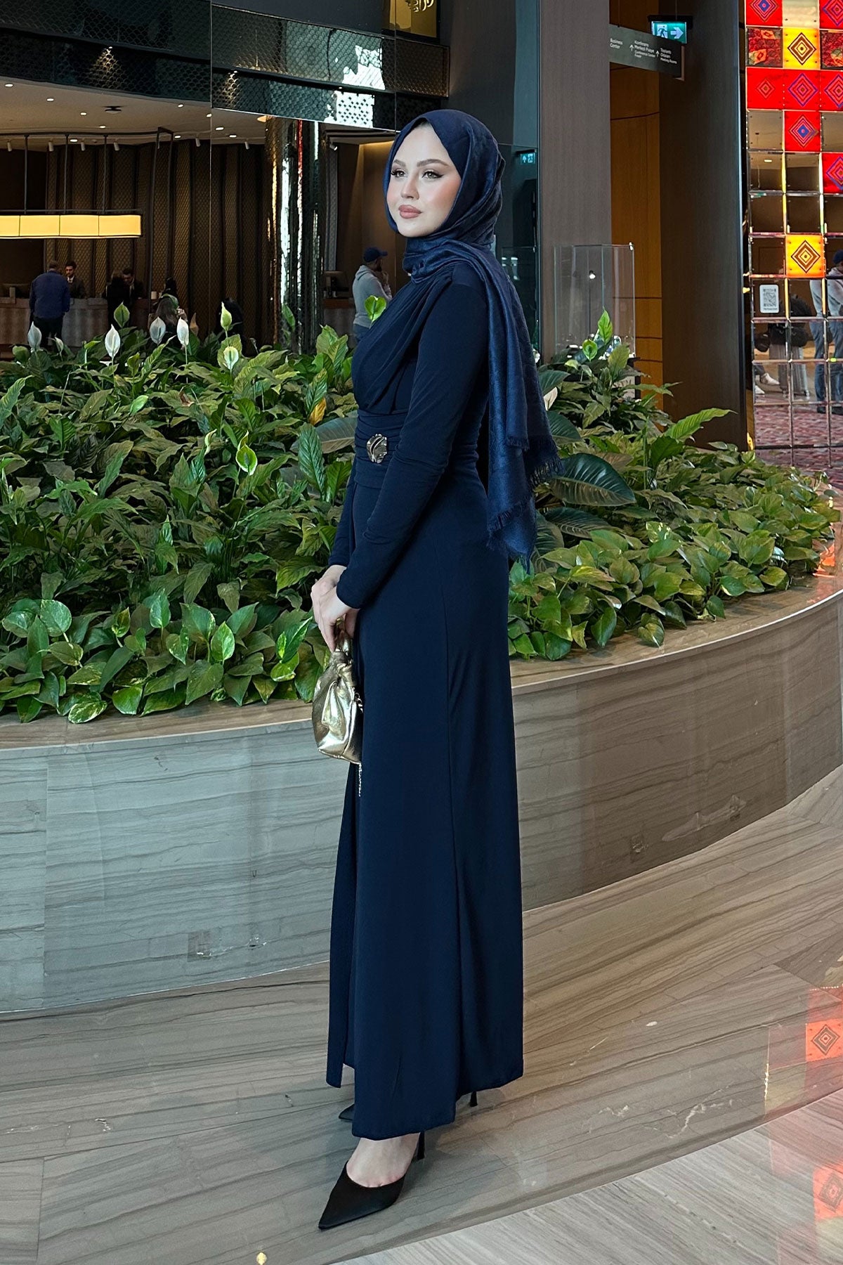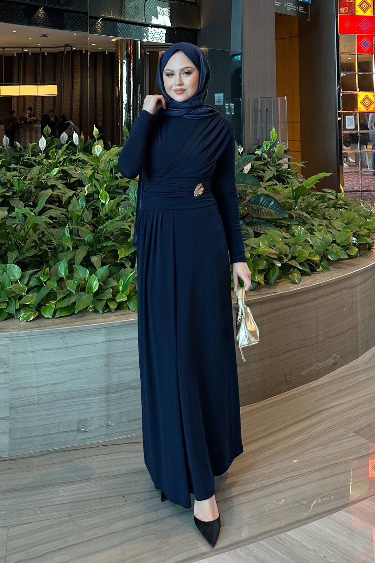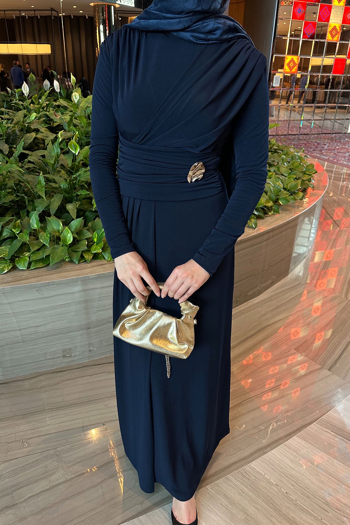 Rosey Bronzed Dress Navy Blue