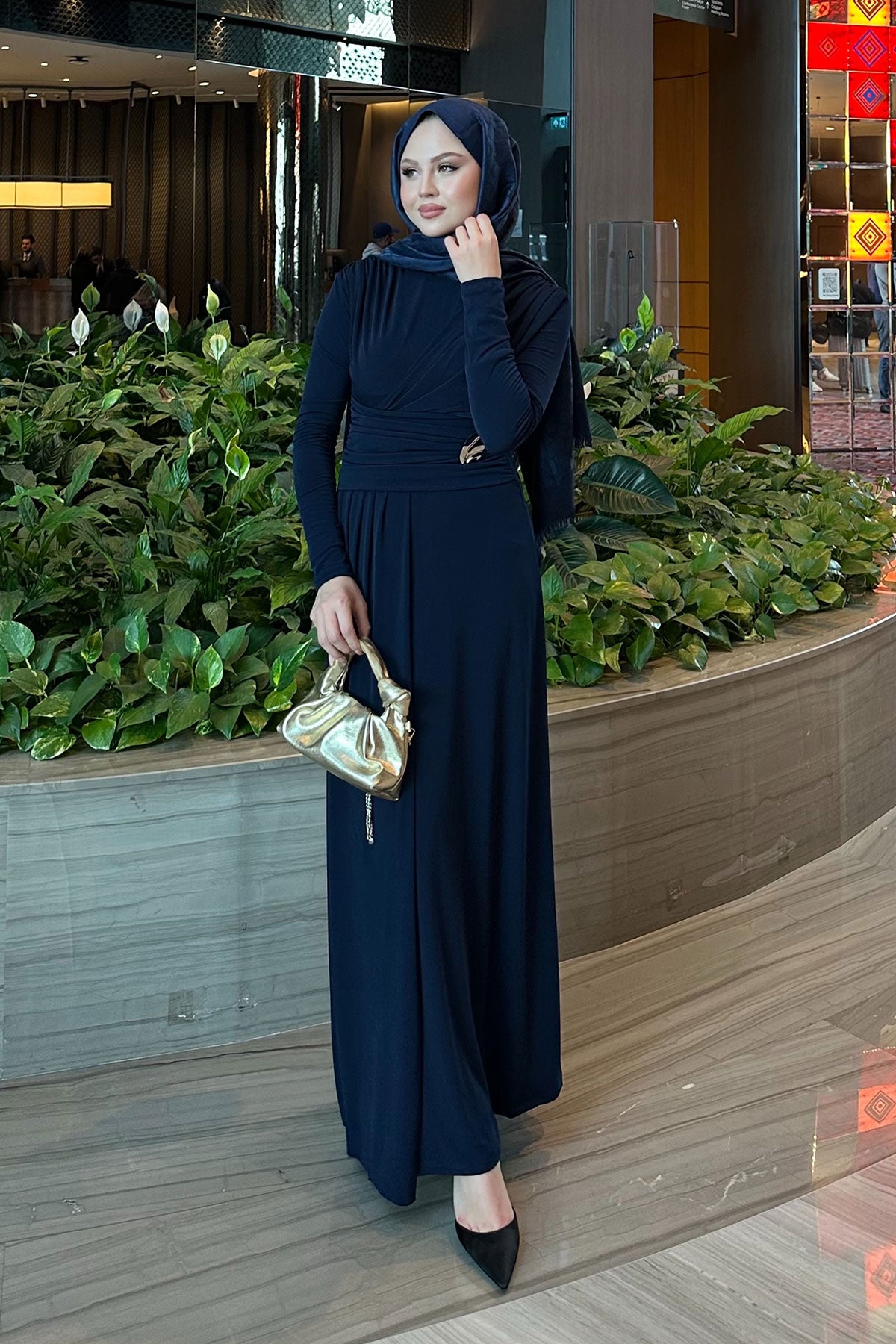 Draped Viscose Dress Navy Blue