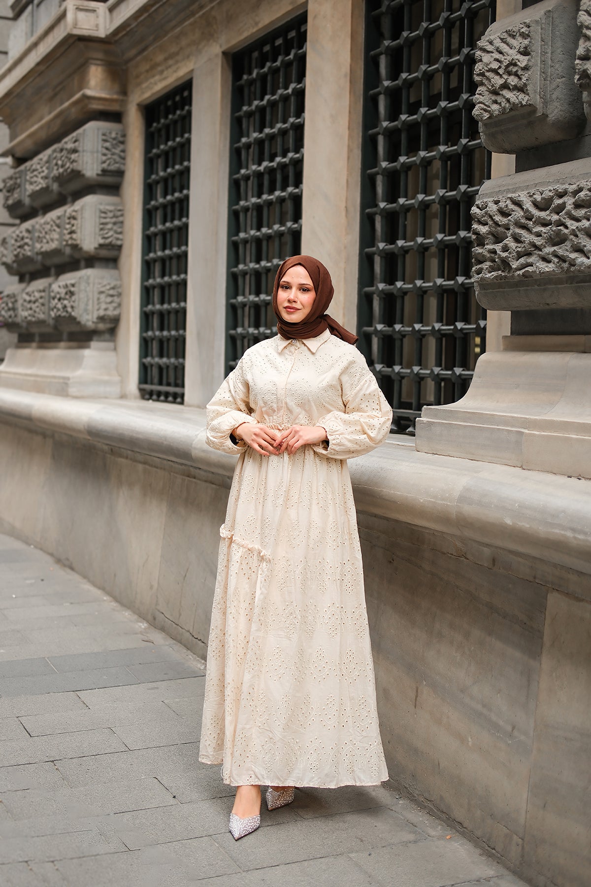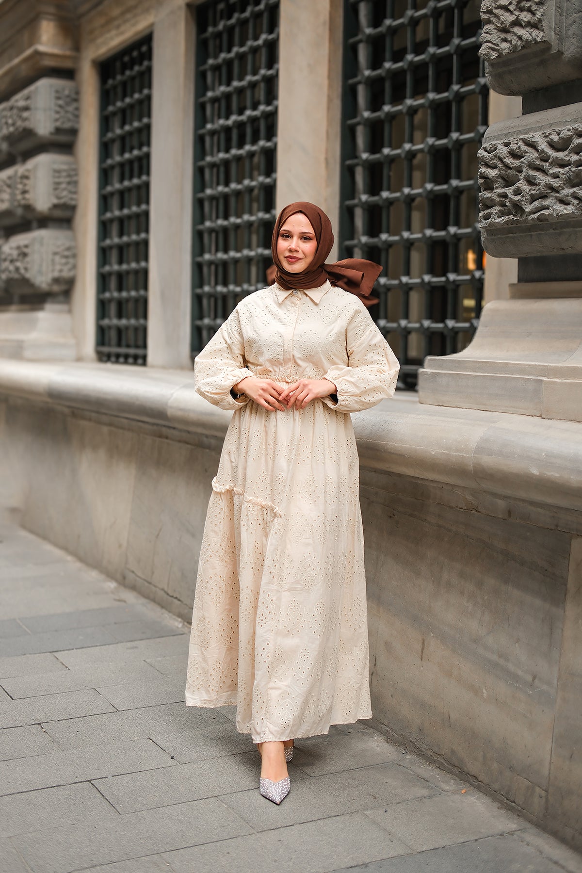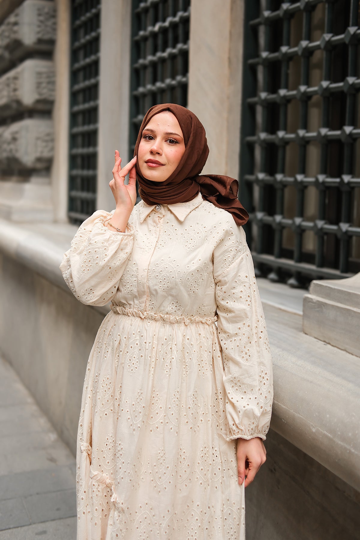 Elastic-Waist Broderie Dress - Cream