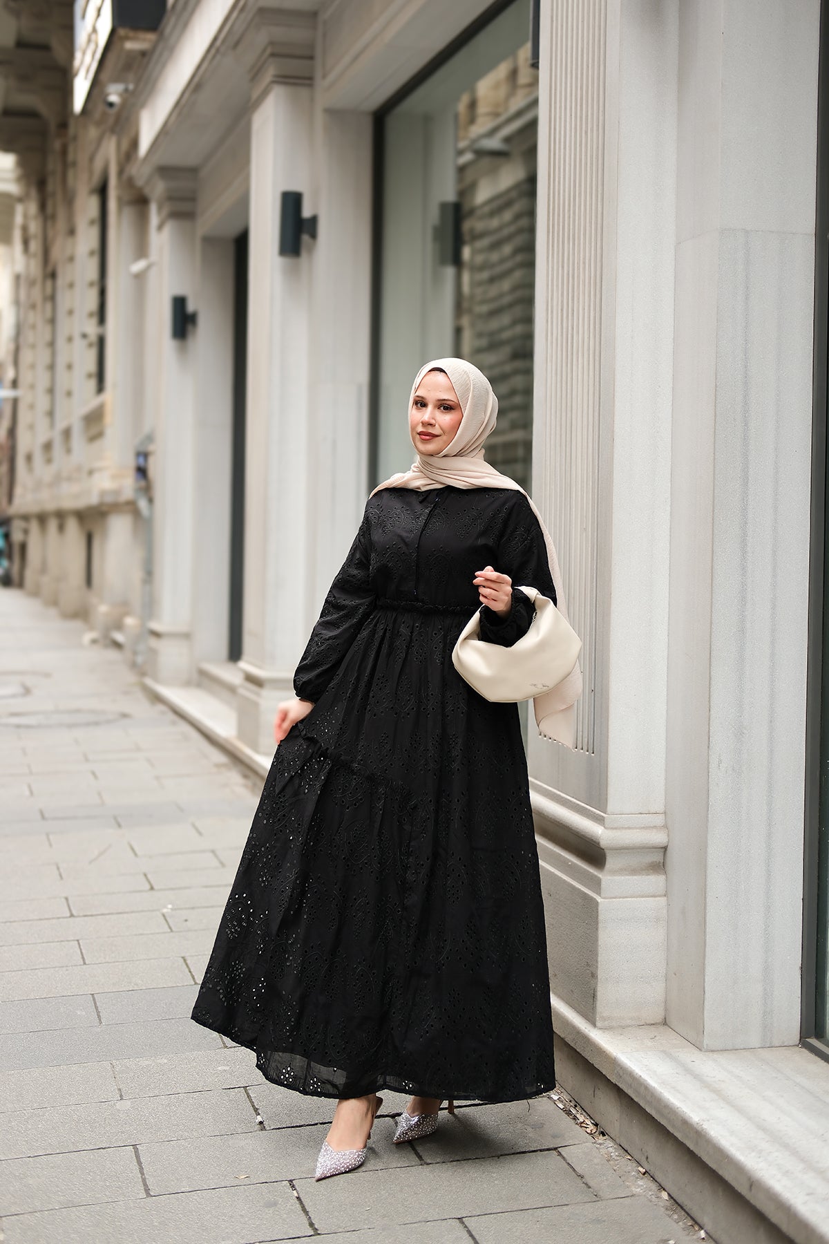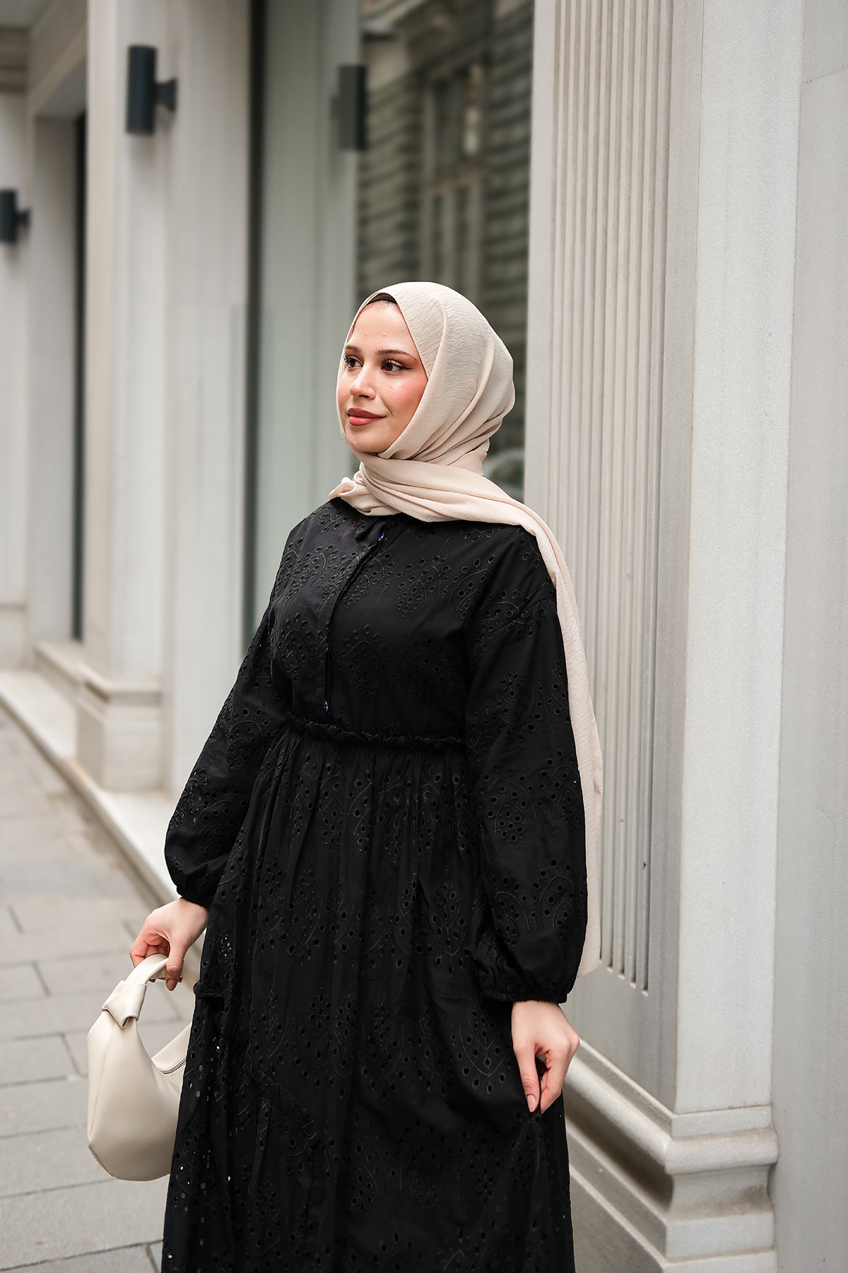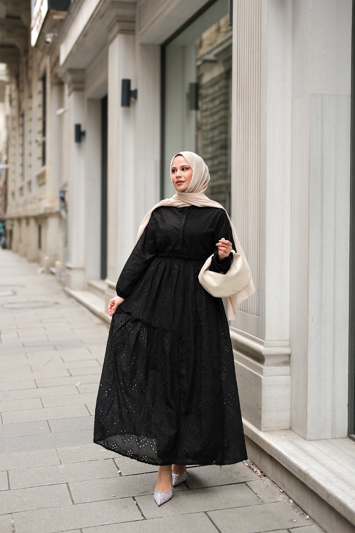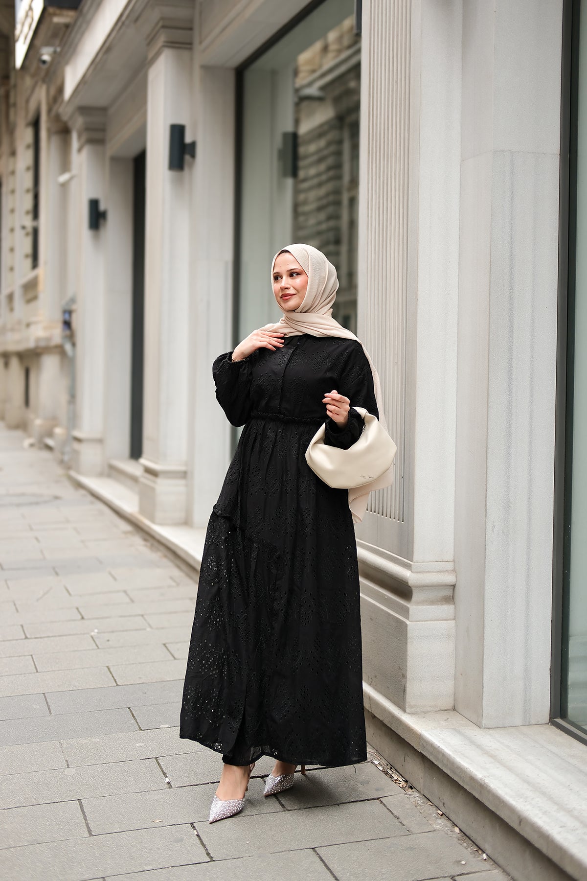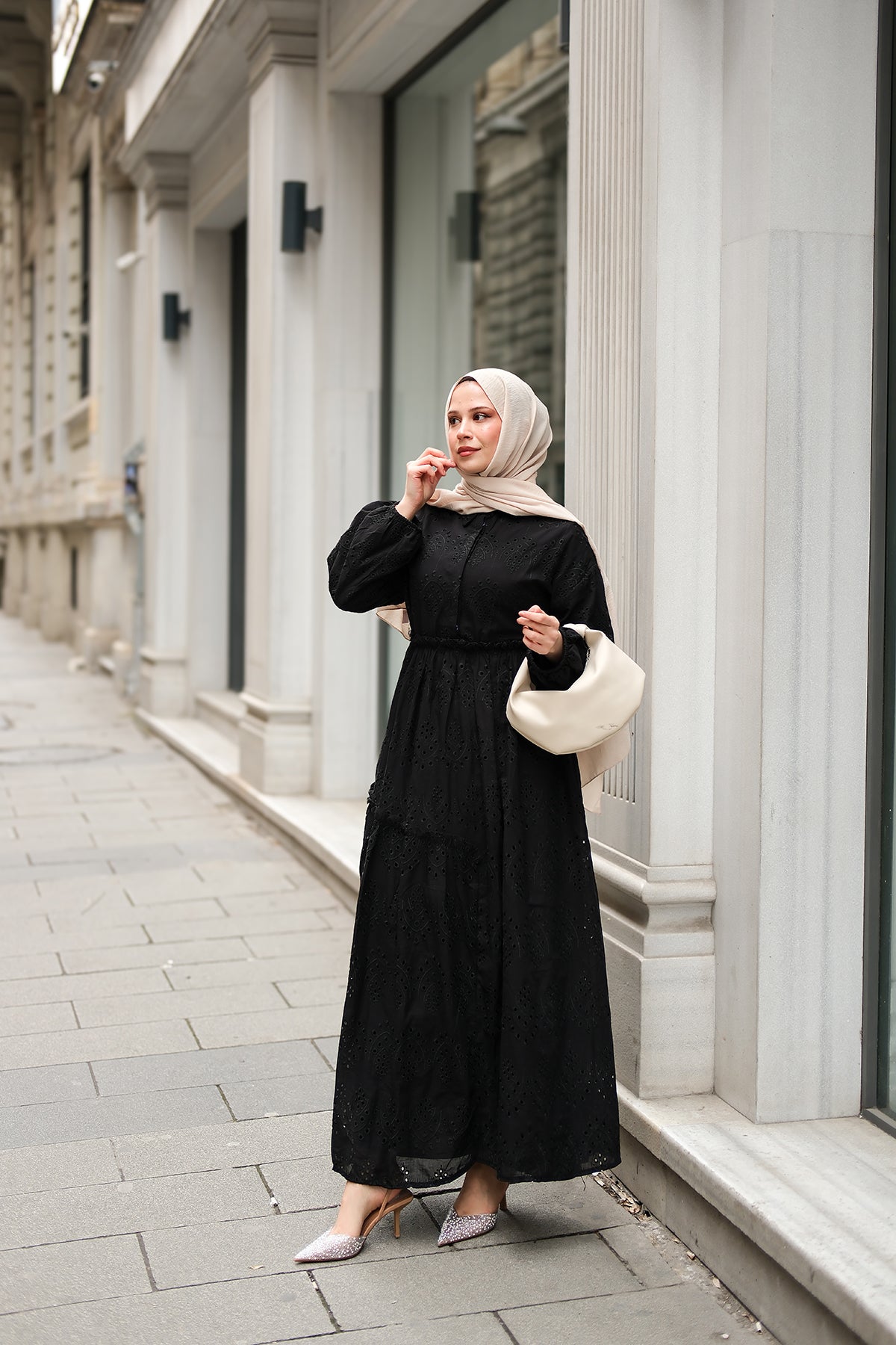 Elastic-Waist Broderie Dress - Black