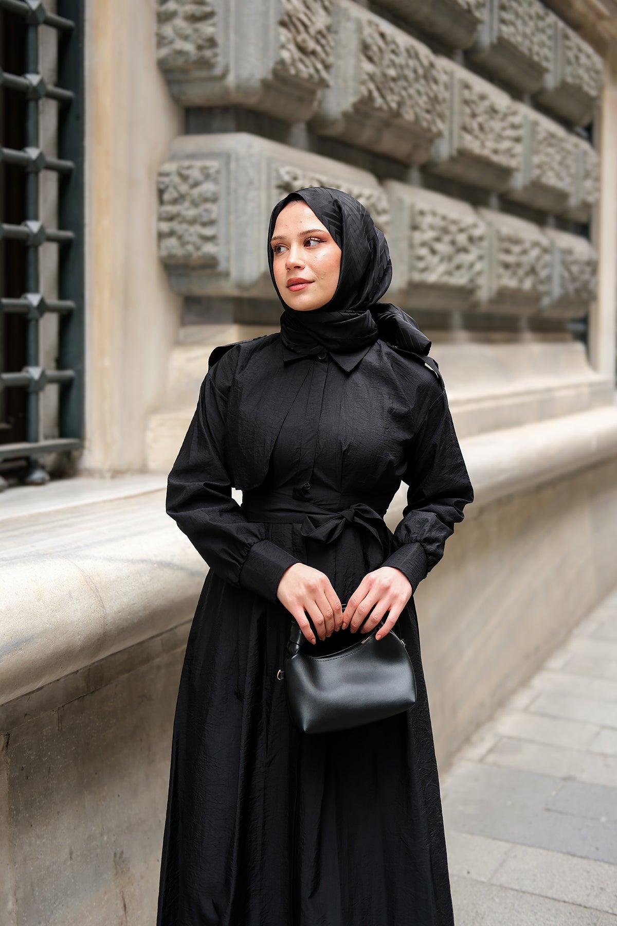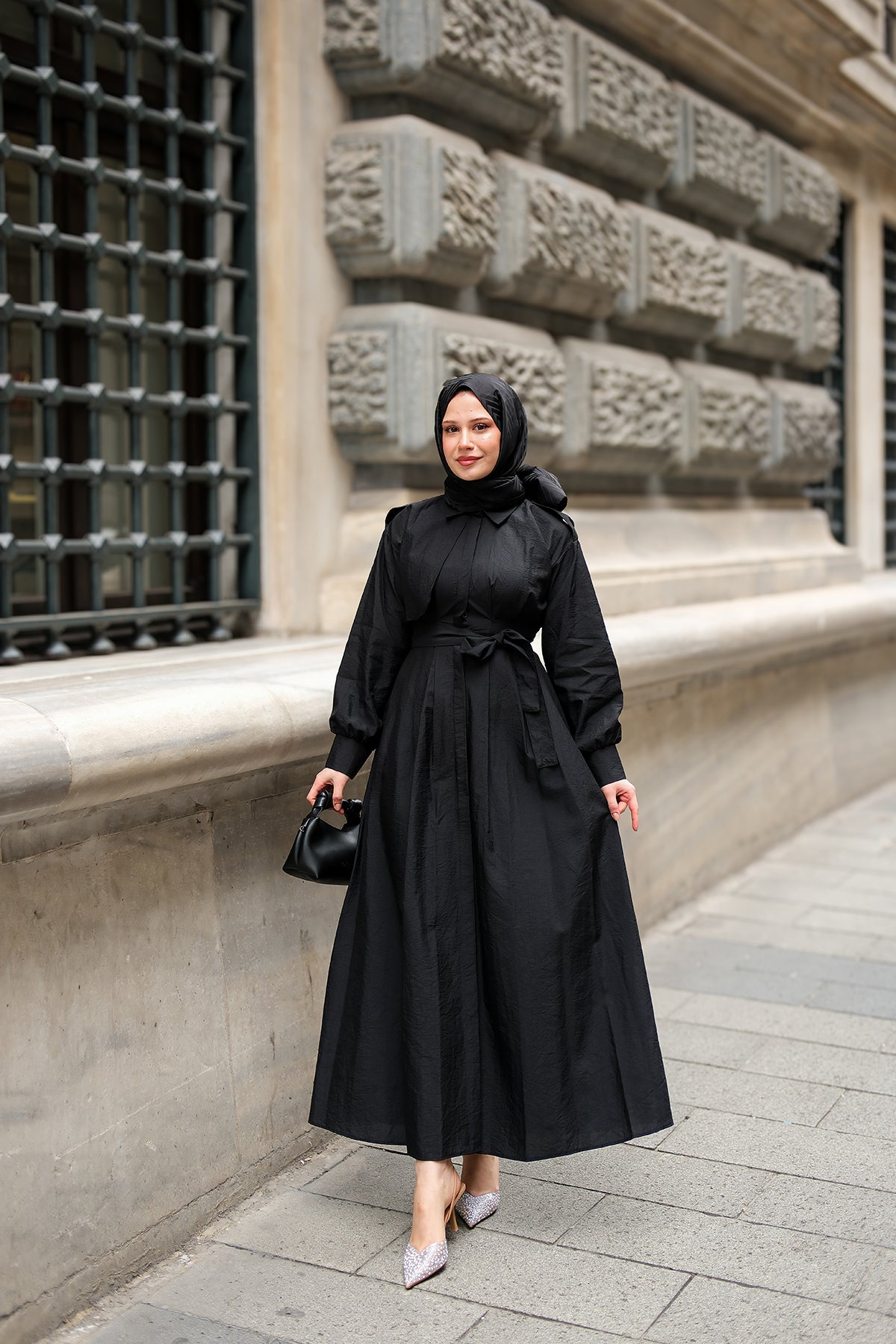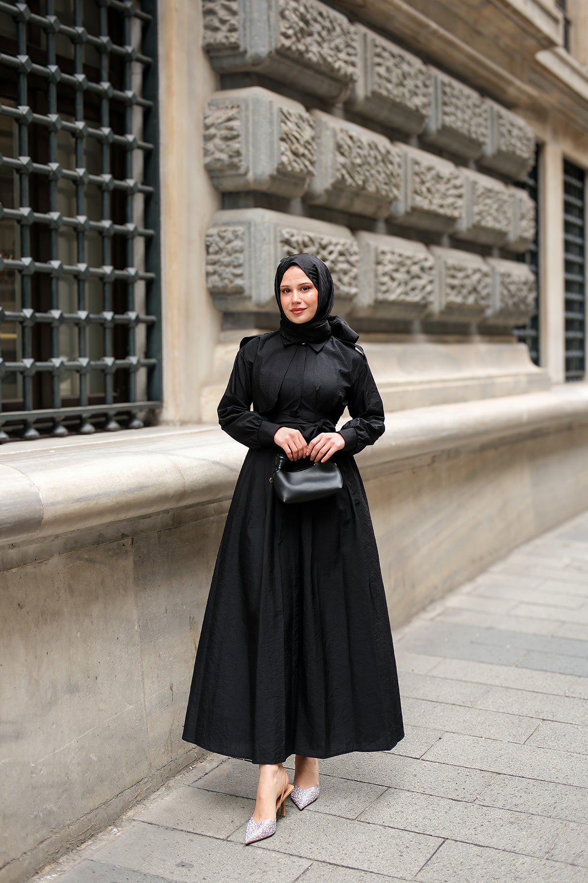 Concealed-Button Epaulette-Detail Dress - Black