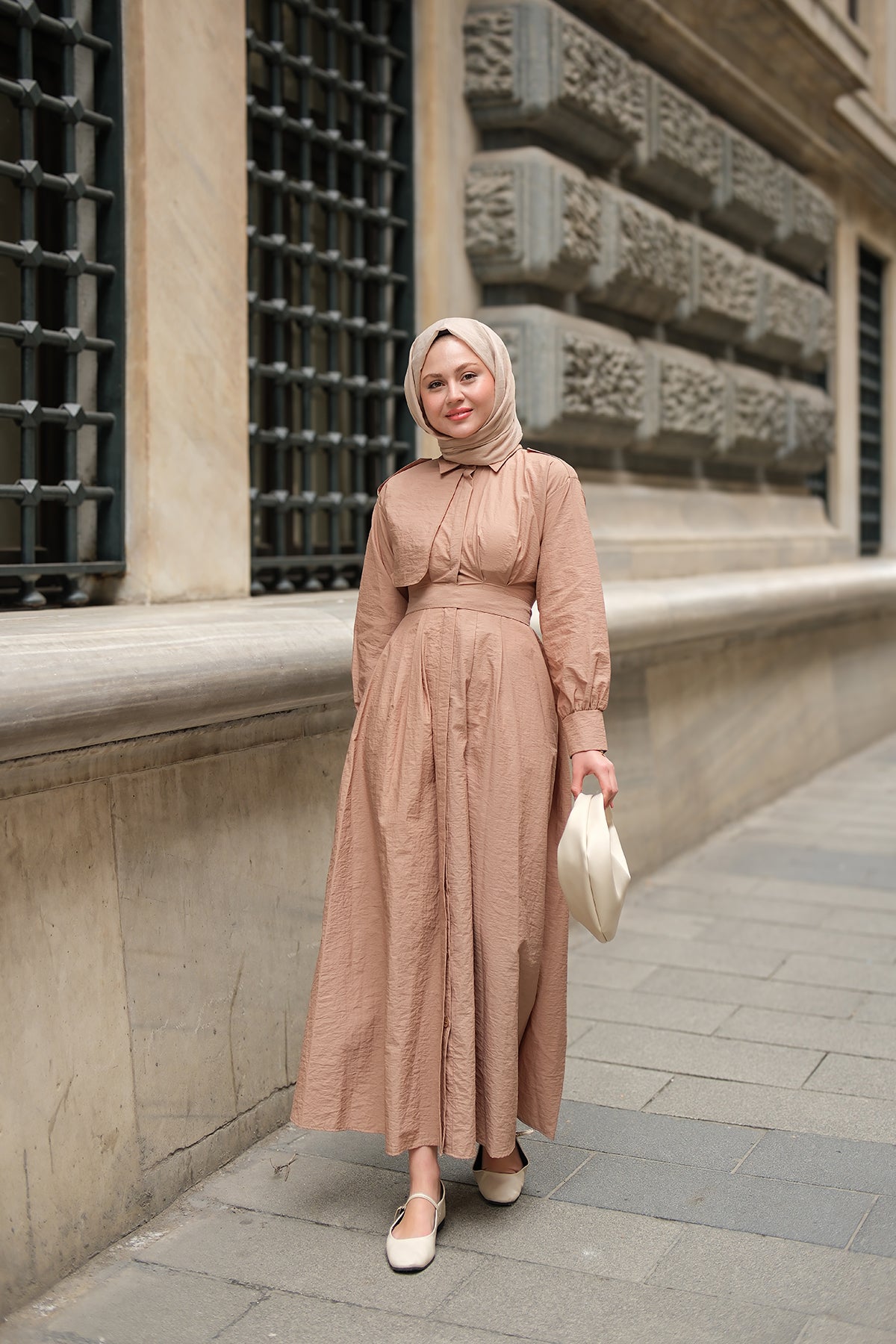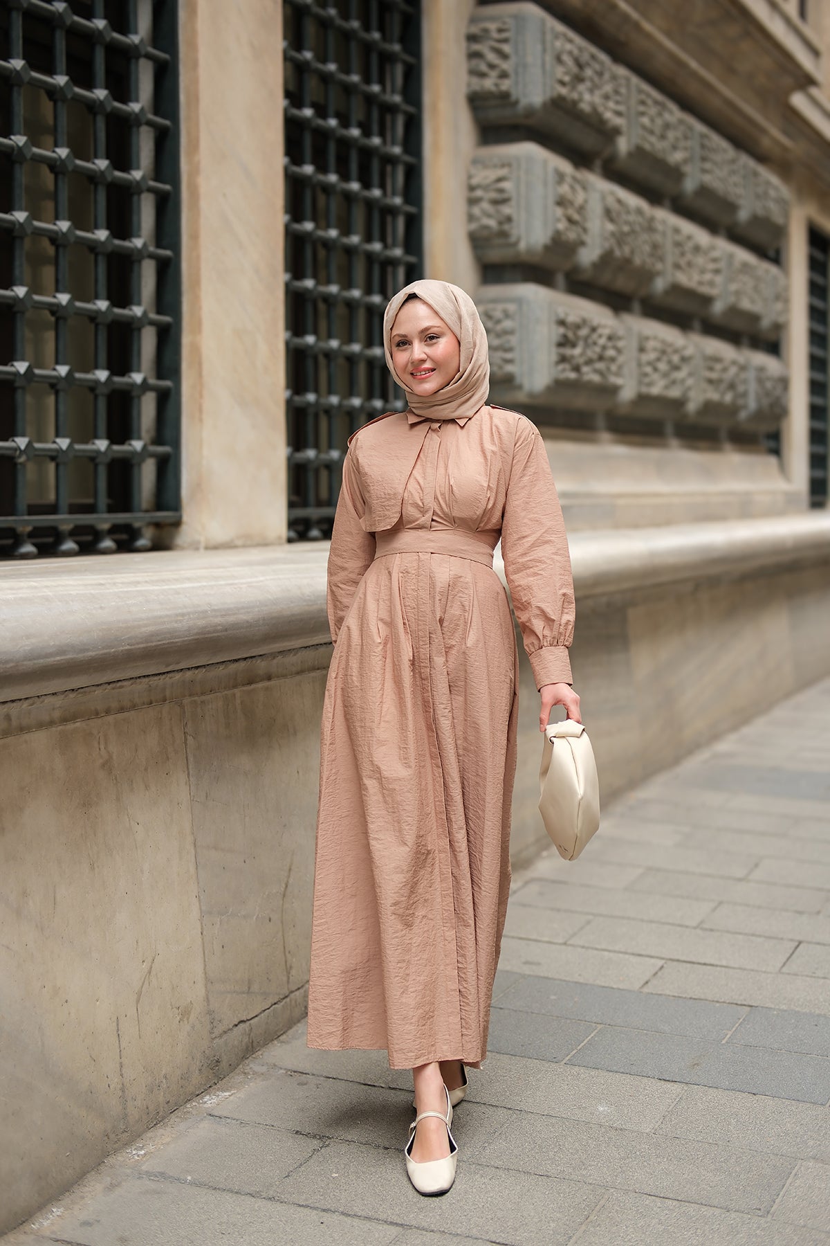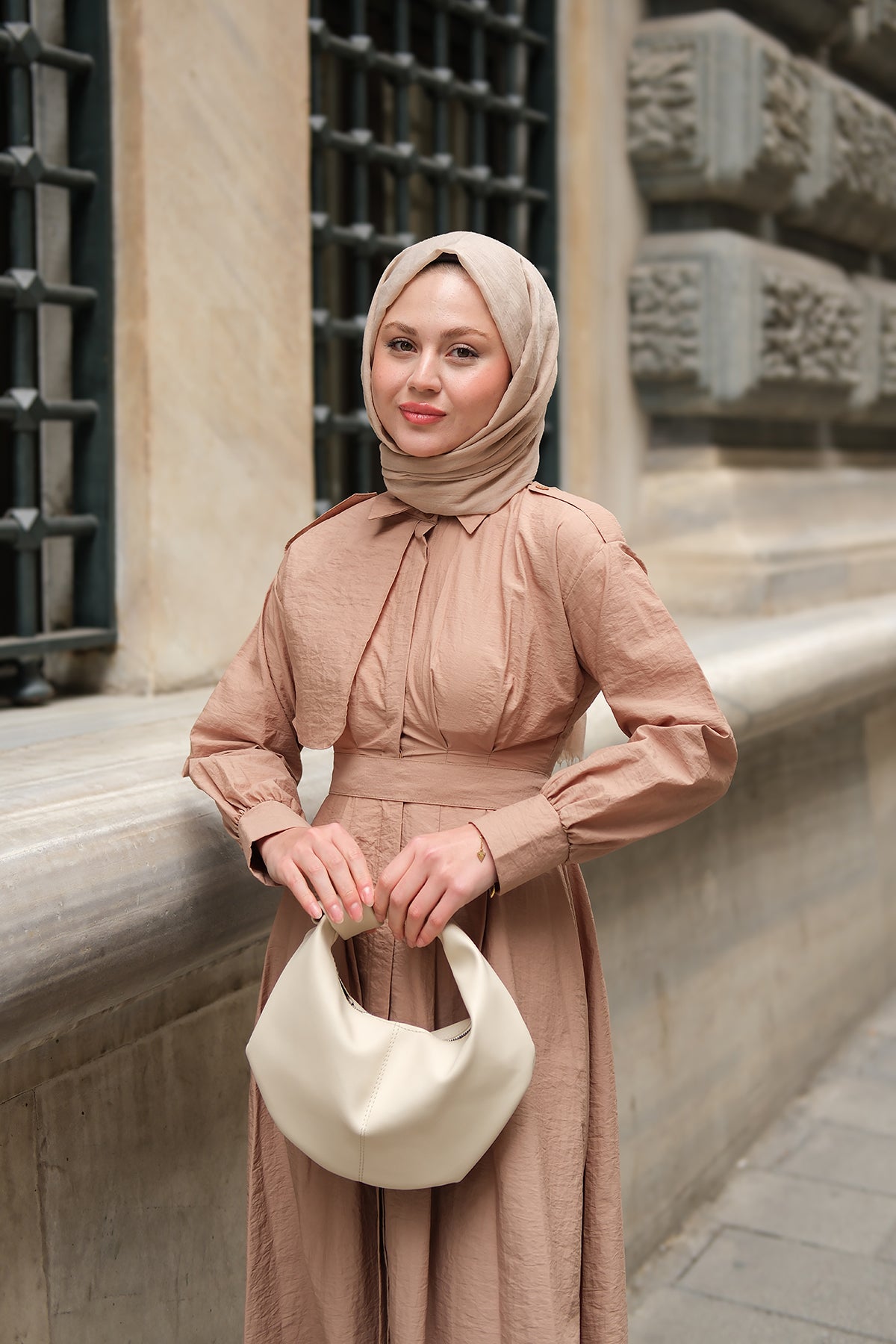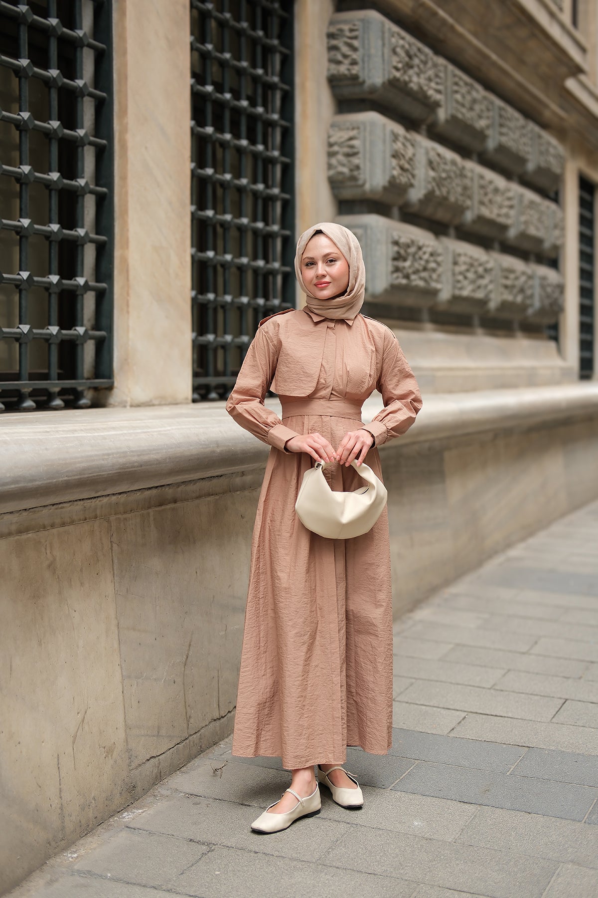 Concealed-Button Epaulette-Detail Dress - Taupe