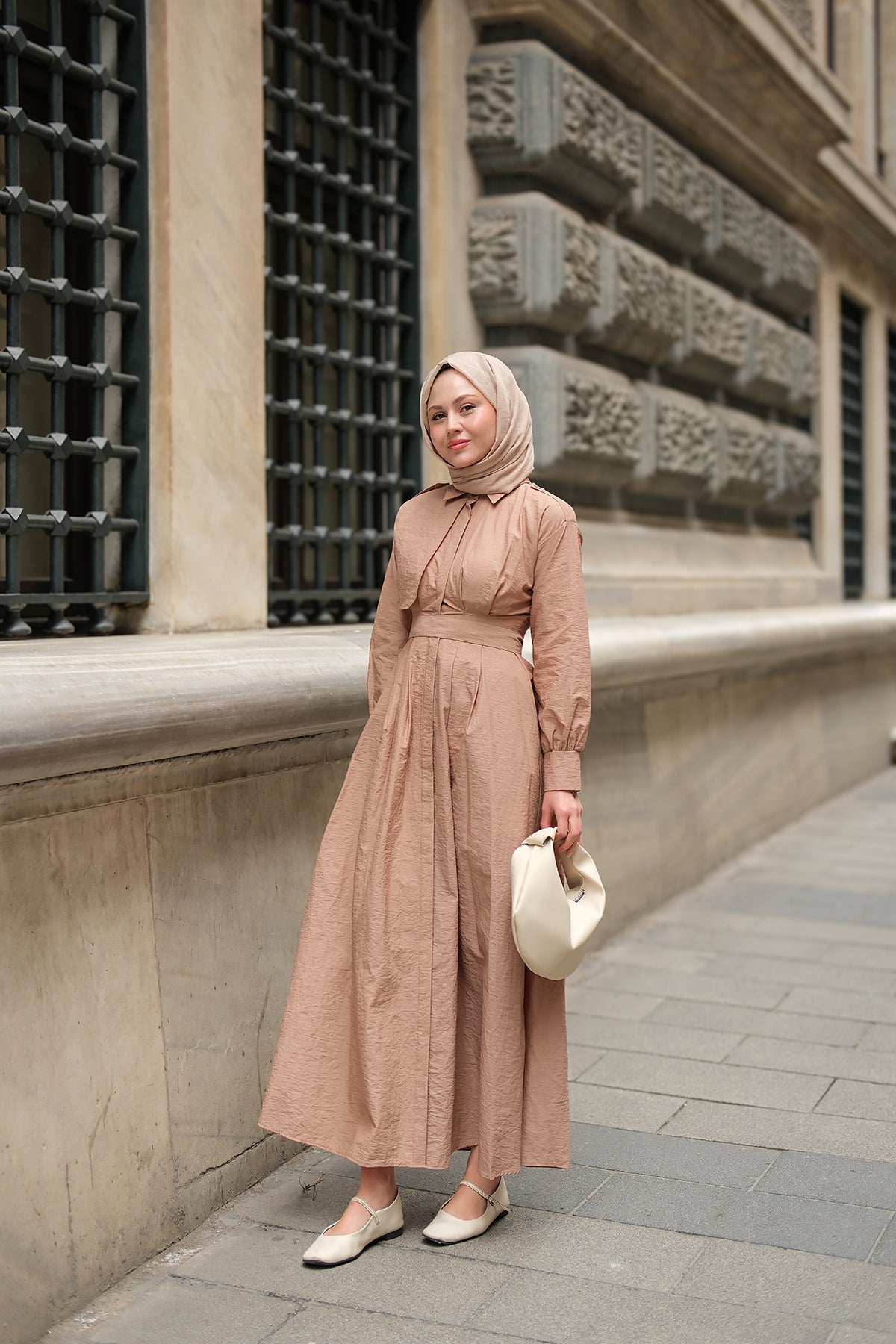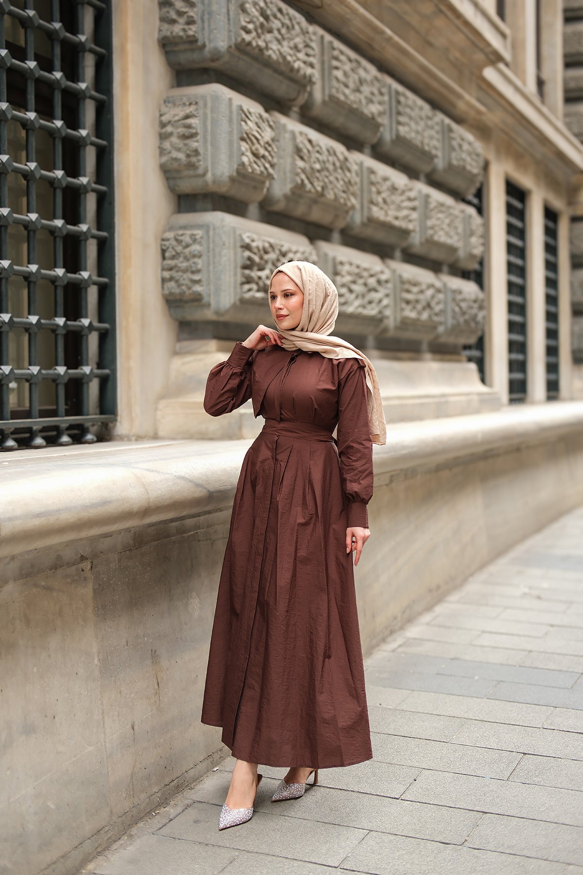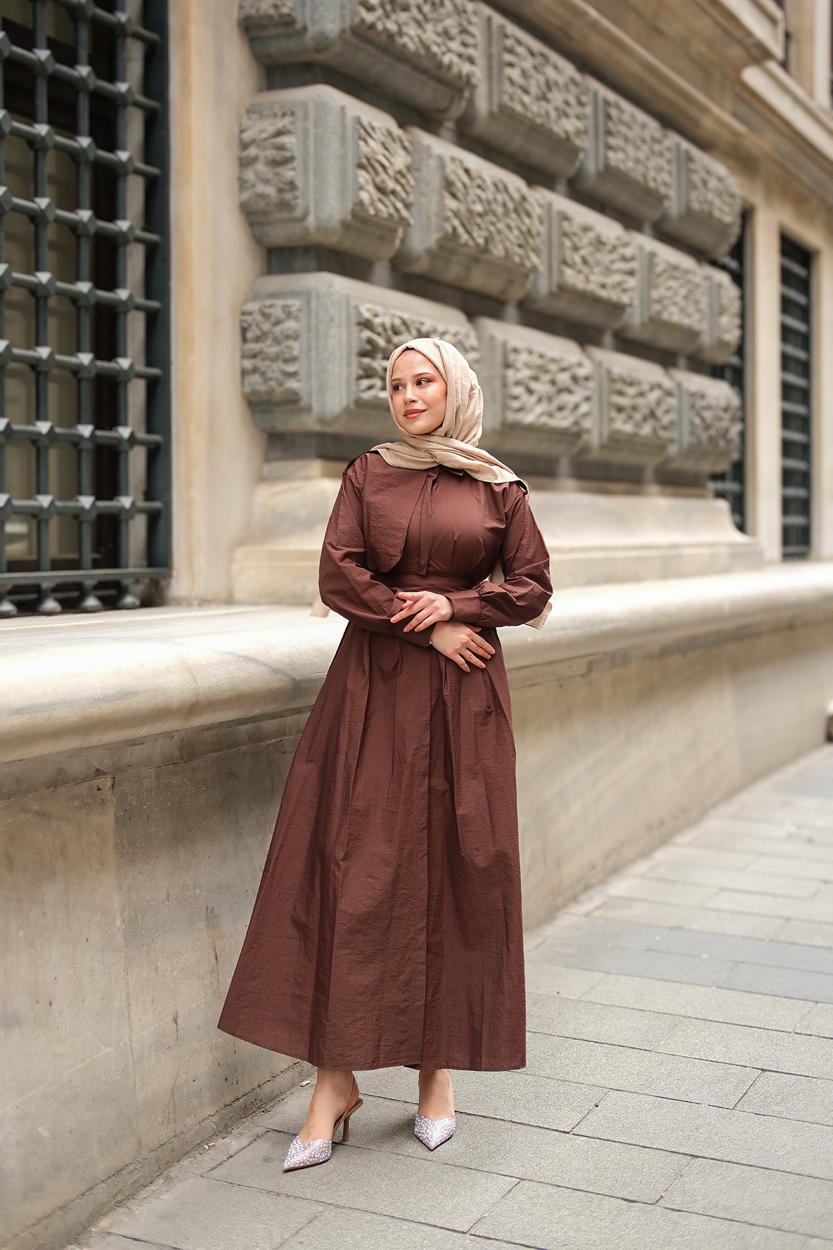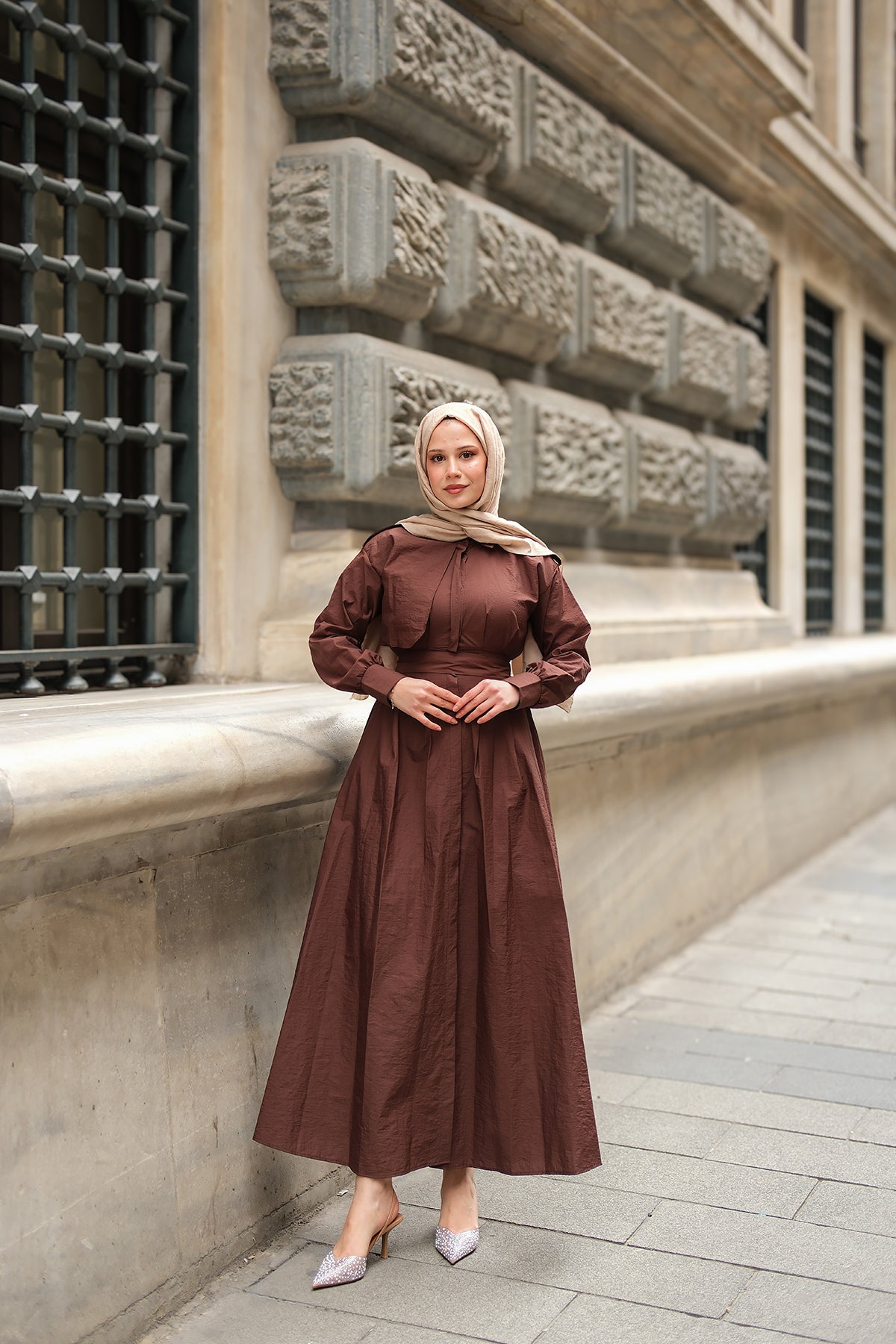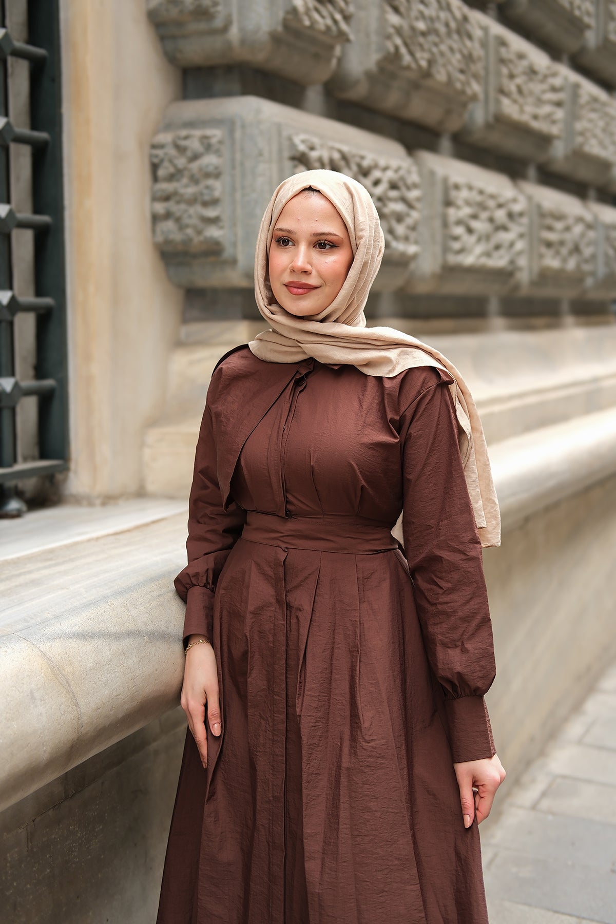 Concealed-Button Epaulette-Detail Dress - Taupe