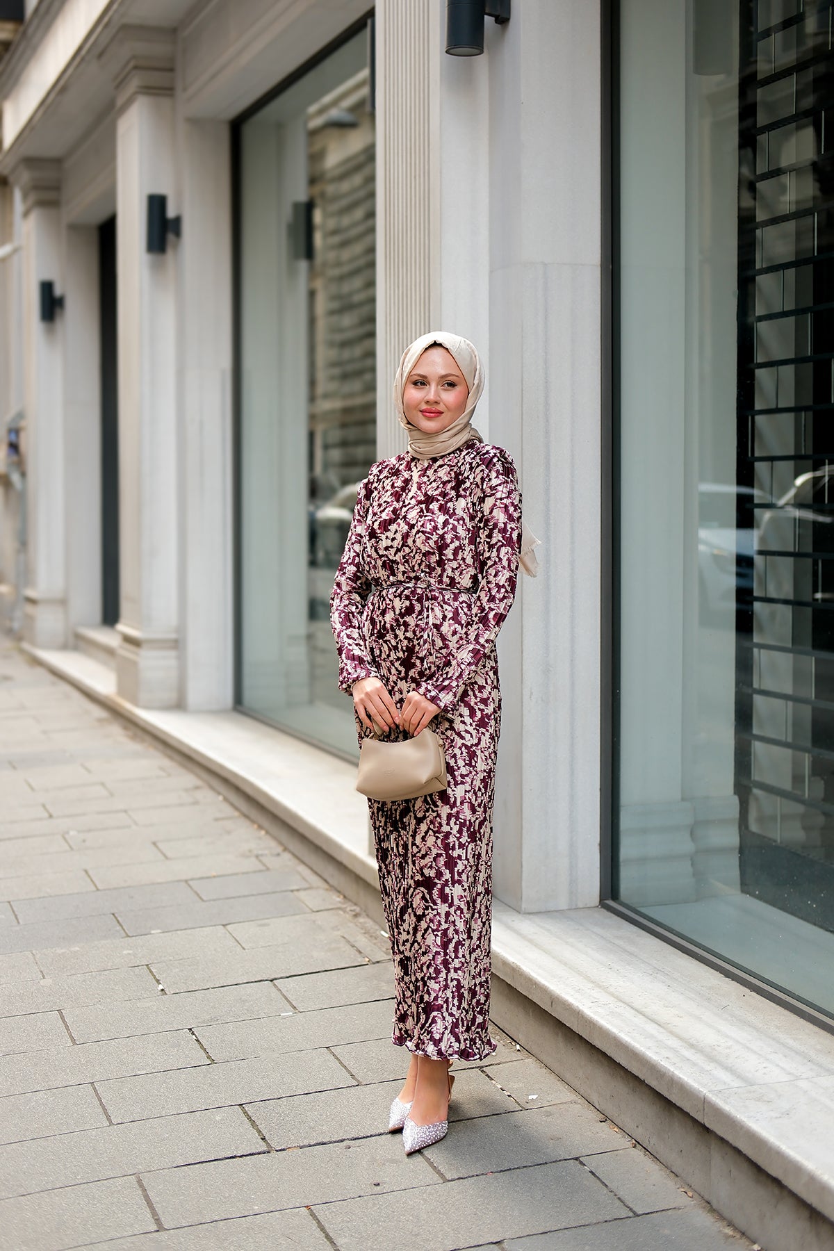 Rosey Bronzed Dress Burgundy