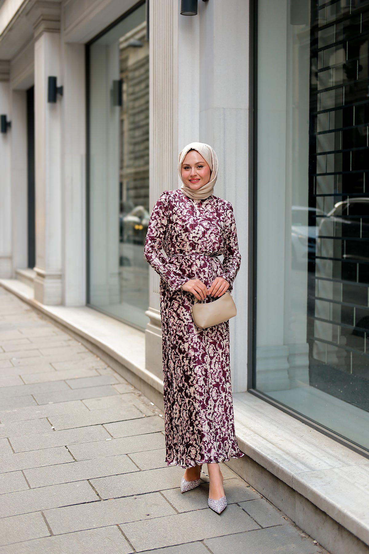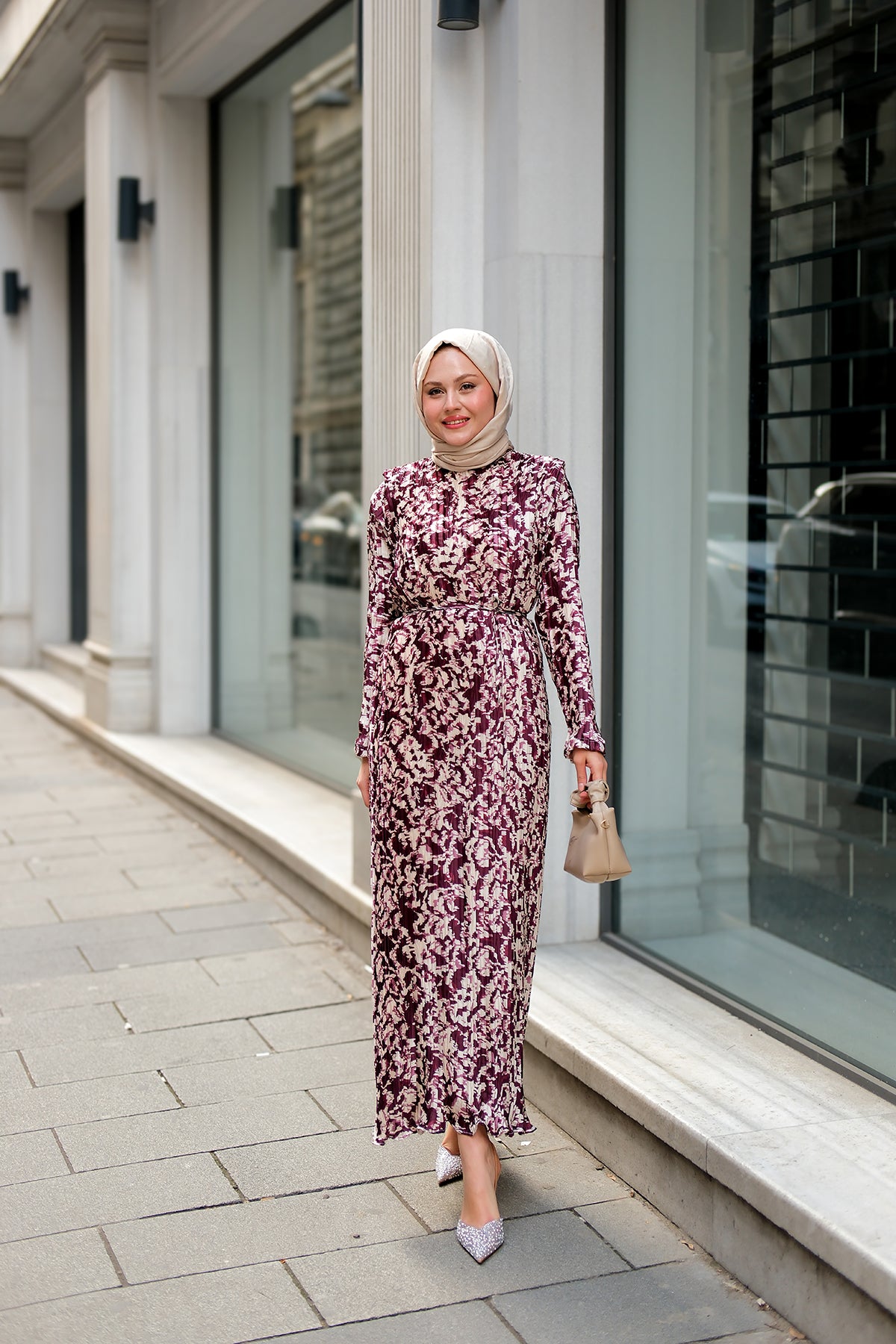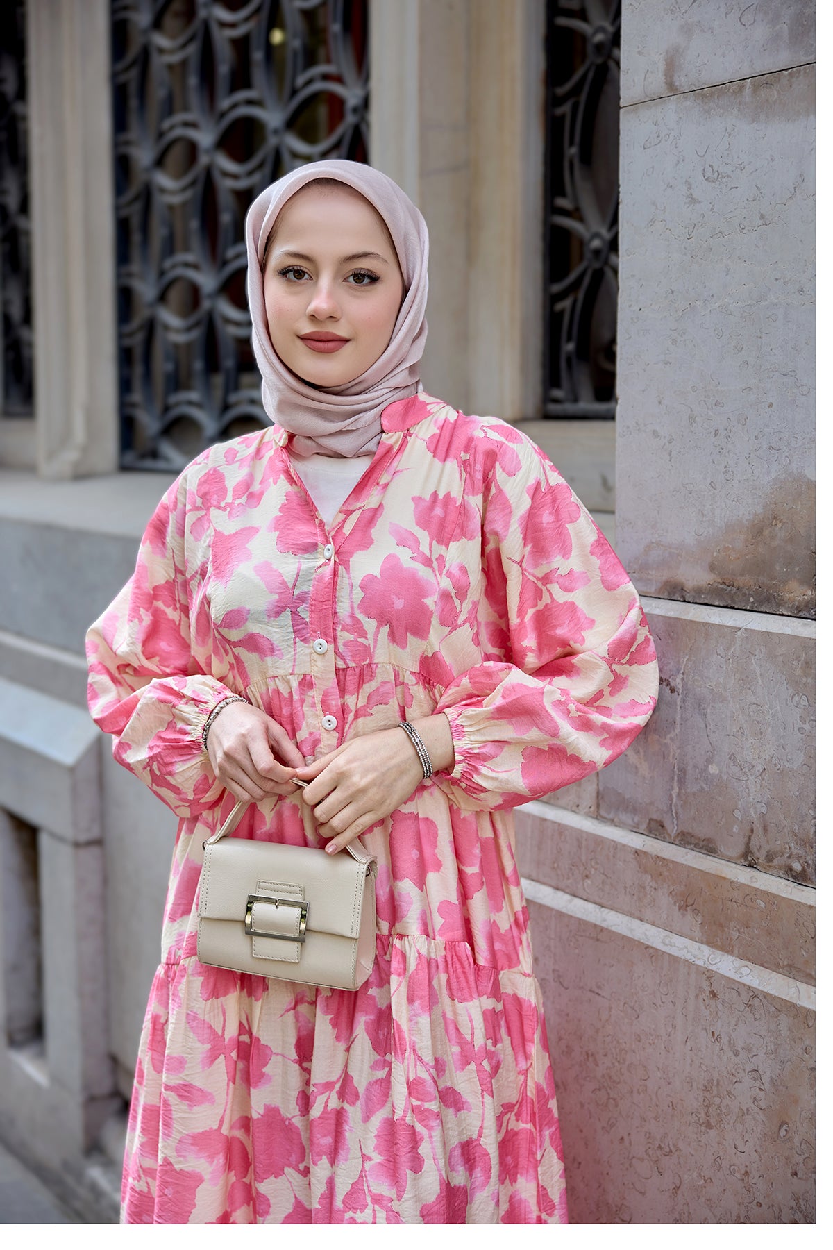 Floral Patterned Viscose Dress pink