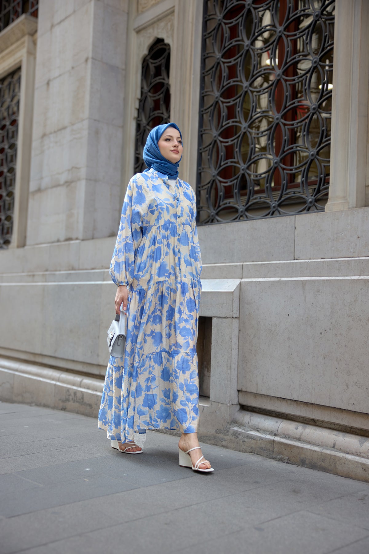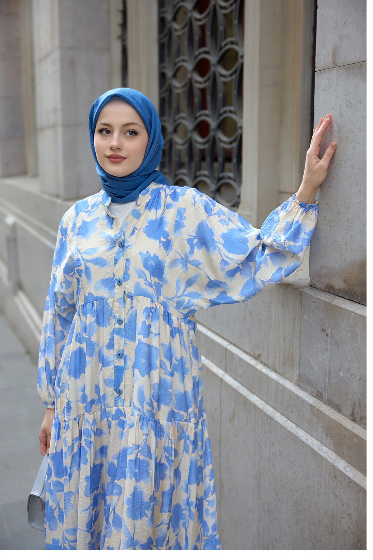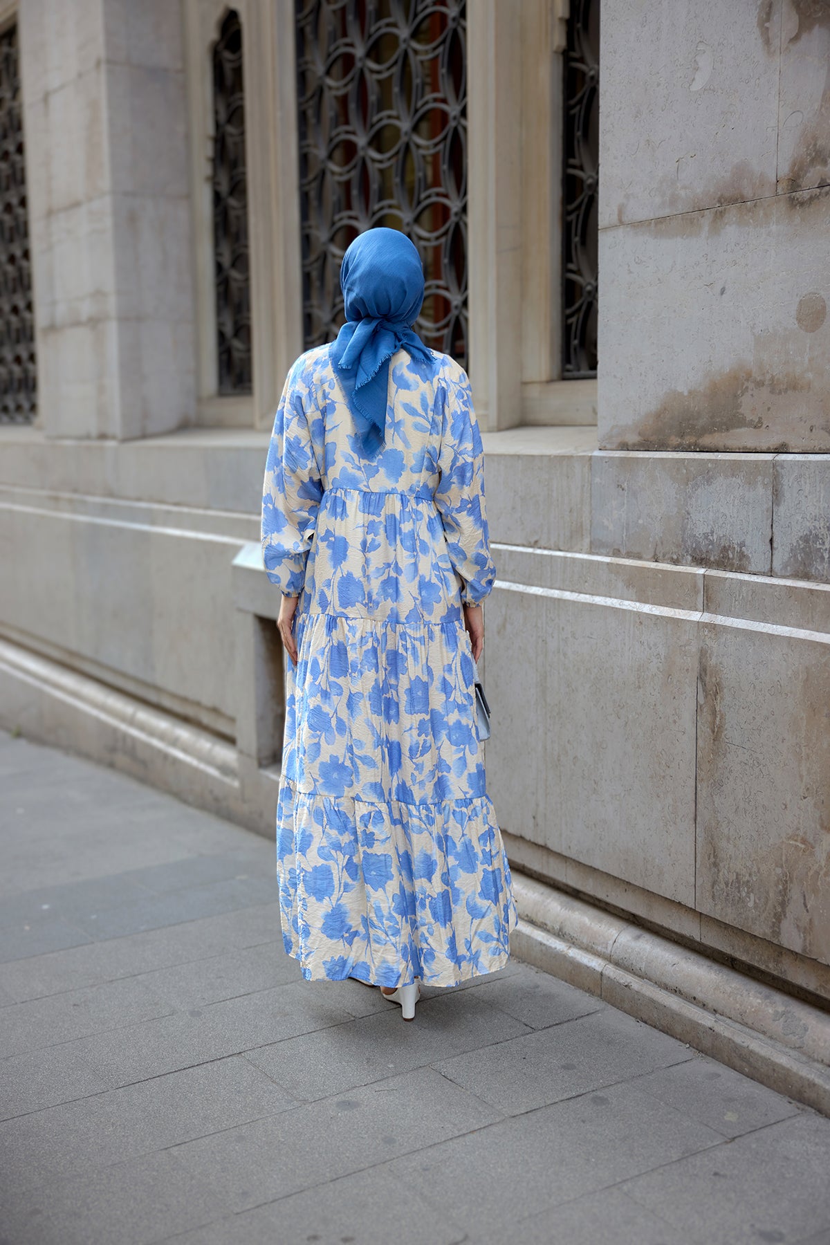 Floral Patterned Viscose Dress Blue