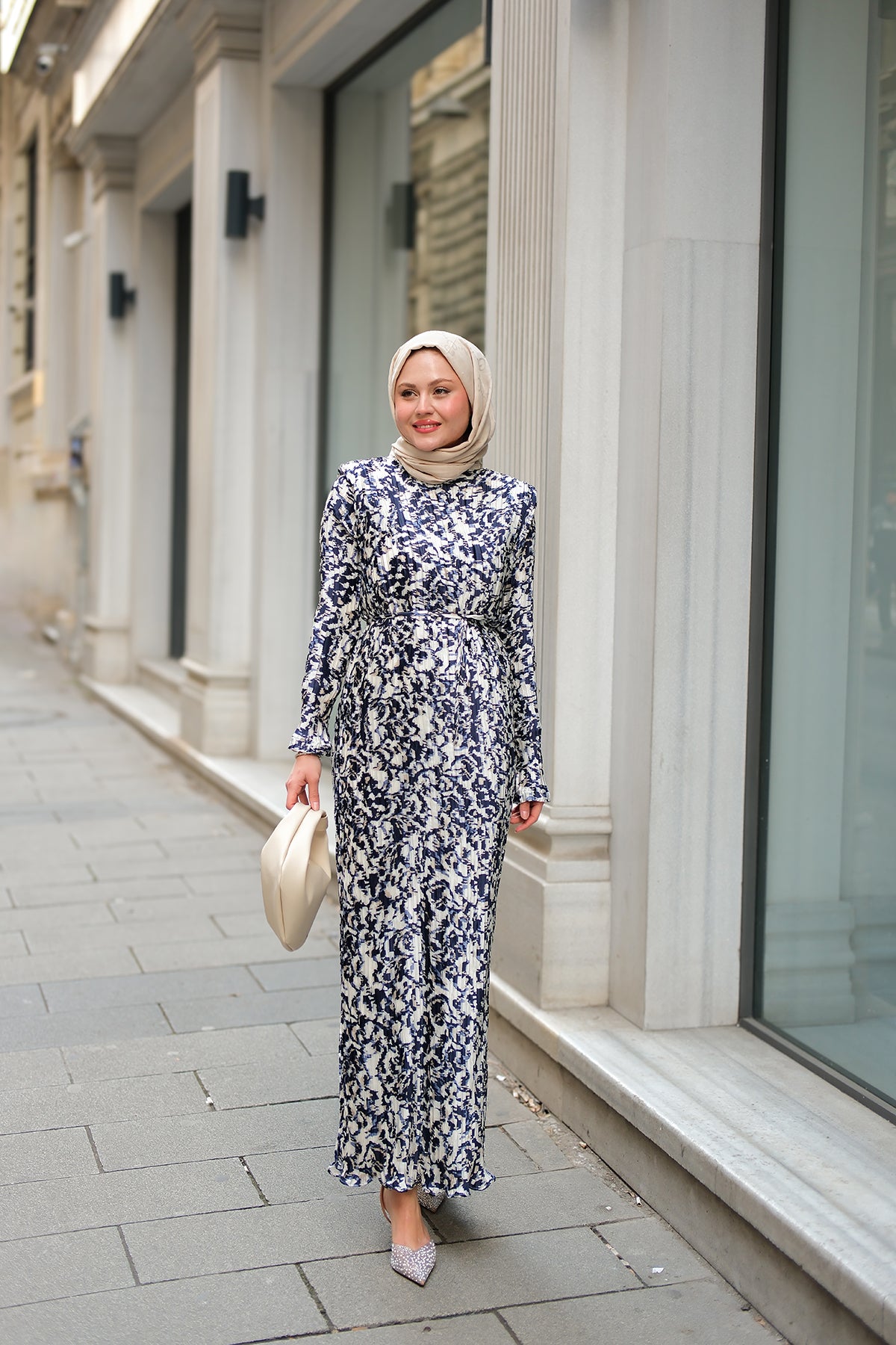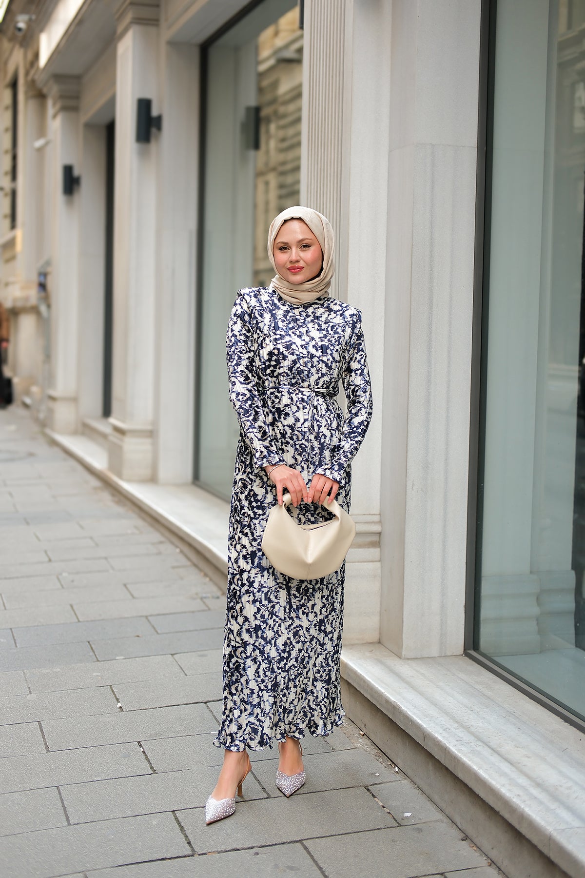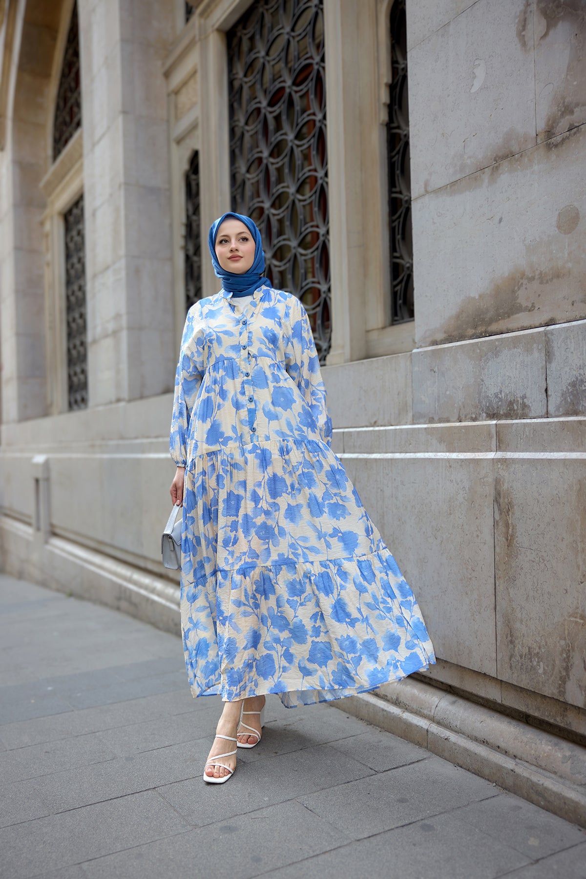 Floral Patterned Viscose Dress Blue