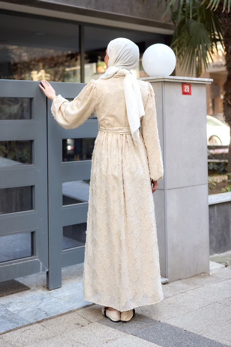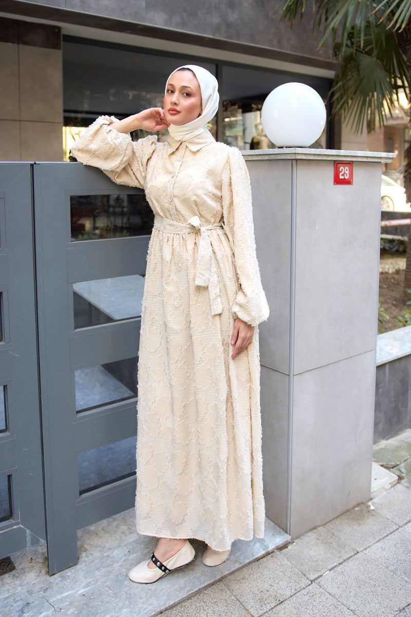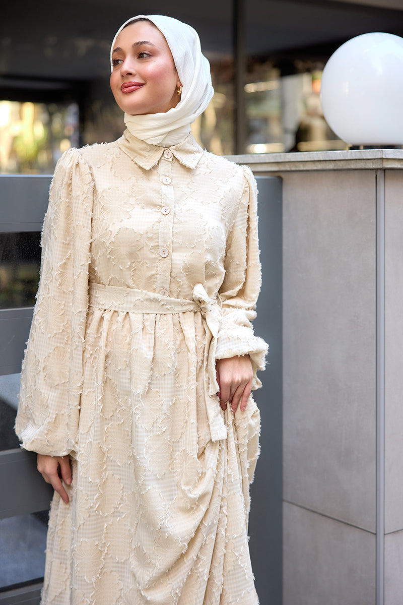 Burnout Floral-Pattern Jacquard Dress - Cream