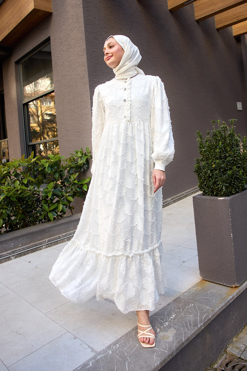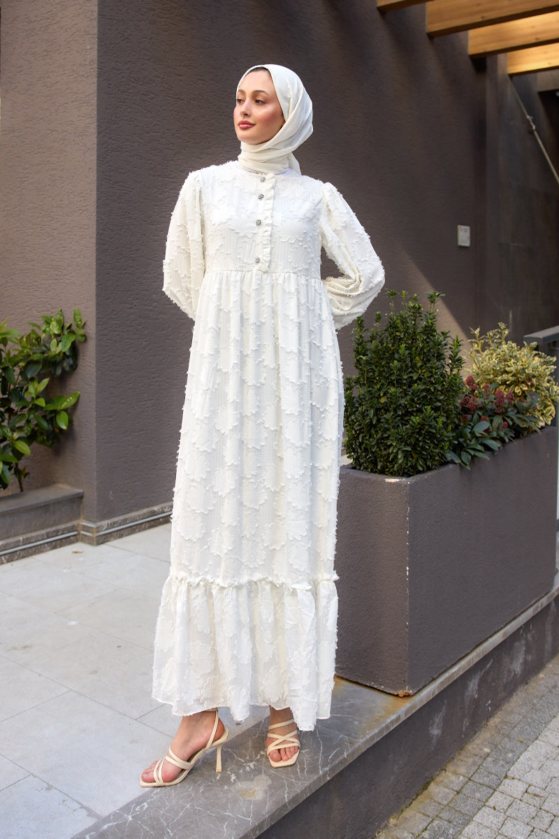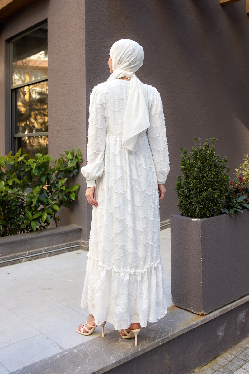 Burnout Floral-Pattern Jacquard Dress - White