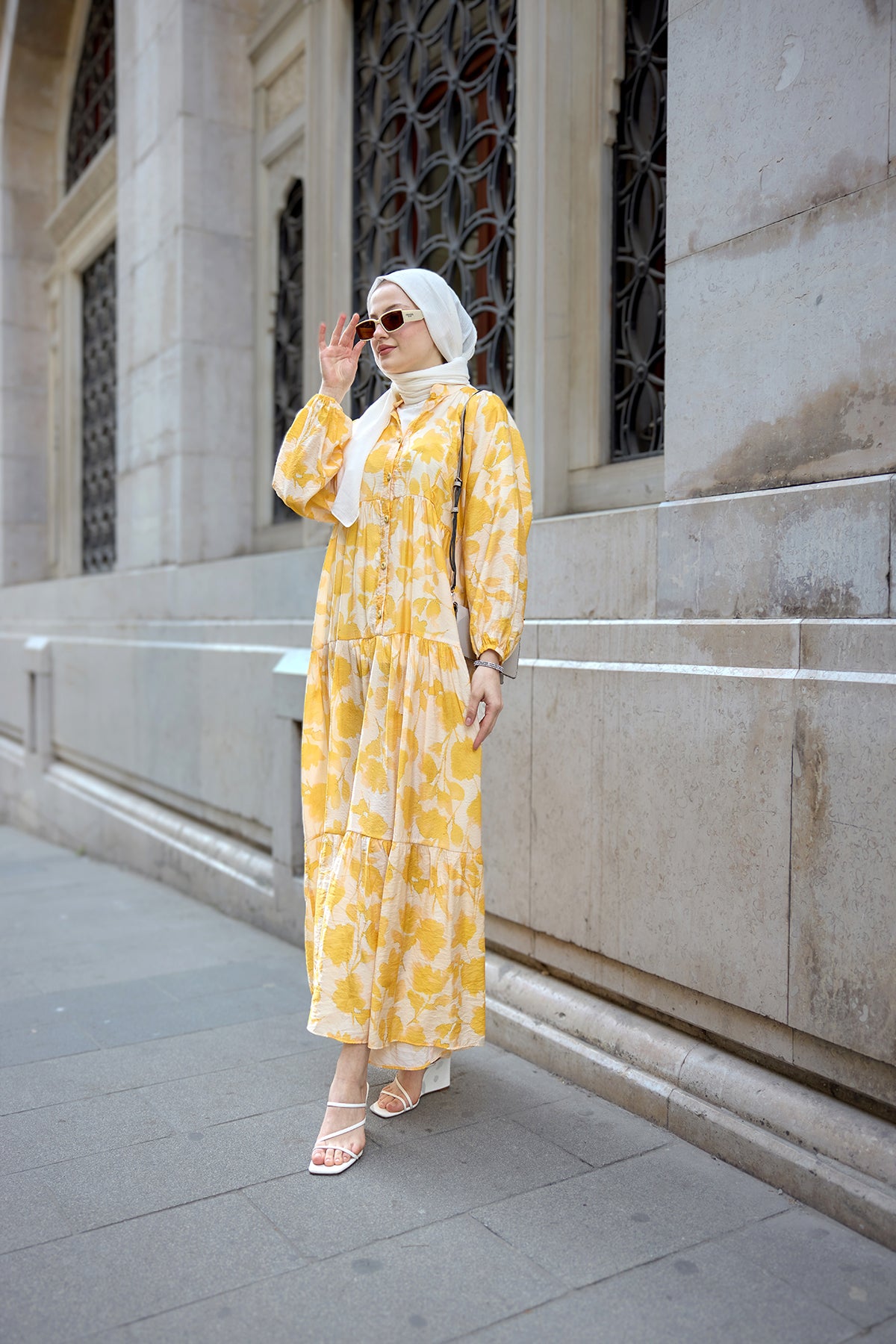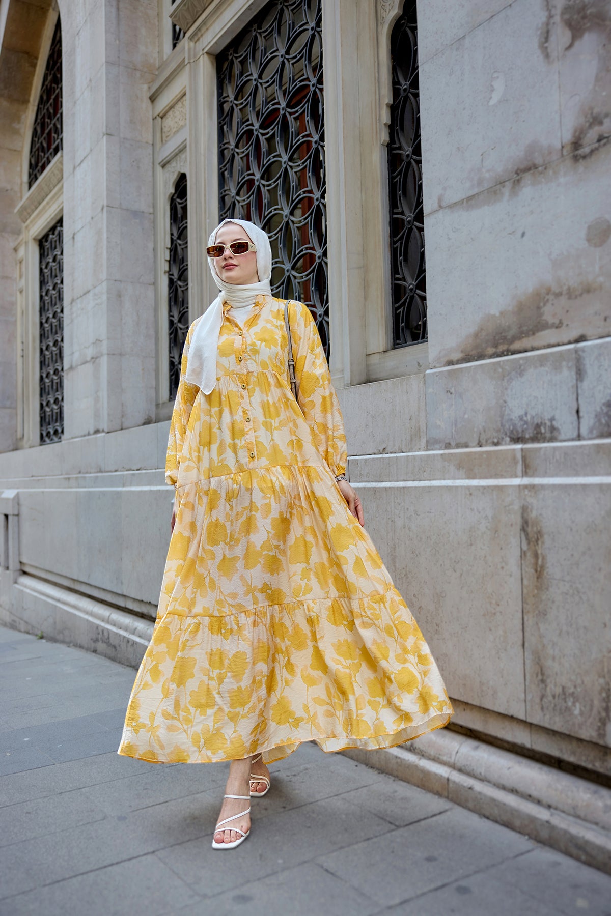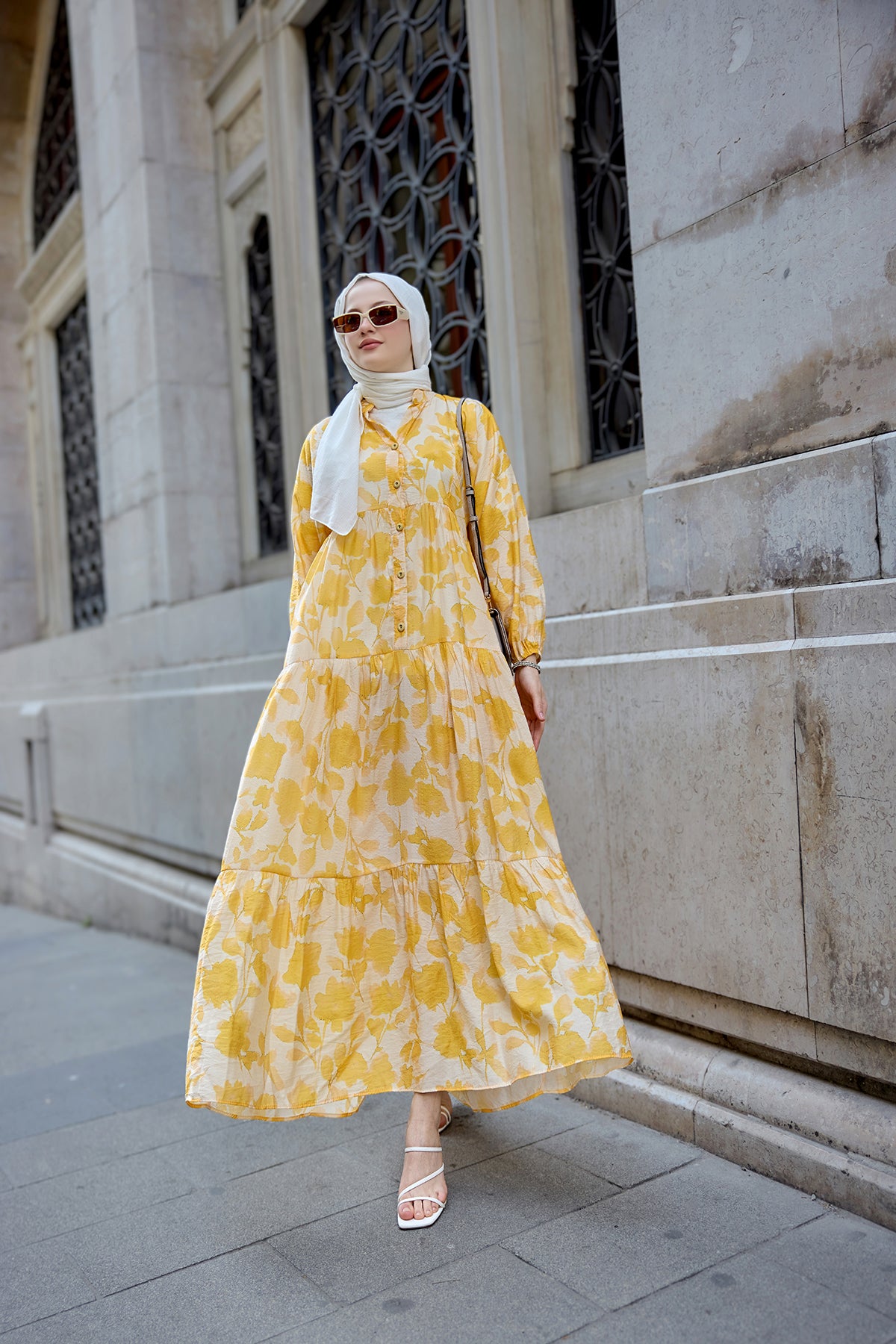 Floral Patterned Viscose Dress - Yellow
