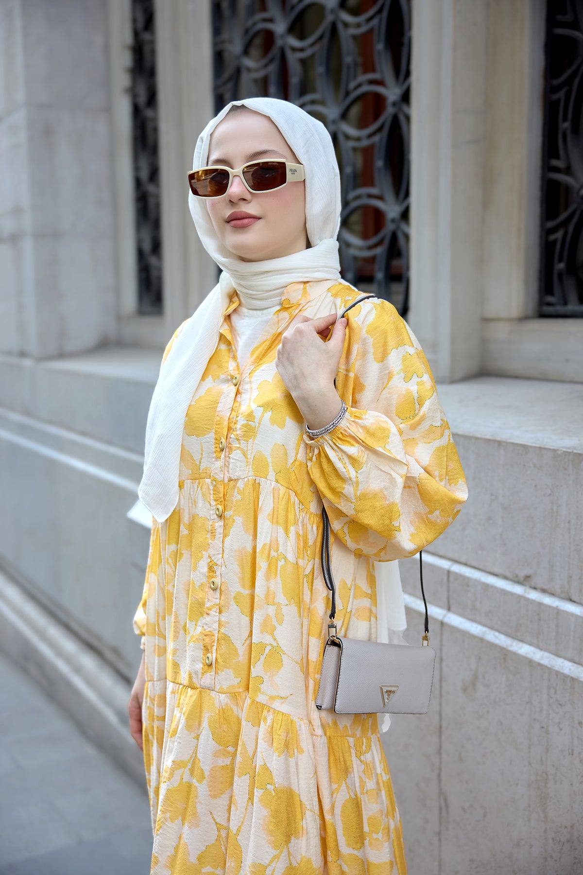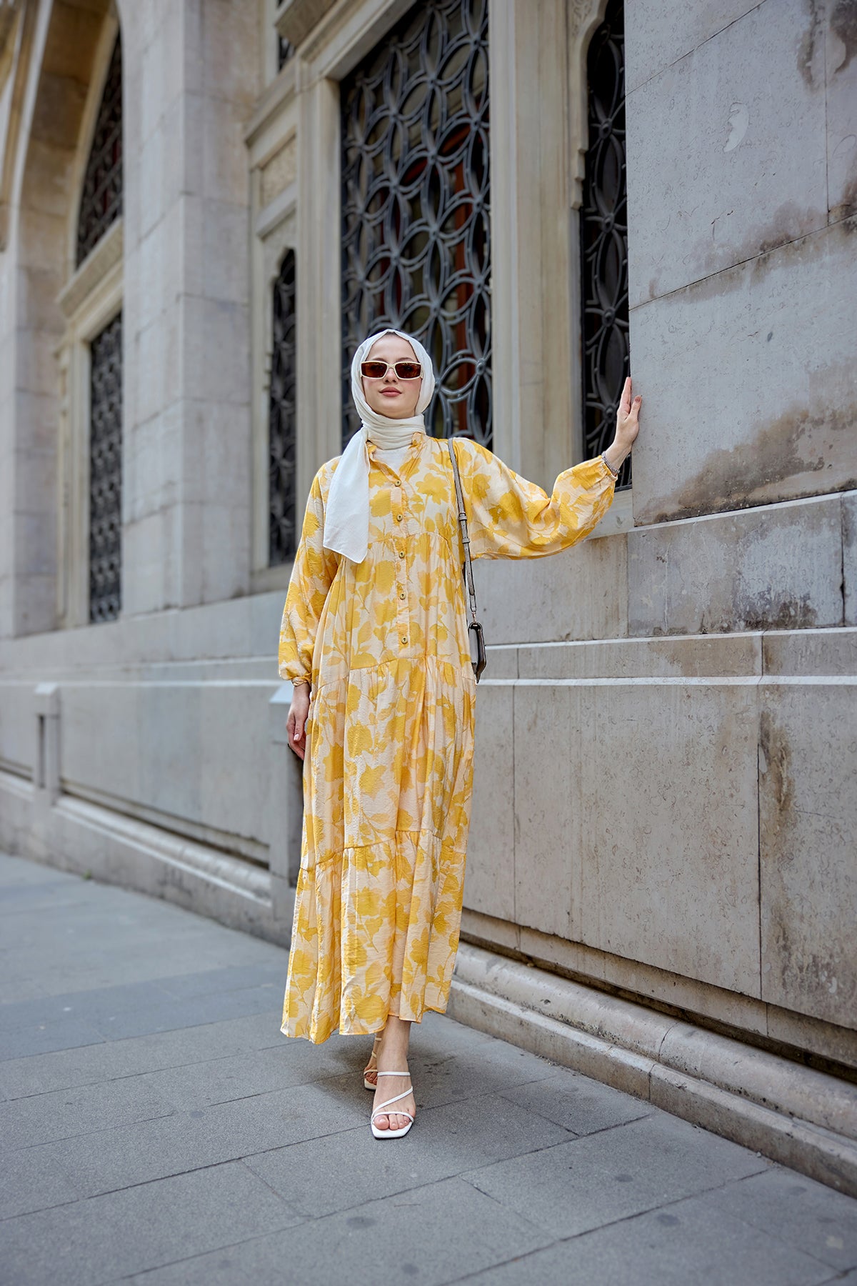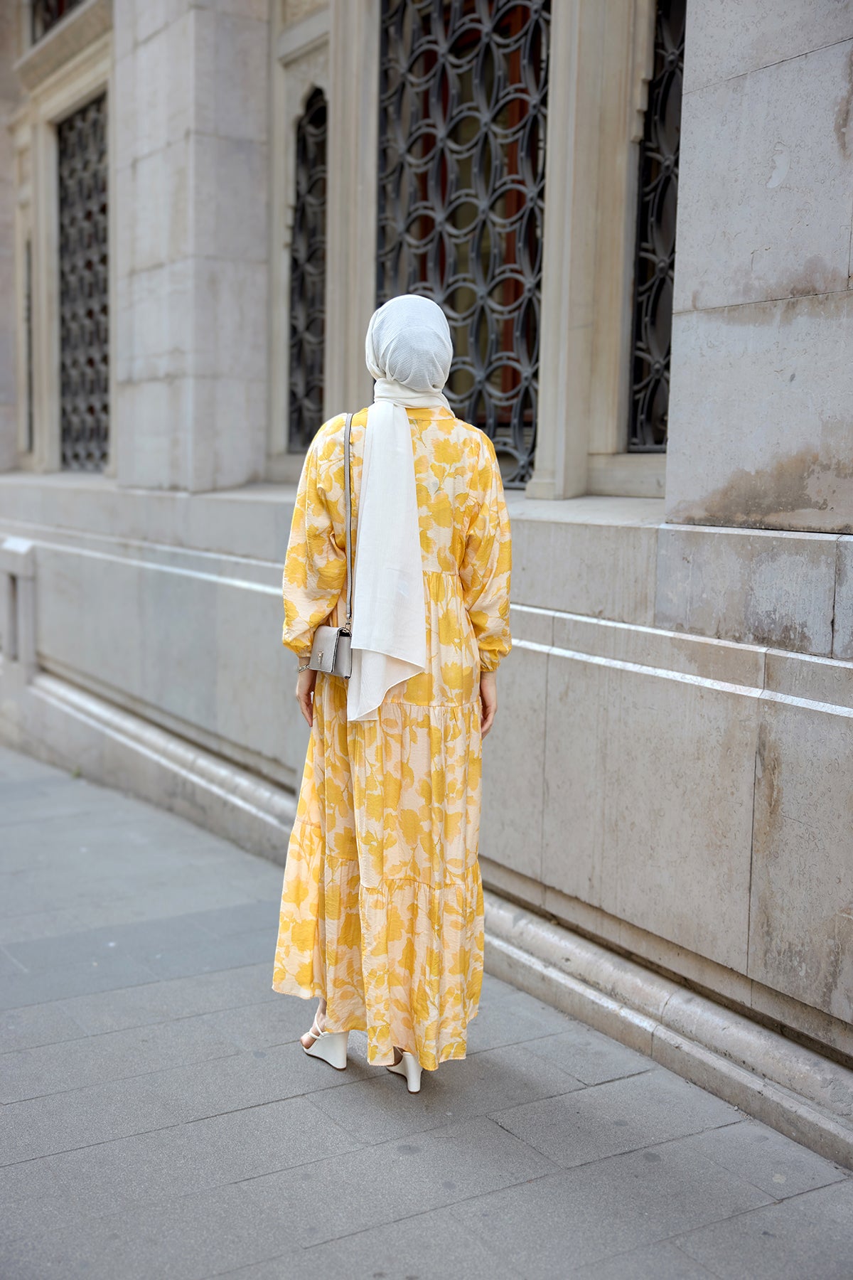 Floral Patterned Viscose Dress - Yellow