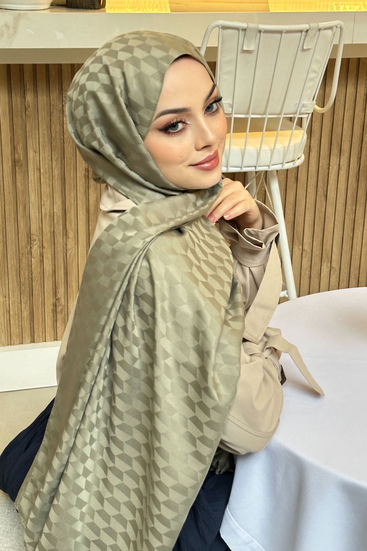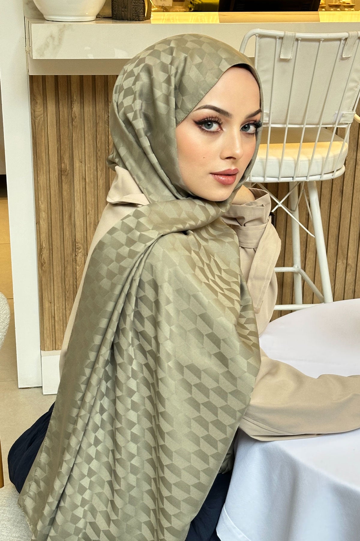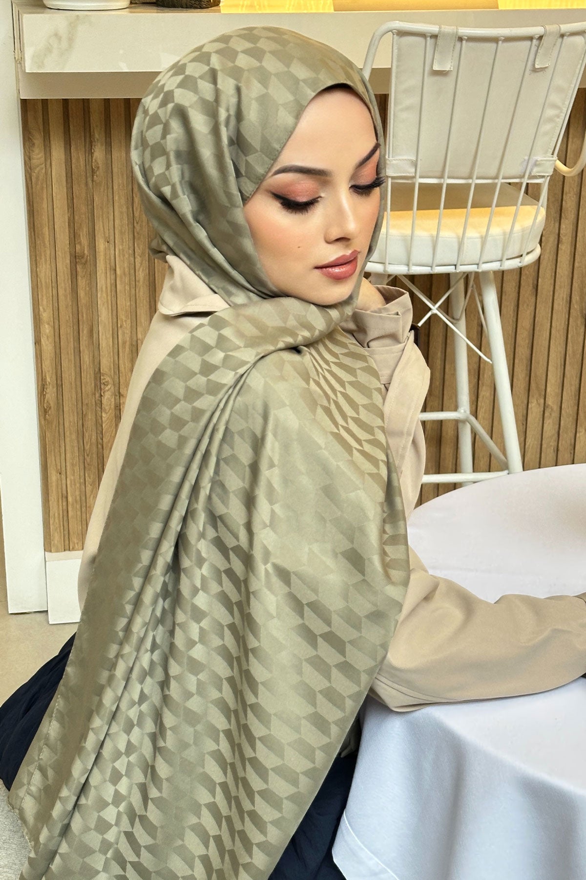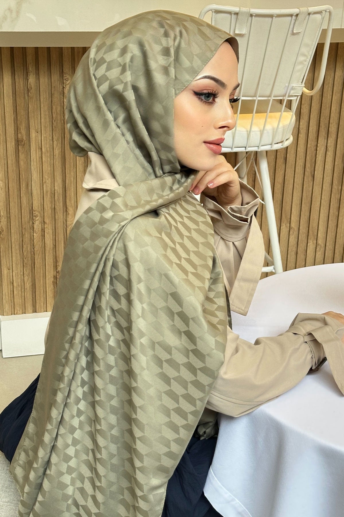 Light Green Jacquard Shawl with Cocoon Pattern