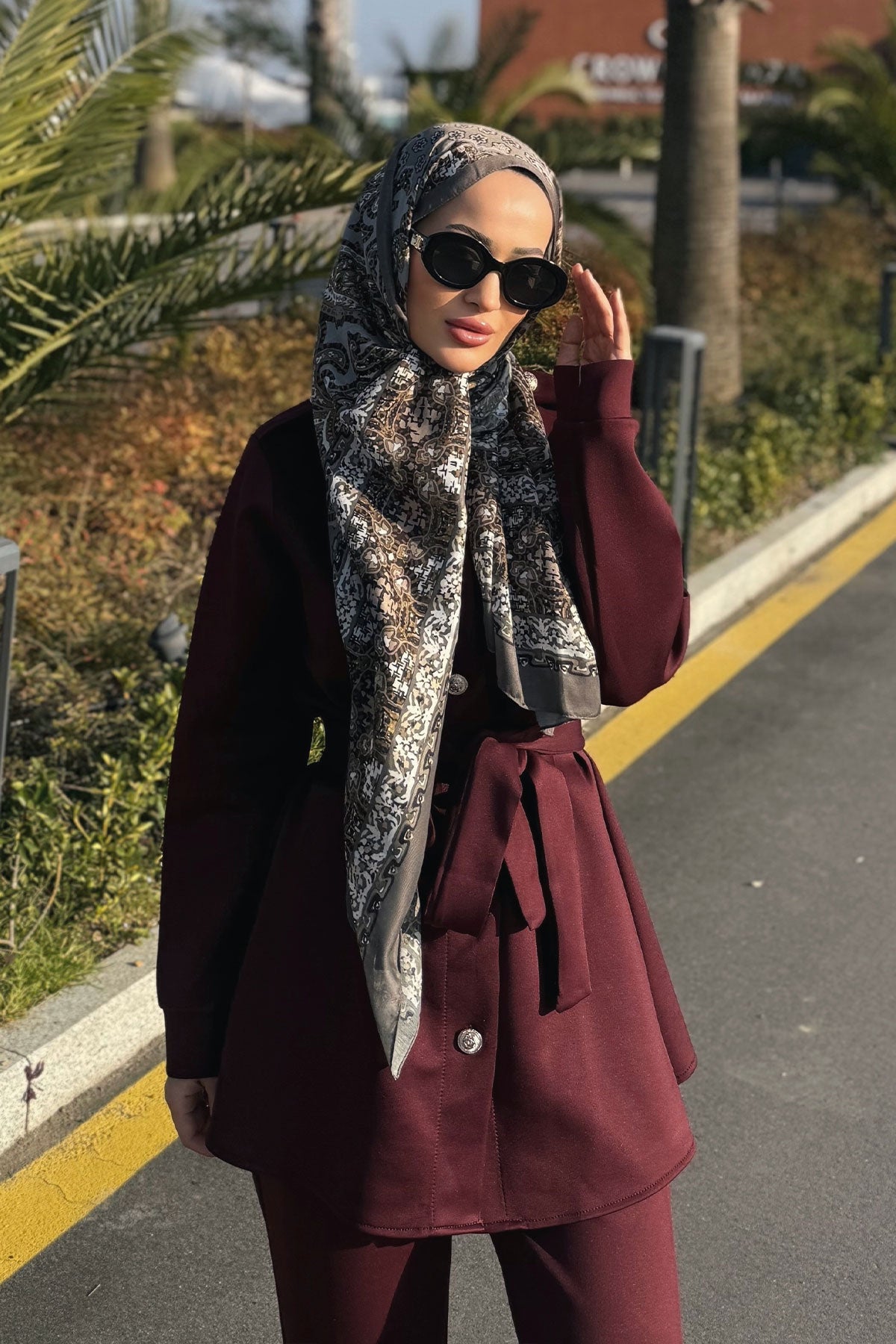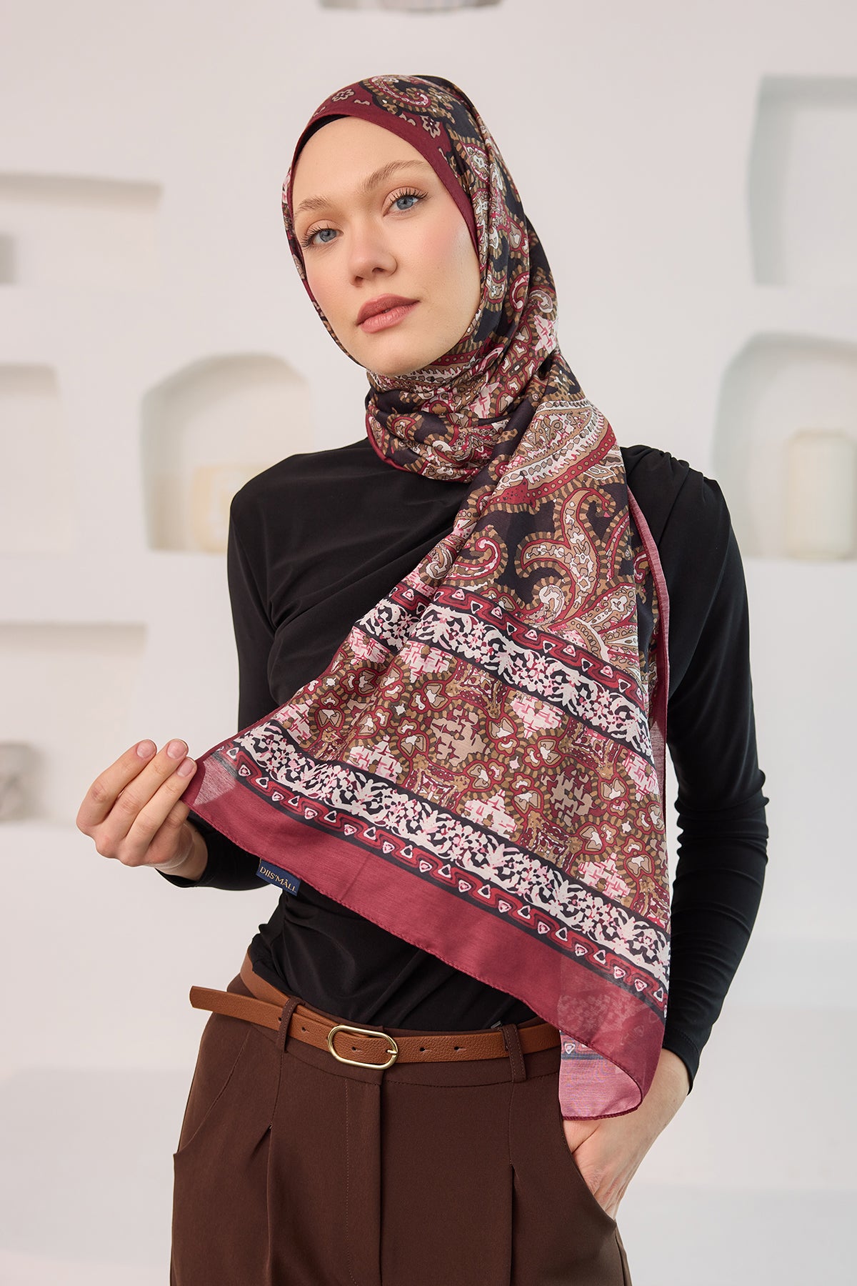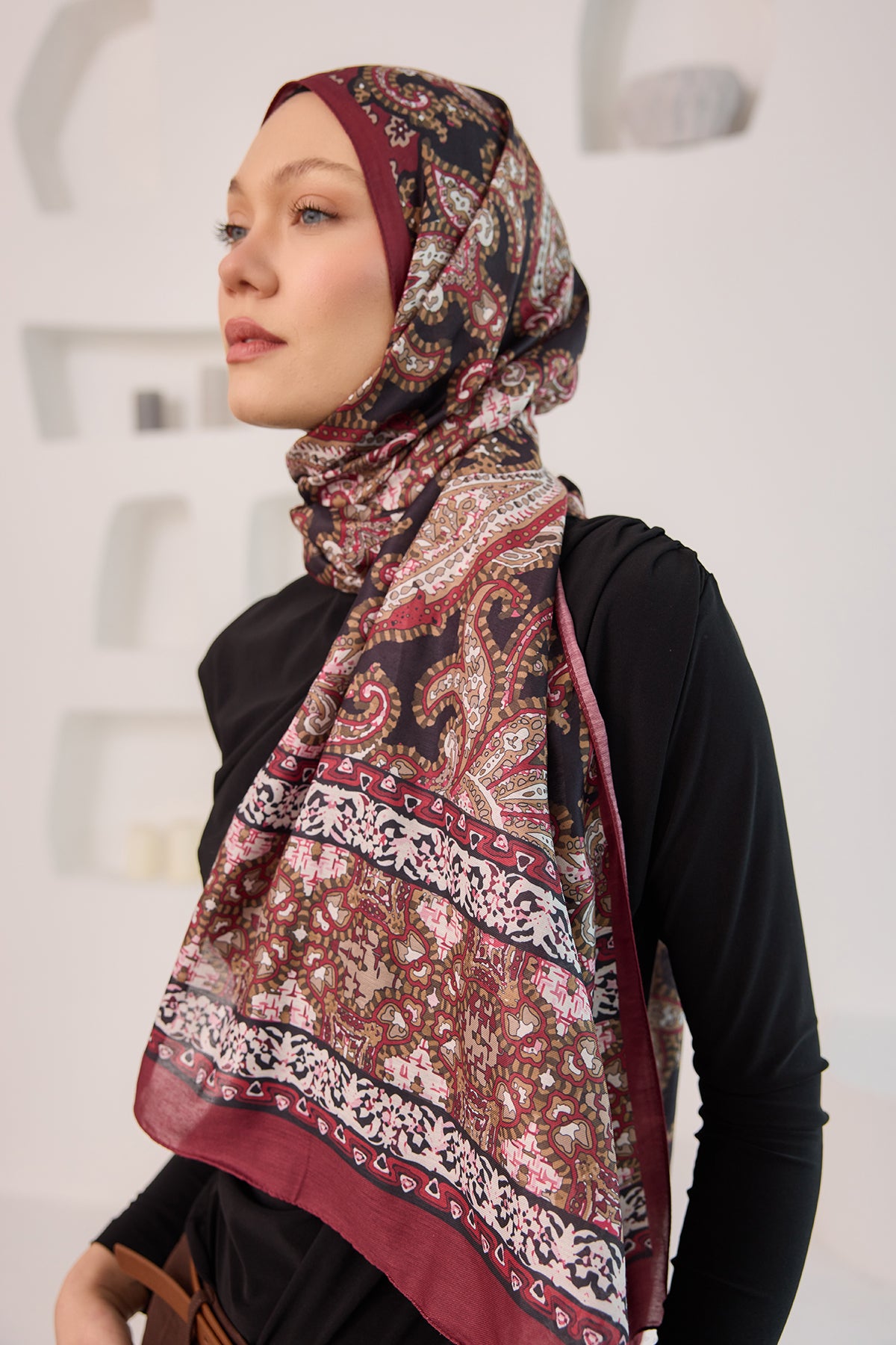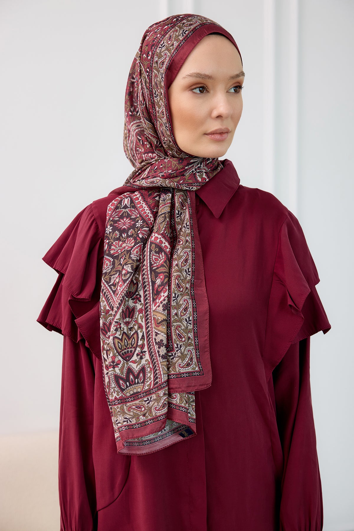 Ethnic Pattern Soft Shawl - Burgundy