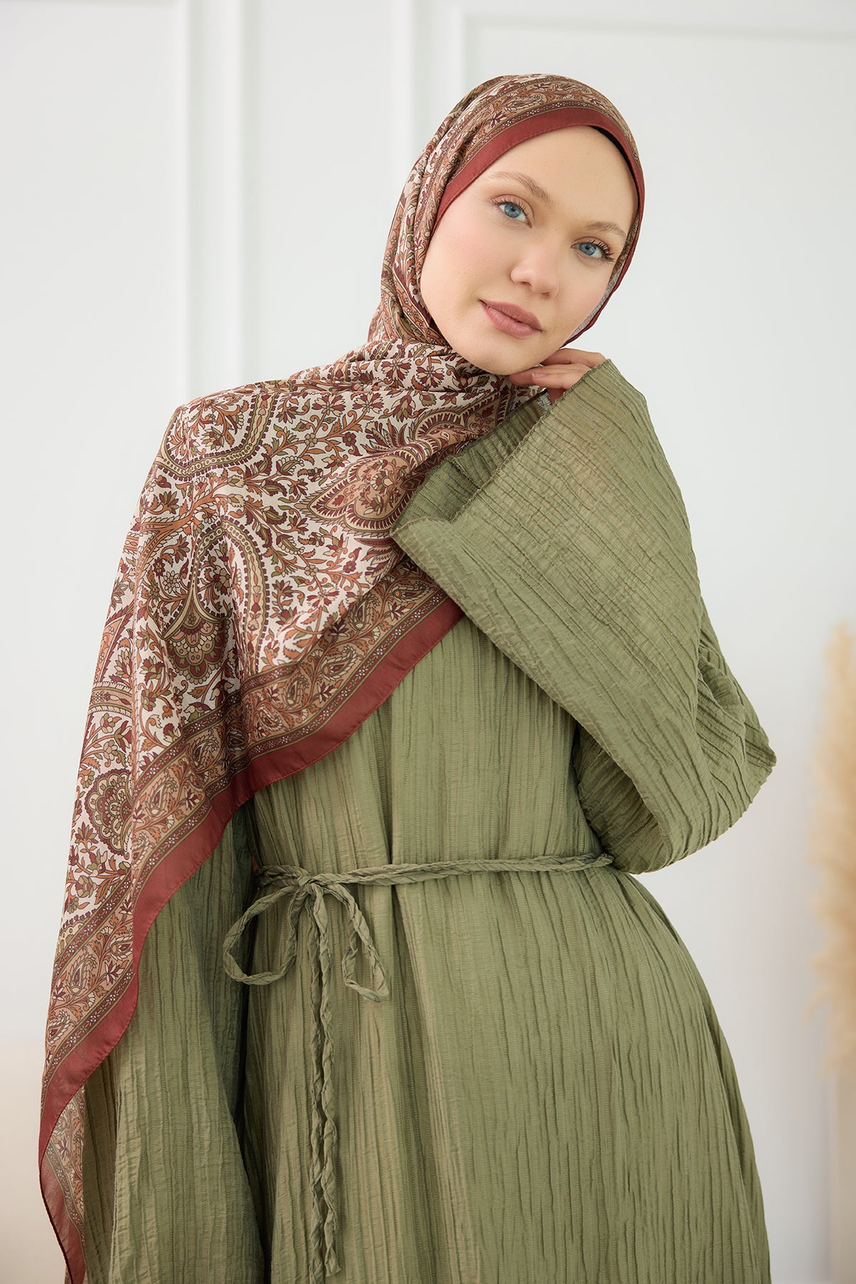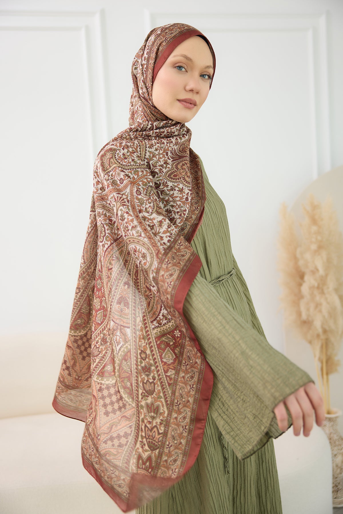 Ethnic Pattern Soft Shawl - Moss Green