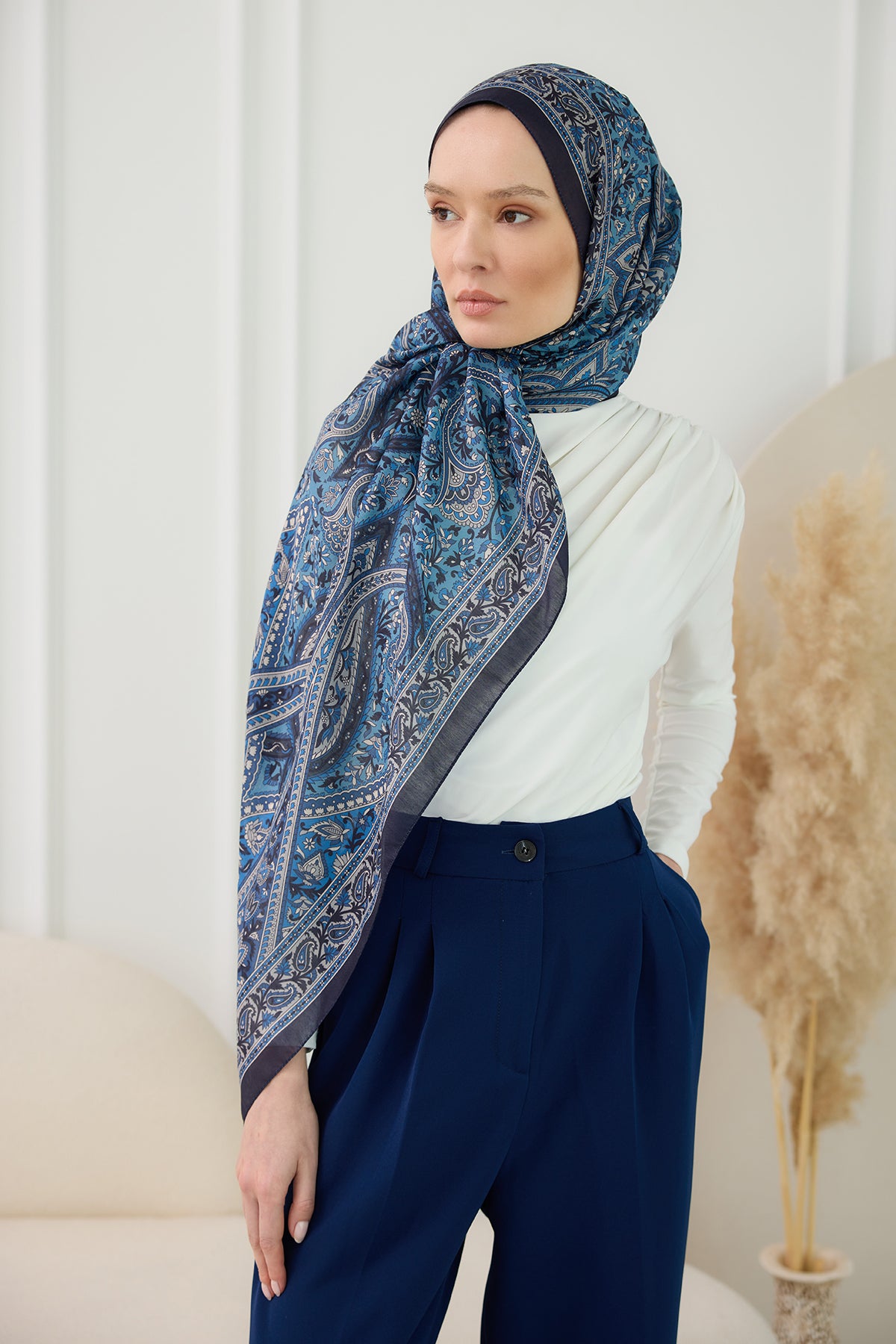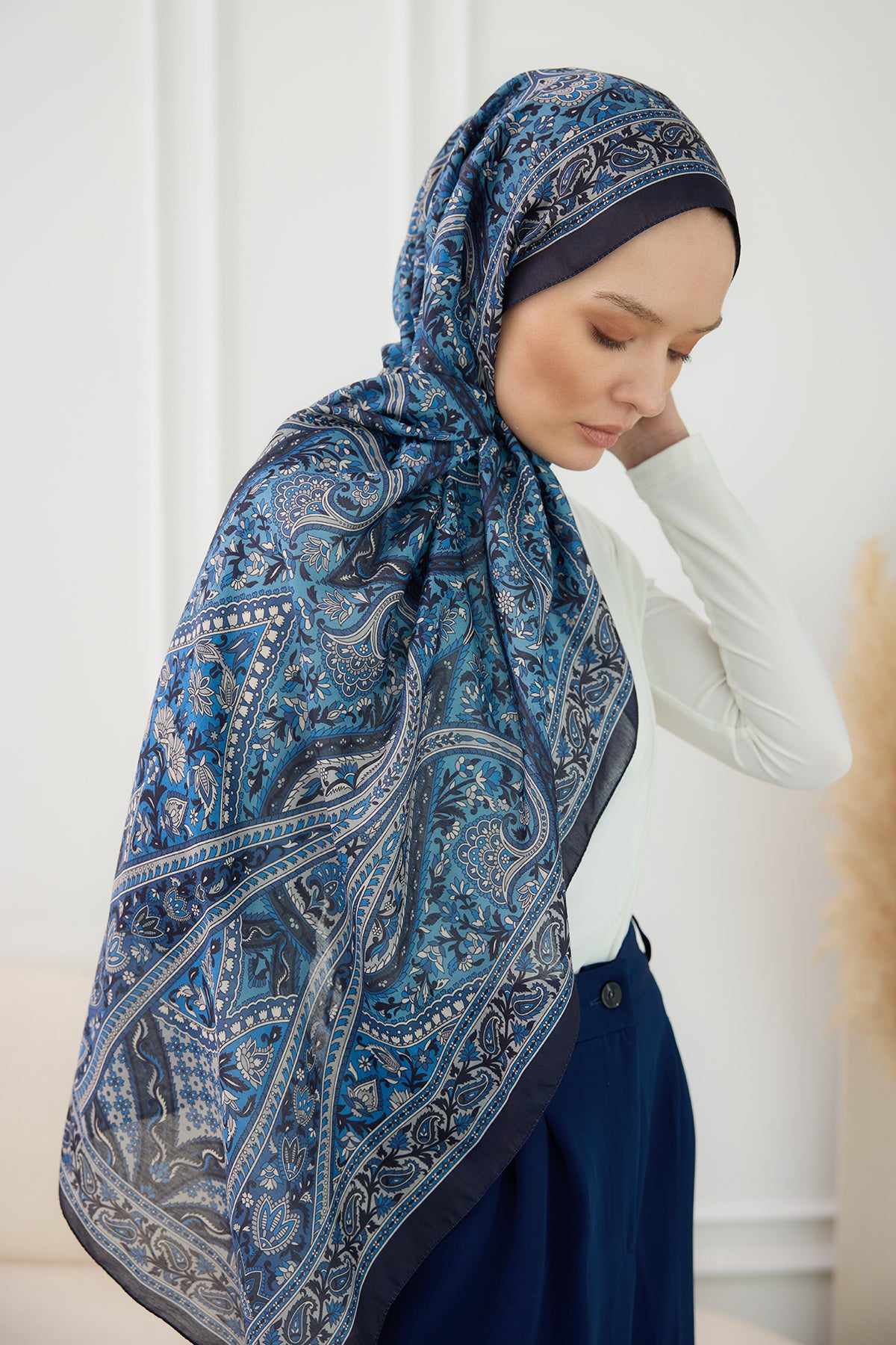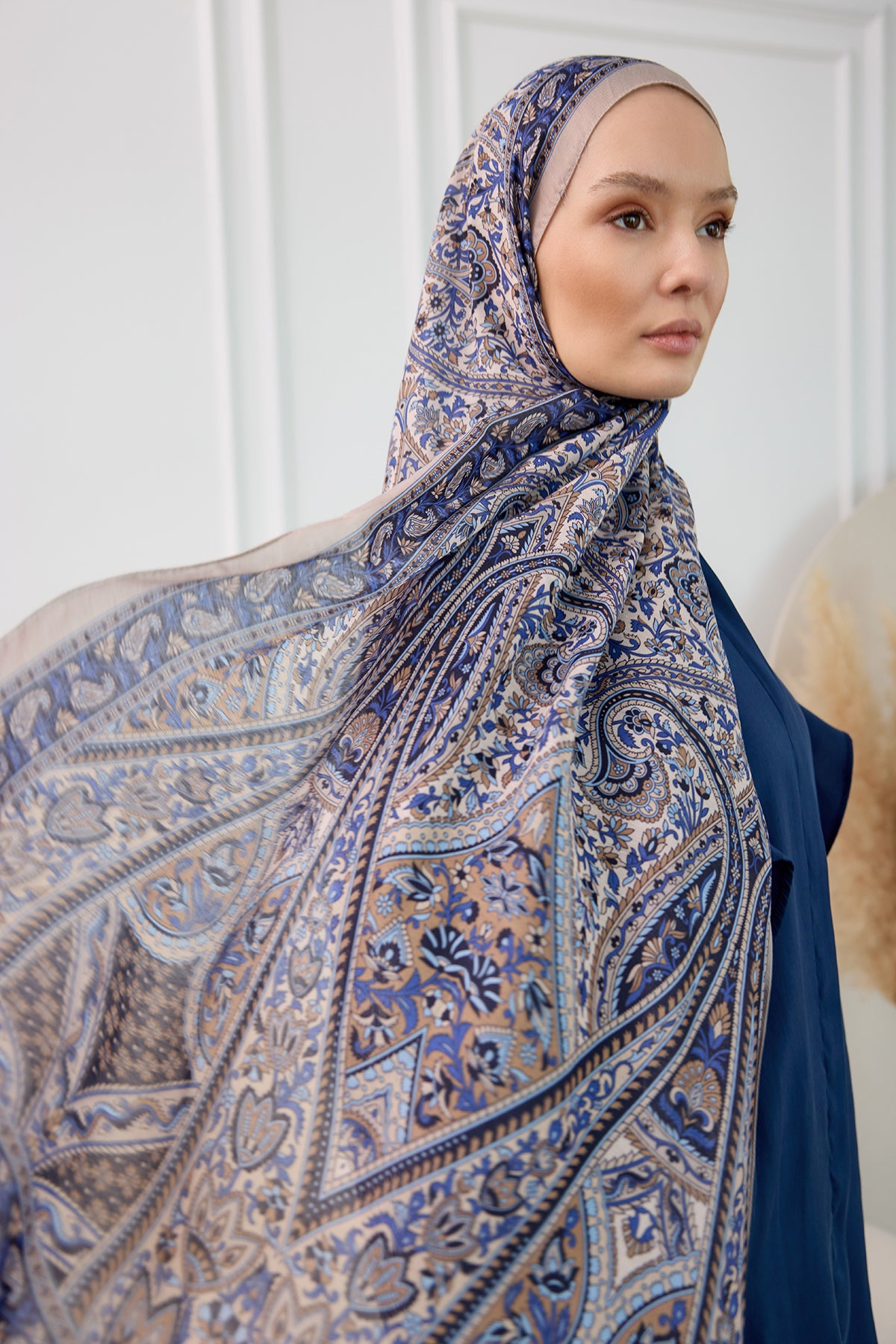 Ethnic Pattern Soft Shawl Indigo Blue