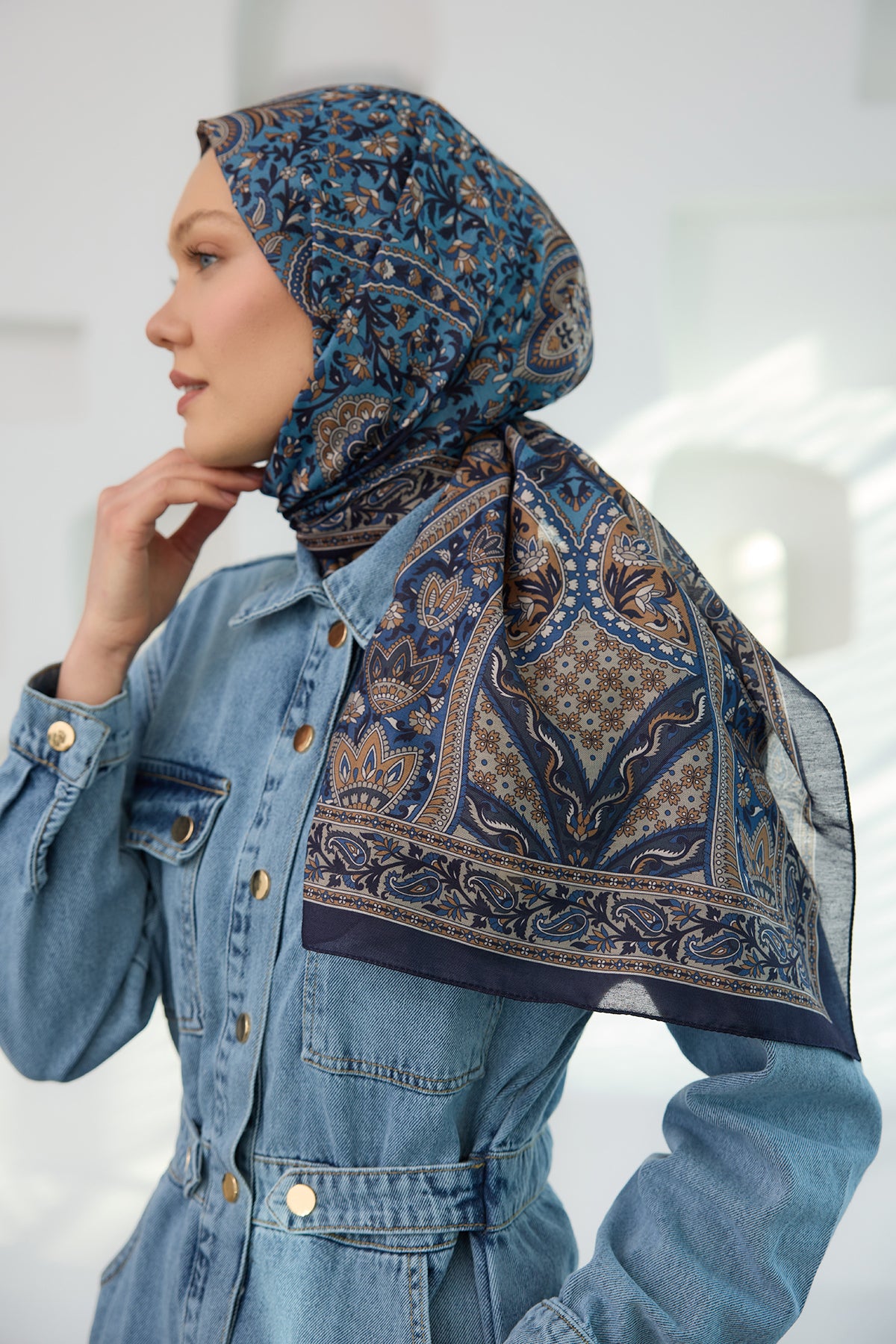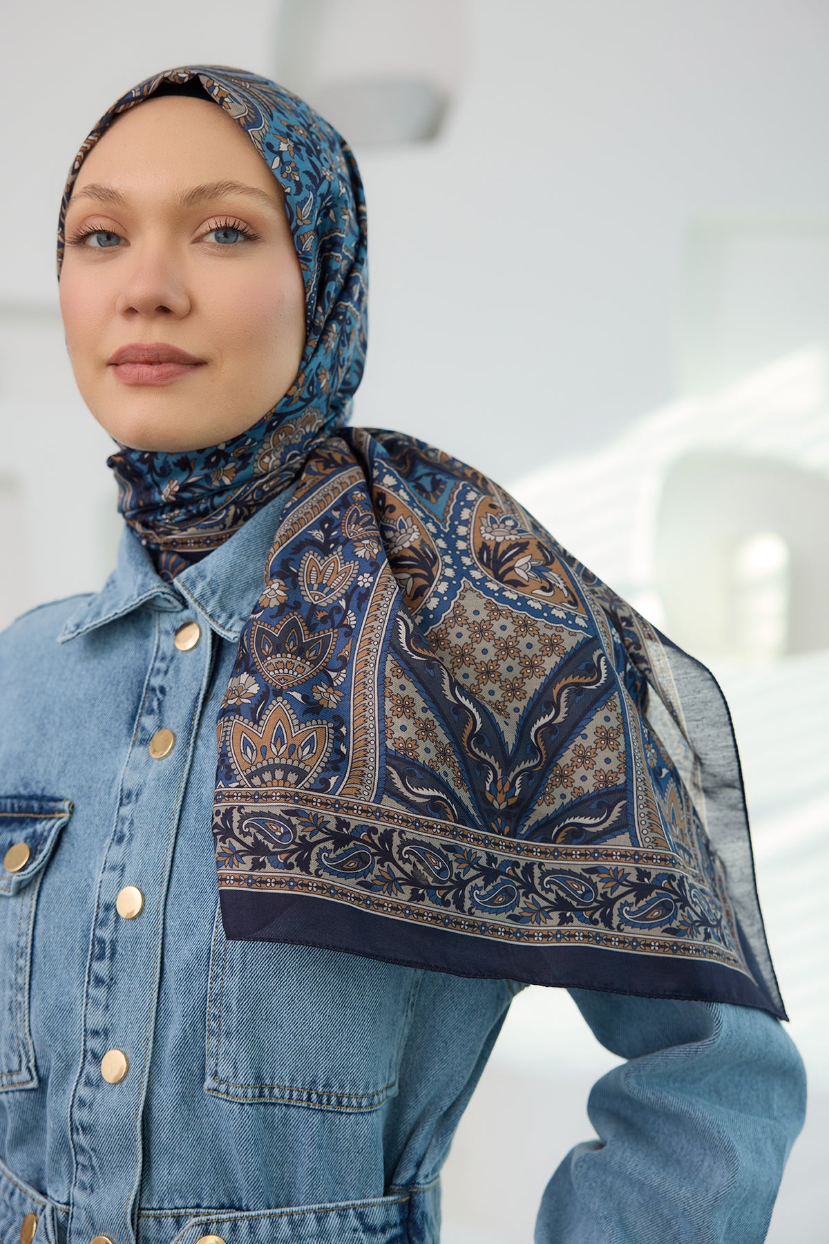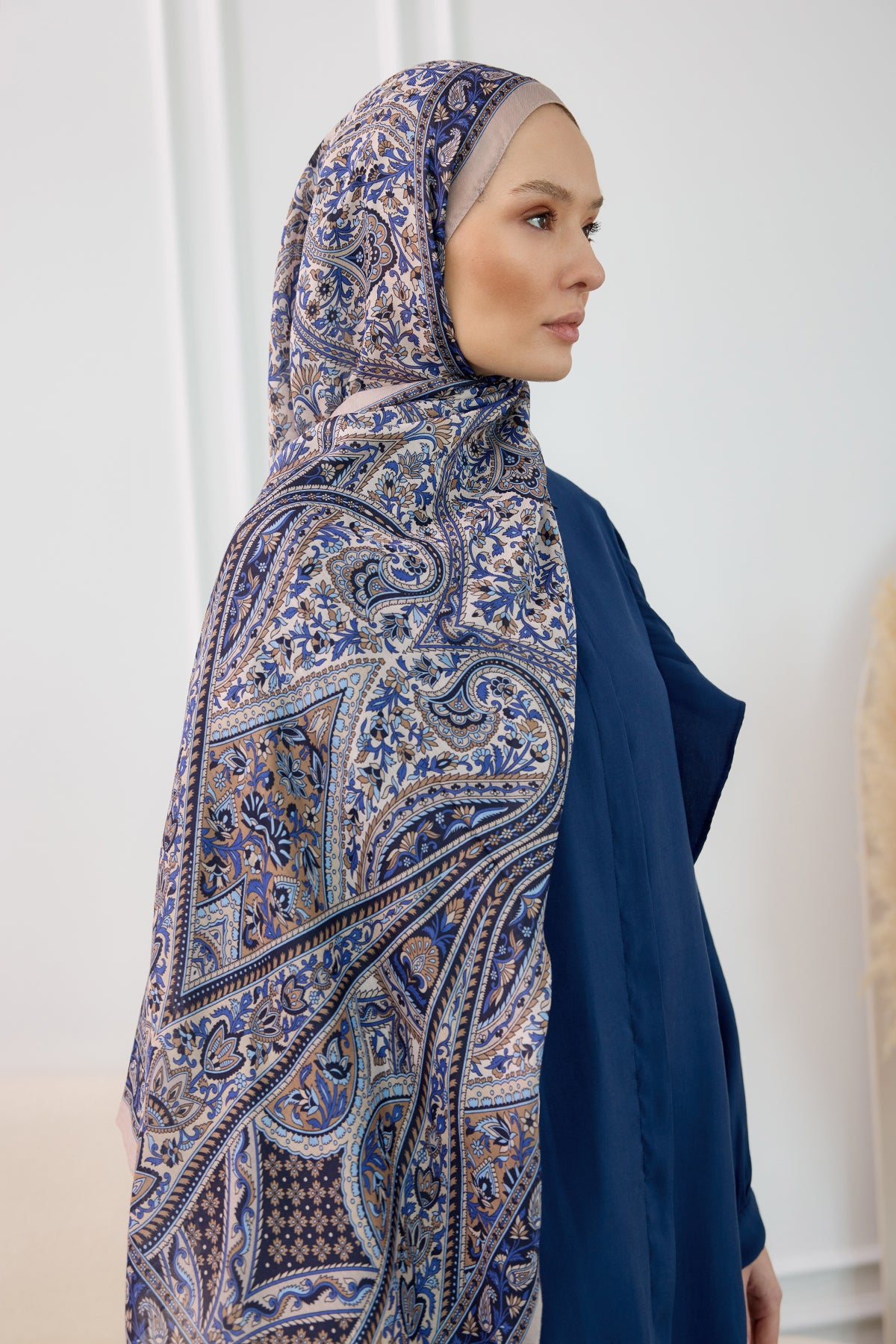 Ethnic Pattern Soft Shawl Indigo Blue