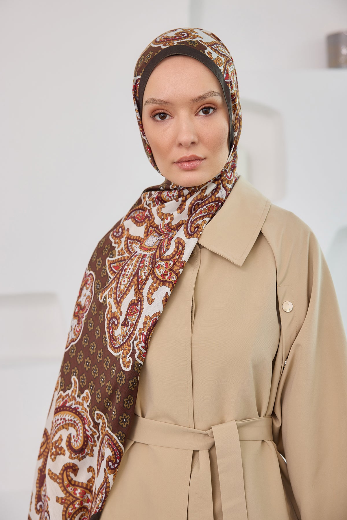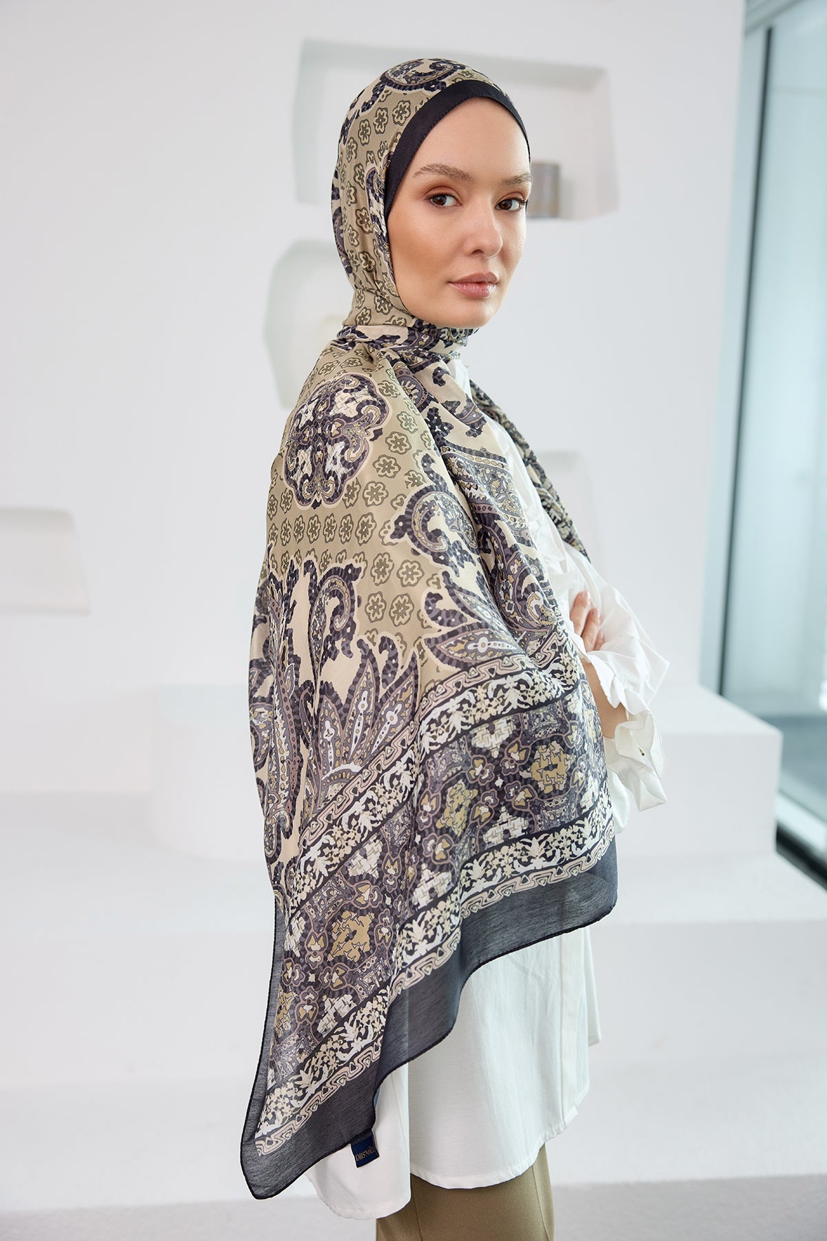 Ethnic Pattern Soft Shawl - Dark Beige