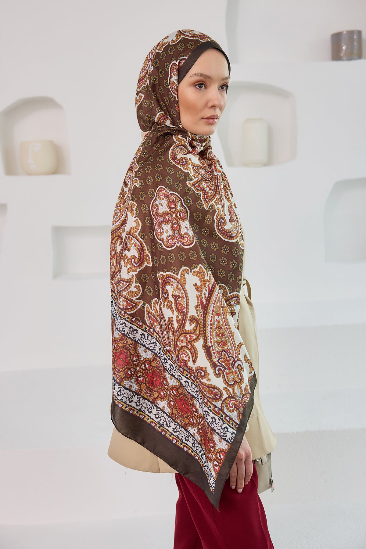 Ethnic Pattern Soft Shawl - Brick