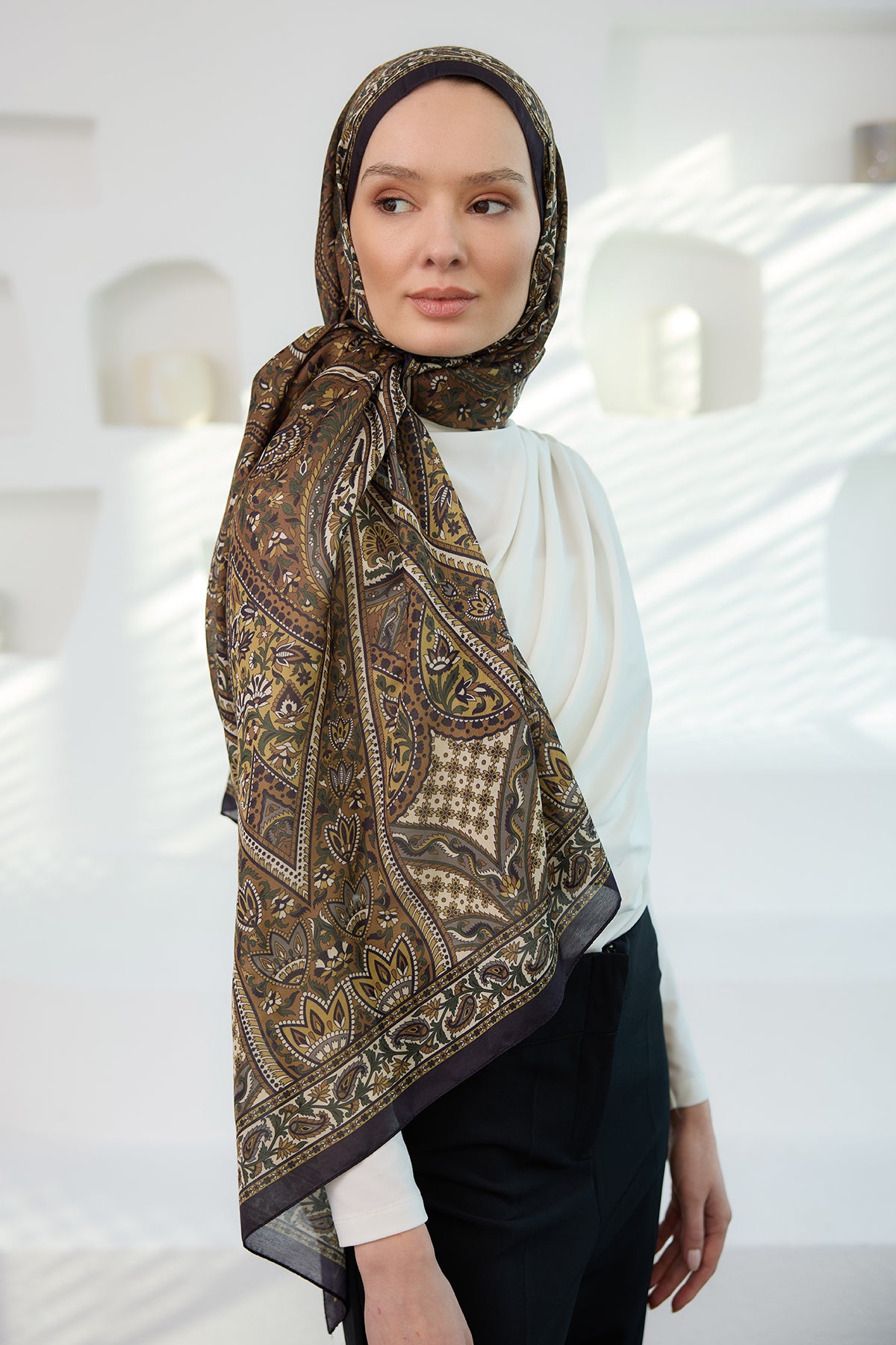 Ethnic Pattern Soft Shawl Tobacco