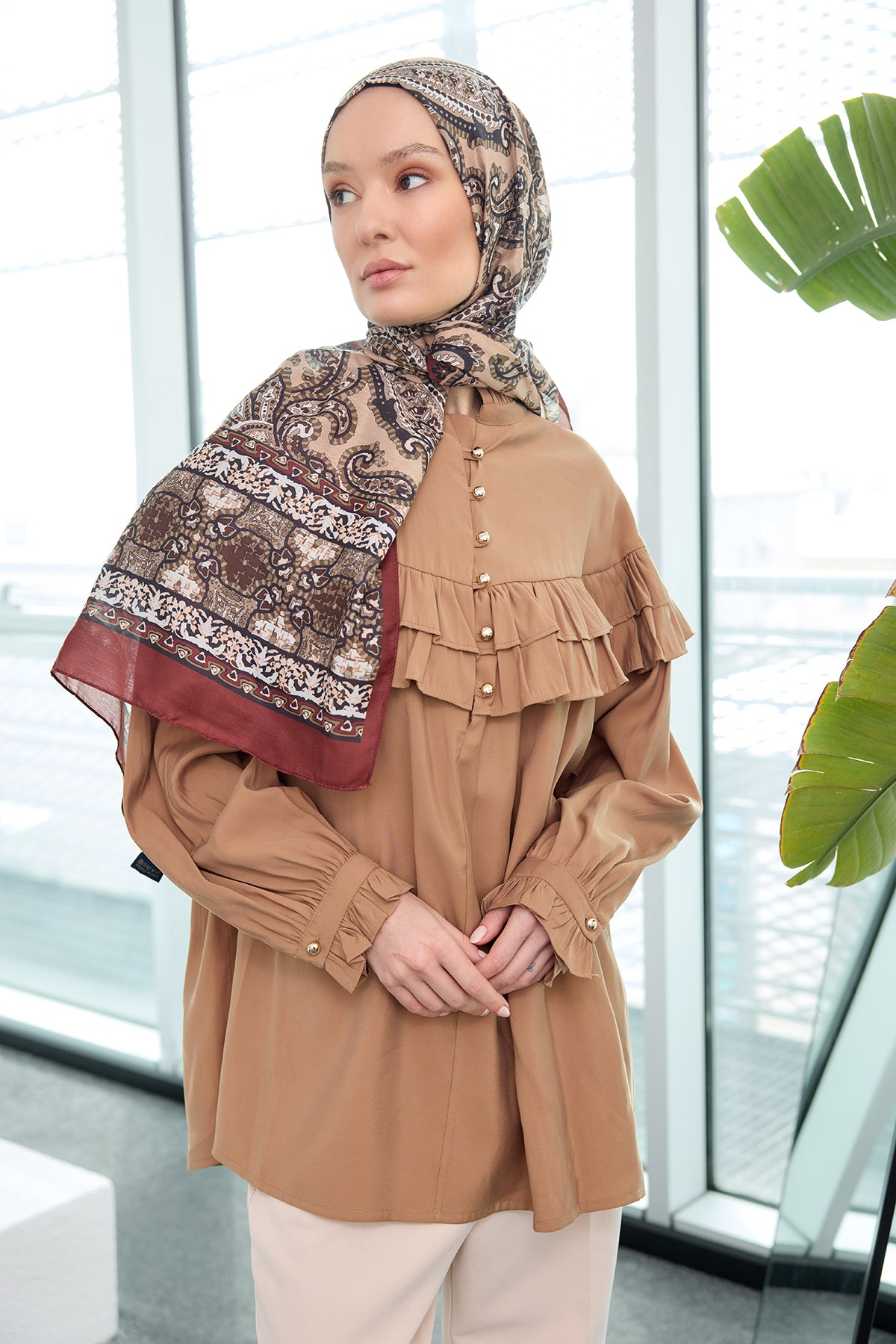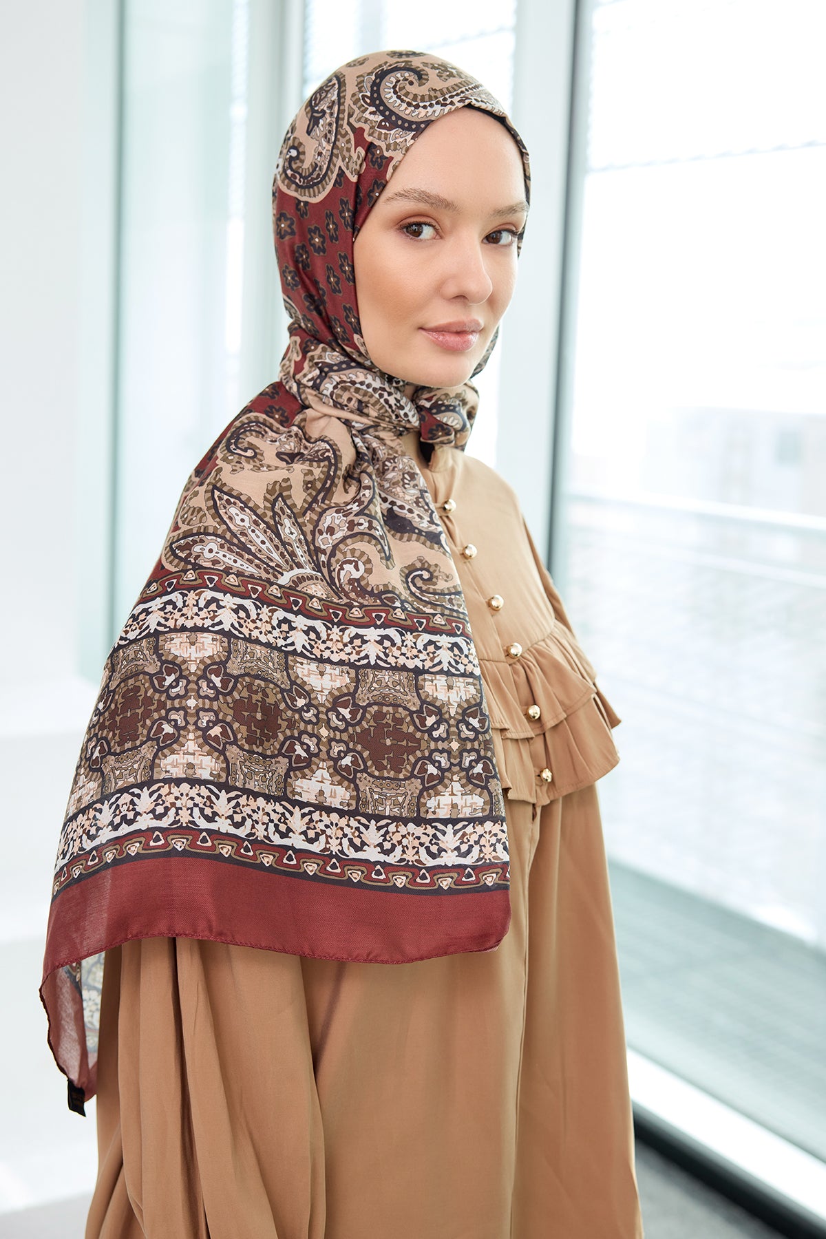 Ethnic Pattern Soft Shawl - Tobacco