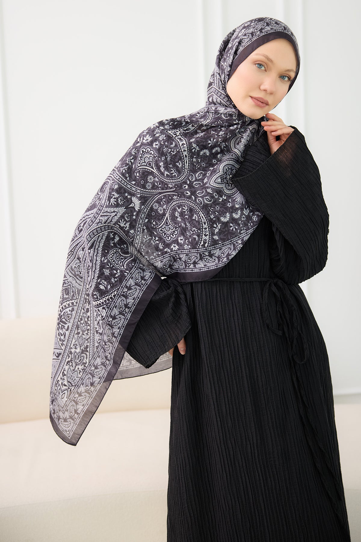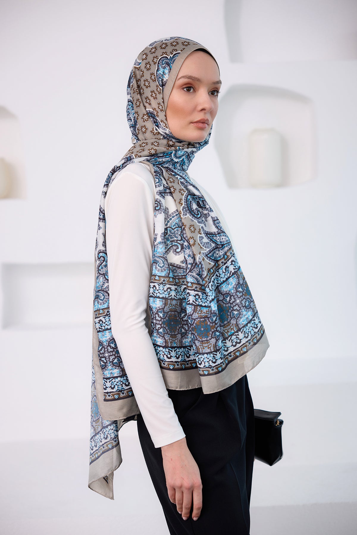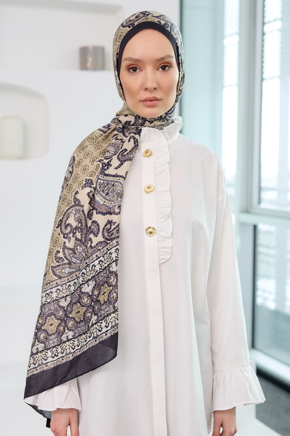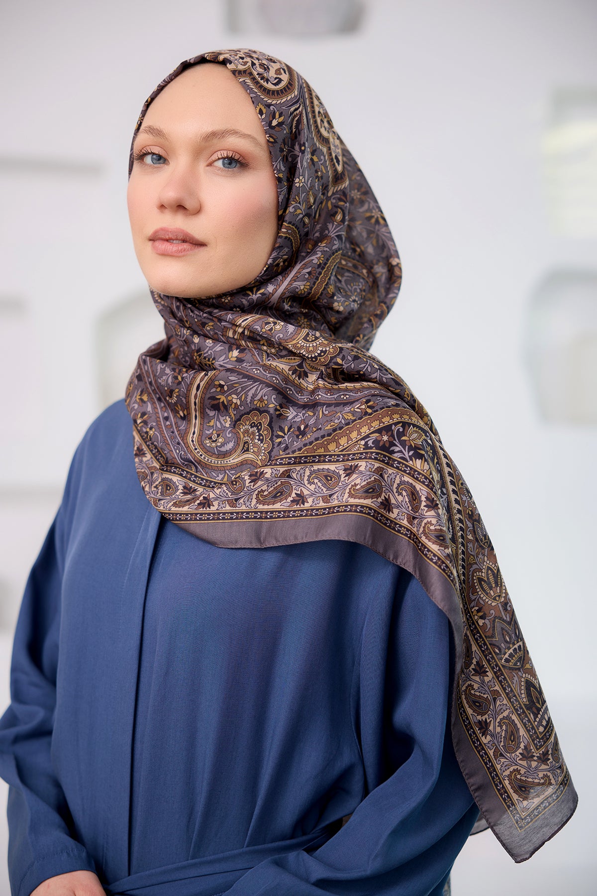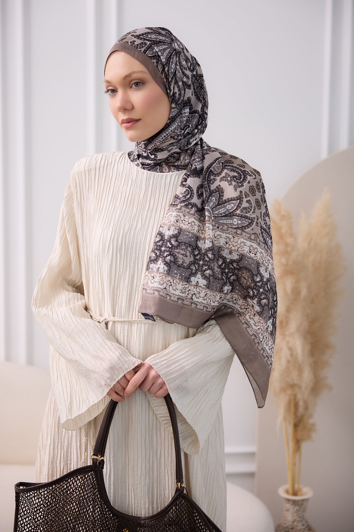 Ethnic Pattern Soft Shawl - Mink